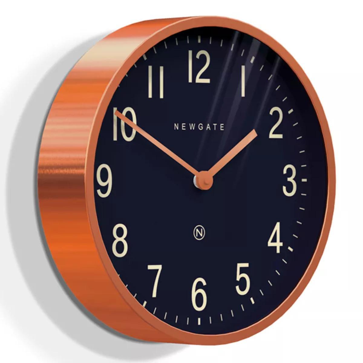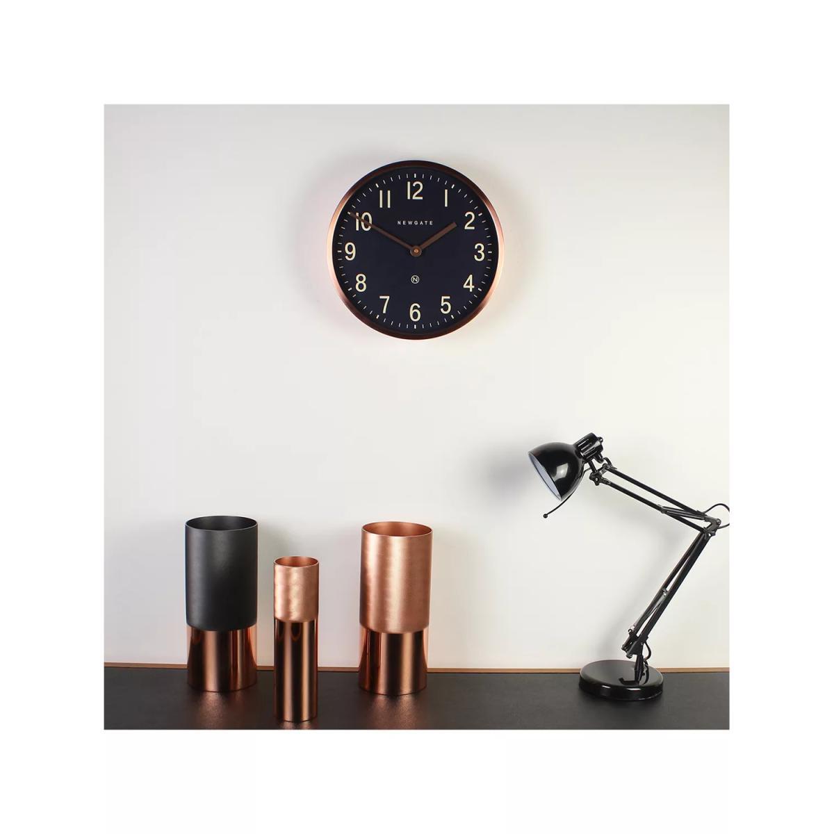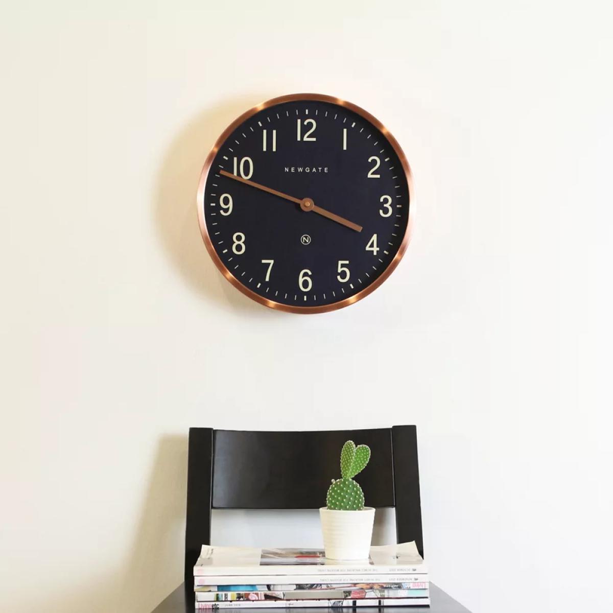 I love this wall clock for its clean, contemporary look and versatile size, making it easy to incorporate into a variety of interiors. Its navy face with contrasting numerals and the subtle rose gold frame add a touch of sophistication without feeling fussy. It's particularly effective in modern, minimalist, or Scandinavian-style spaces where functional design meets subtle elegance. Practical styling tips include pairing it with pared-back furniture or placing it in a kitchen or home office where its clarity and easy readability can be appreciated. To keep the look cohesive, consider matching other accessories or hardware with the rose gold tone for a unified interior scheme.