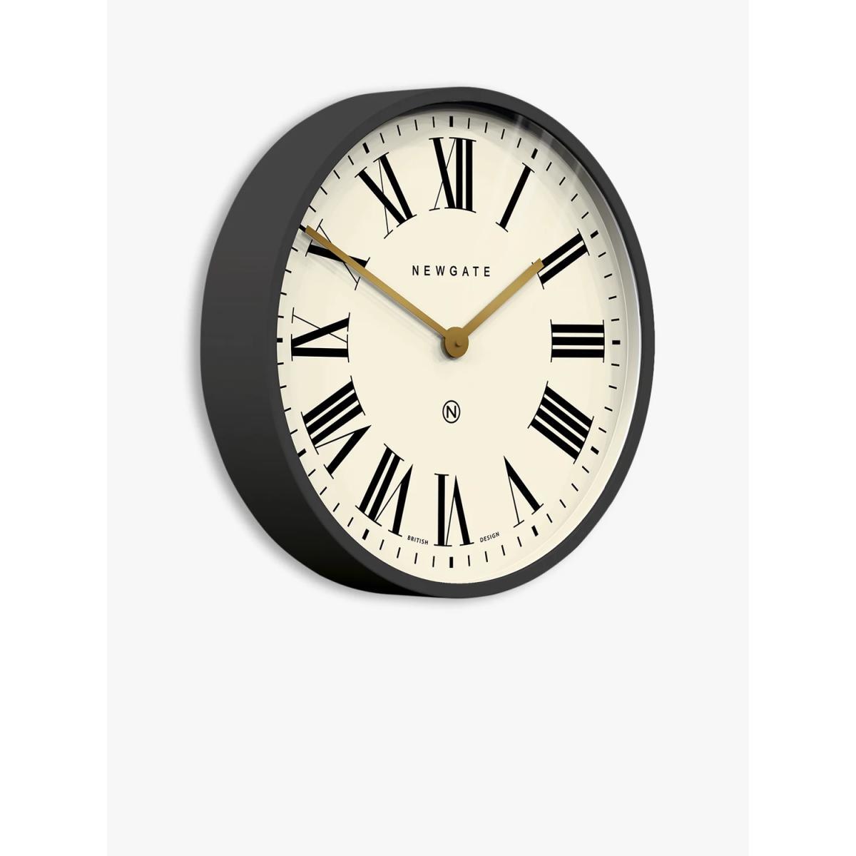 Newgate Clocks' Mr Butler wall clock will make sure you're always on time with its brass-finish hands keeping track. Classicly styled with bold Roman numerals, it has a deep straight-cut metal casing to stand out on your wall.