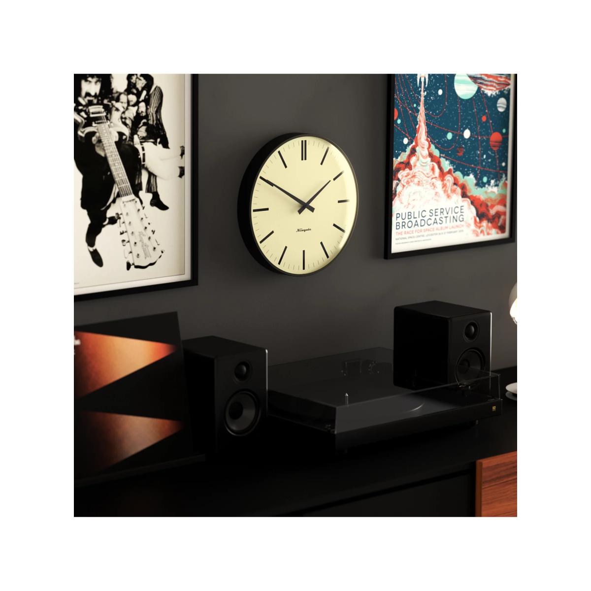 Newgate Clocks Radio City Quartz Silent Sweep Analogue Wall Clock, 33cm, Matt Black