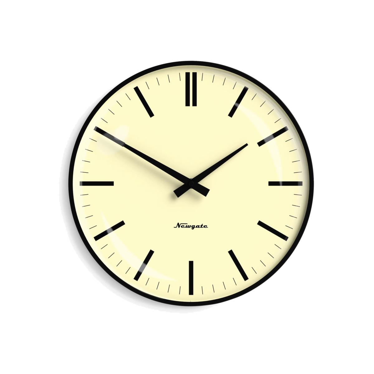 A retro-style wall clock from Newgate Clocks with a bold black marker Bowery dial. This medium wall clock has a domed glass lens and black metal hands, adding an eye-catching addition to any room. The clock has quartz movement for energy-efficient precision time-keeping. The 'silent-sweep’ movement doesn't have a ticking noise, just a faint whirring can be heard when in a silent room such as a bedroom.
