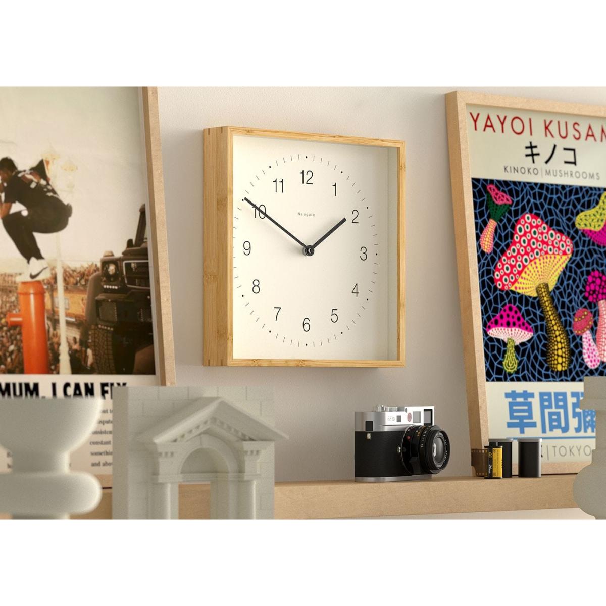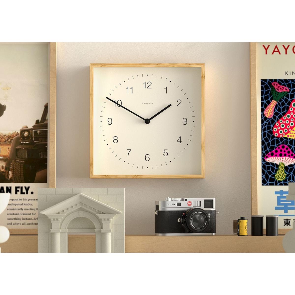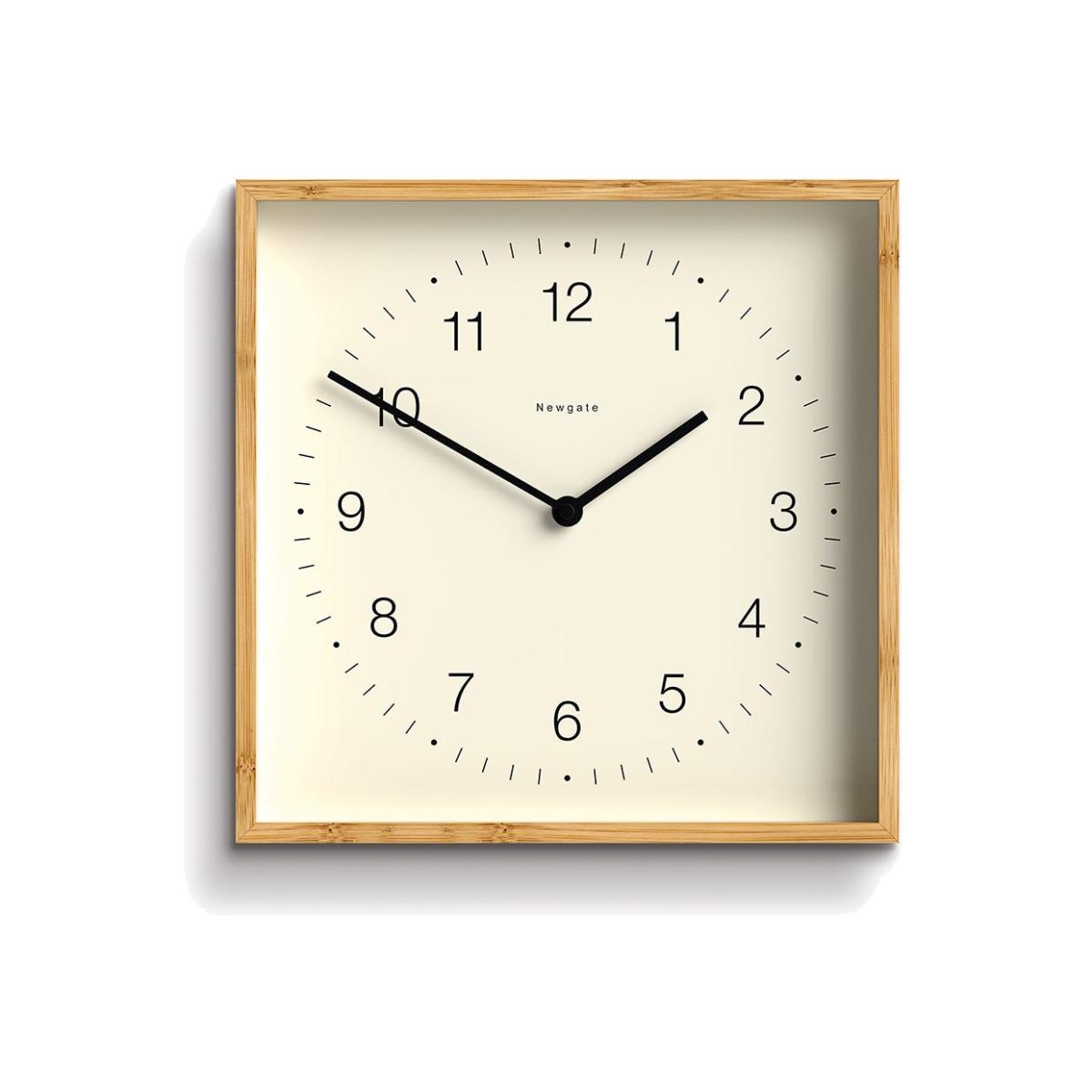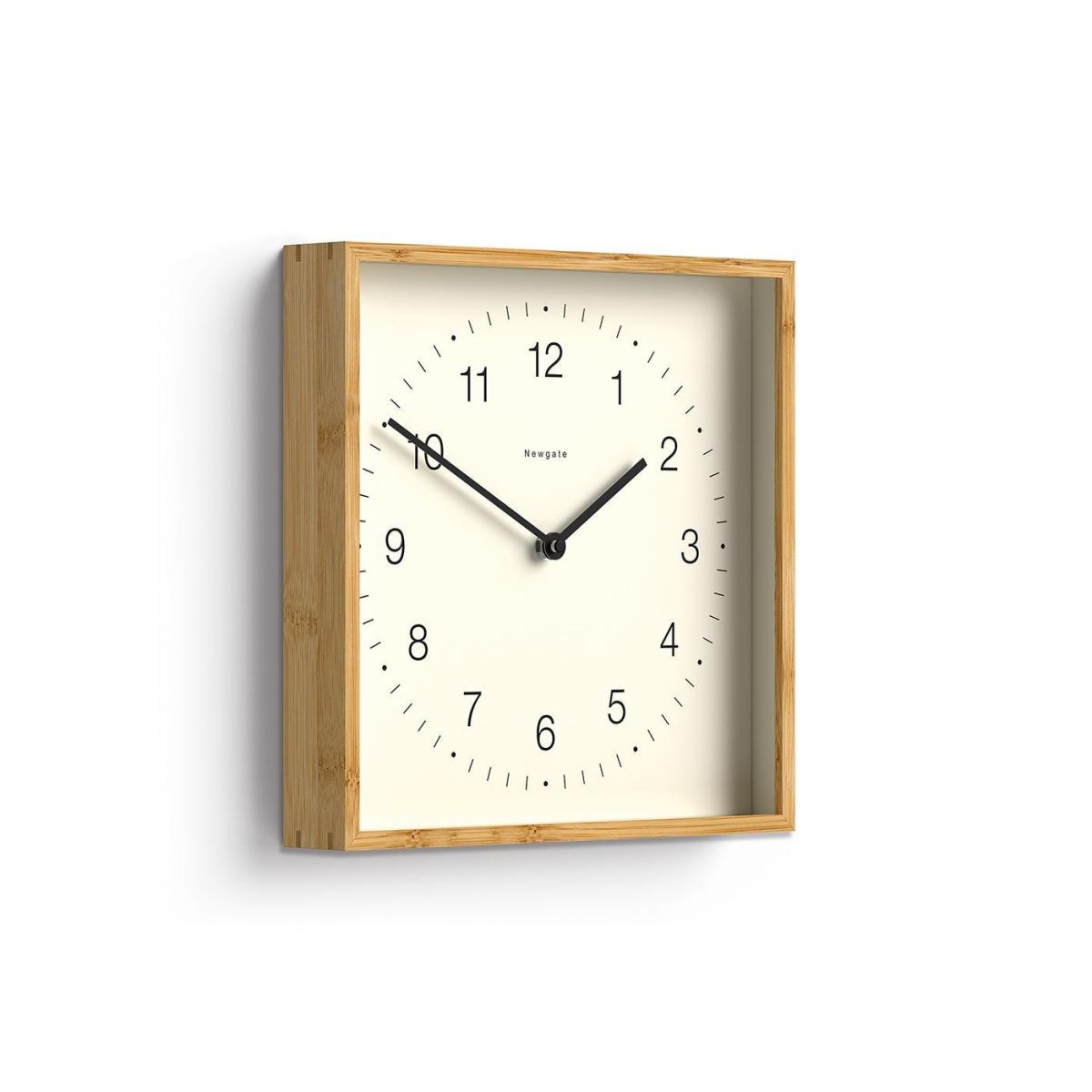 A modern square wall clock with a bamboo case and a minimalist Scandi-inspired design combining functionality with beauty. Raw bamboo is converted using the most fascinating process, into the solid blocks that we then turn into clock cases.