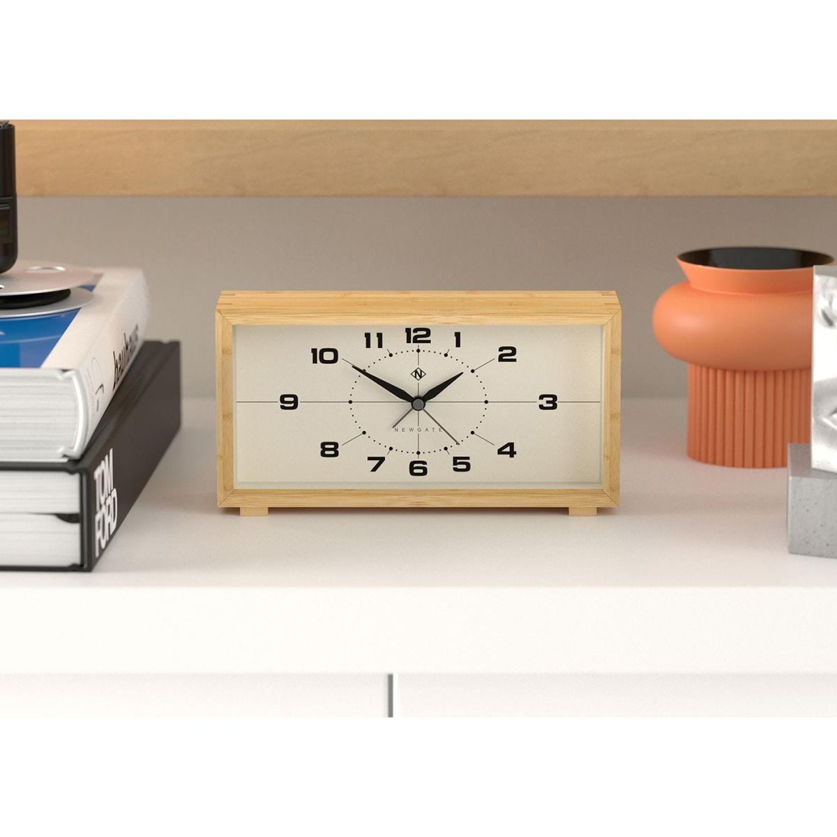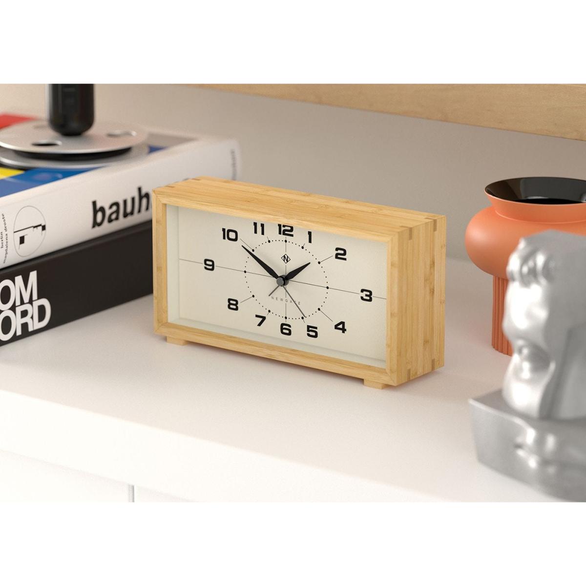 A mid-century modern alarm clock with an emphasis on the modern. This space-age design blends a contemporary cream face and bamboo case. Raw bamboo is converted using the most fascinating process, into the solid blocks that we then turn into clock cases.