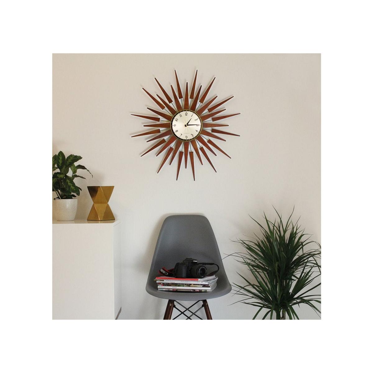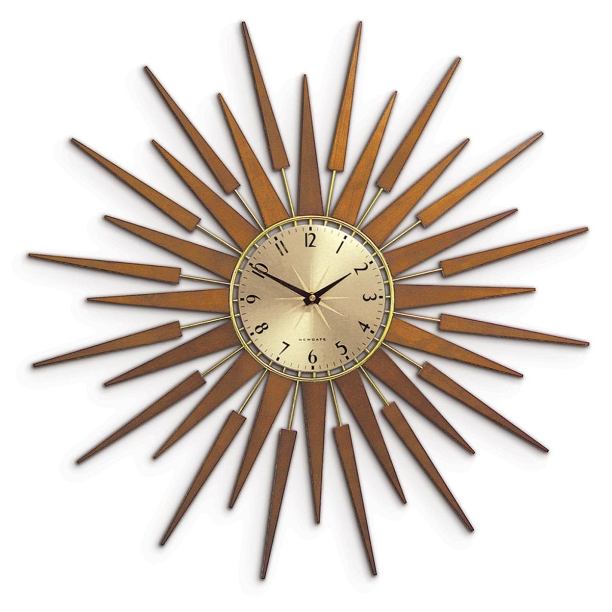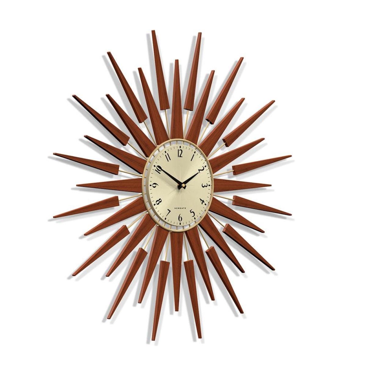 Pluto Starburst Clock Gold Capturing the energy of Mid-century modernism, the playful Pluto brings a burst of nostalgic style to your wall. One of Newgate’s best-selling timepieces, the geometric wooden construction of this clock echoes classic 1950s designs, lighting up the room with its bright golden tone.