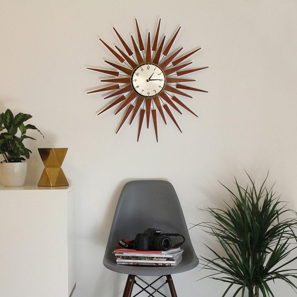 I love the Newgate Pluto starburst clock for its striking gold finish and bold, architectural design. It works particularly well in modern, mid-century, or eclectic interiors where it can serve as a statement piece. When styling, consider placing it against a neutral wall to let its shape and colour stand out, or pair it with other metallic accents for a cohesive look. Practical tips include hanging it at eye level for optimal visibility and balancing surrounding decor with simple lines and textures to keep the focus on the clock’s dynamic silhouette. It’s a versatile piece that adds a touch of glamour while remaining functional.