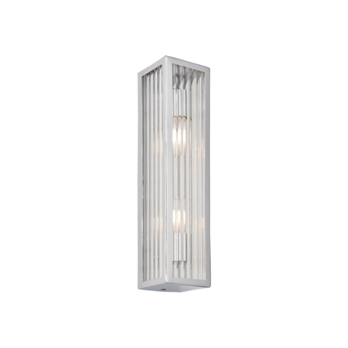 Bathroom wall light featuring ribbed glass and chrome finish The large Newham wall light is part of the modern Newham collection. Featuring a ribbed glass shade and chrome boxed design that houses the bulb. The perfect wall light to place beside mirrors and on walls around the bathroom for additional light.       Bathroom wall light featuring ribbed glass and chrome finish The large Newham wall light is part of the modern Newham collection. Featuring a ribbed glass shade and chrome boxed design that houses the bulb. The perfect wall light to place beside mirrors and on walls around the bathroom for additional light.