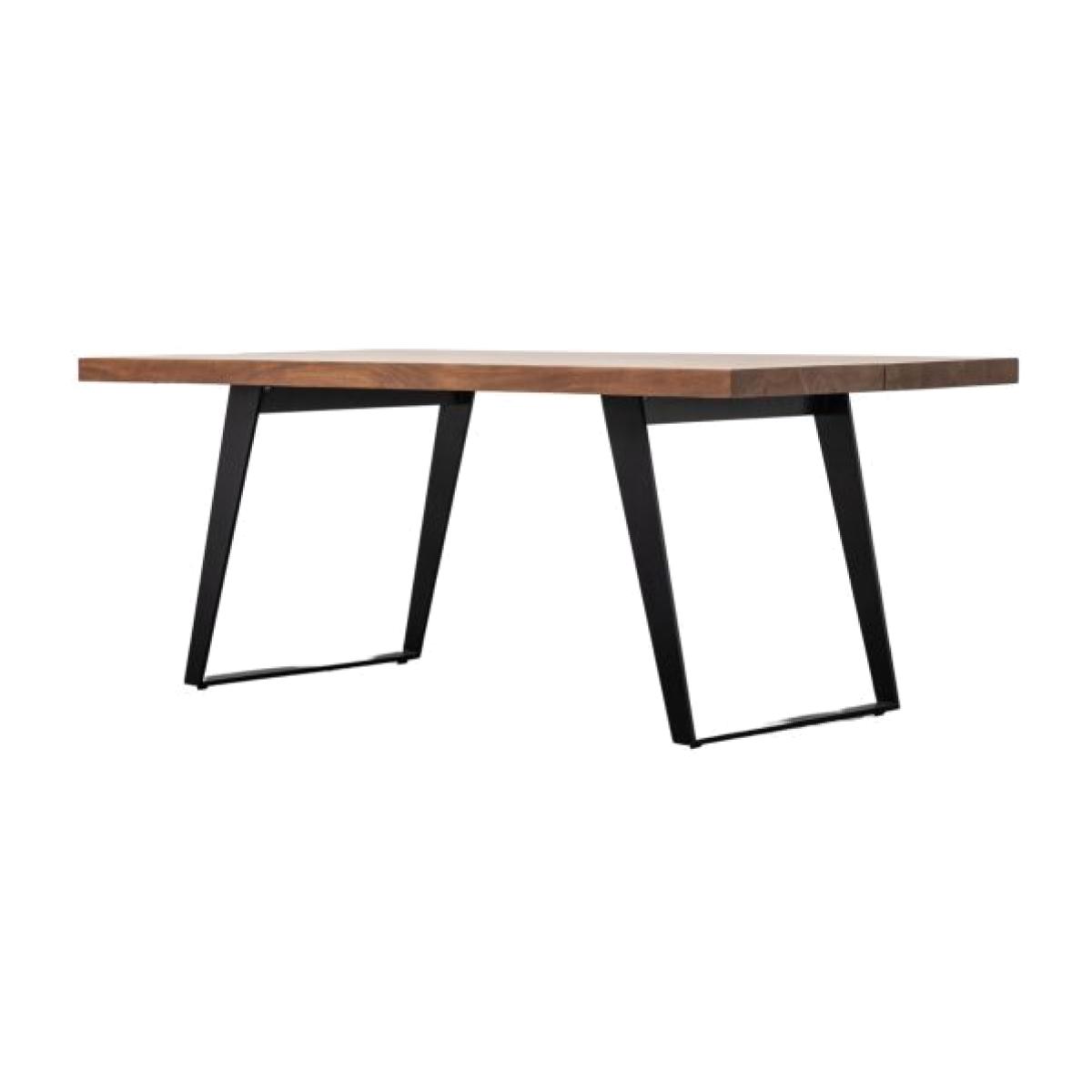 A sleek contemporary twist on a timeless look. Made with a solid wood top and paired with elegant and clean angular metal legs, this dining table is a beautiful addition to a wide range of living spaces. Paired perfectly with the Newington Dining Bench. Material: Acacia Wood 81% / Iron 19%. Colour/Finish: Natural.