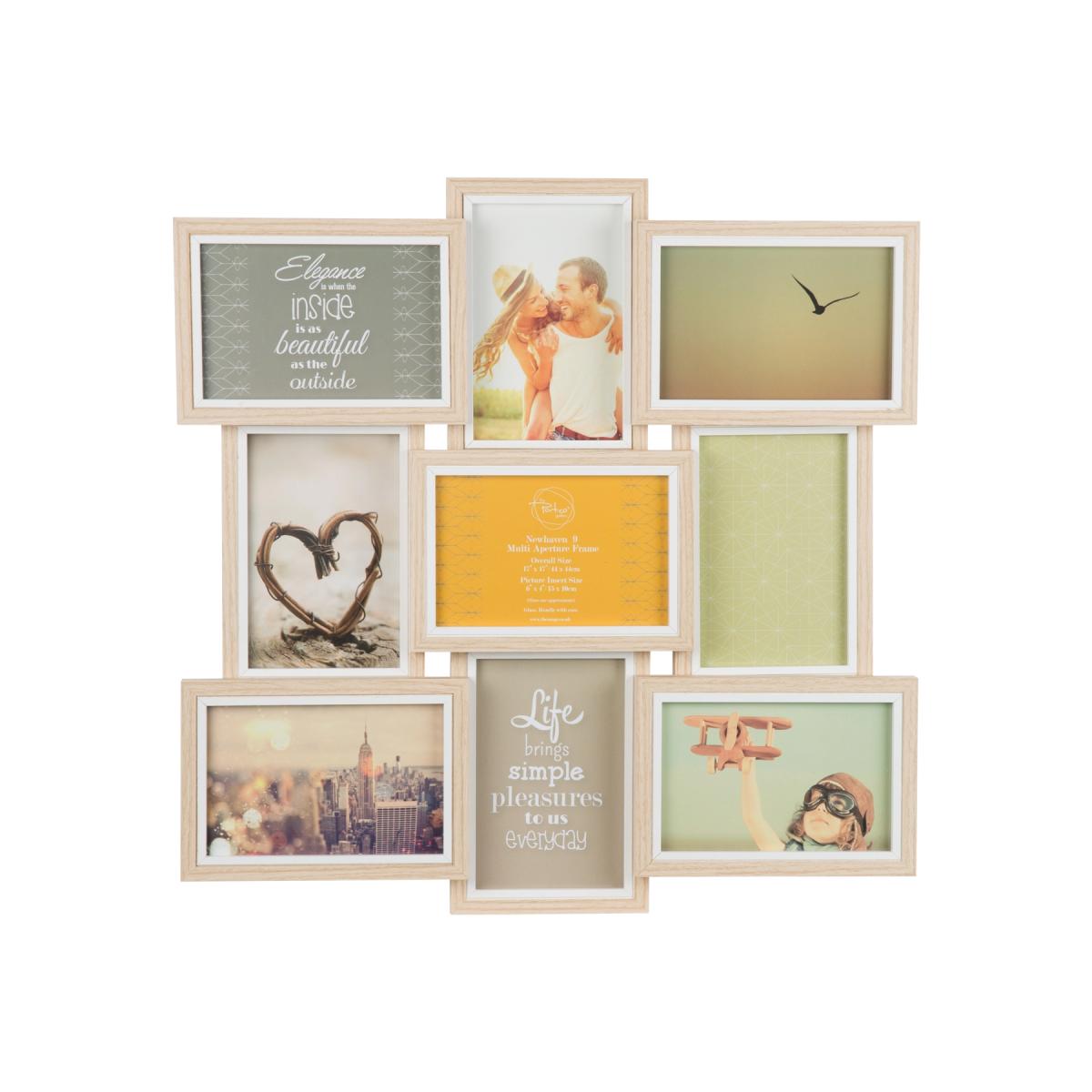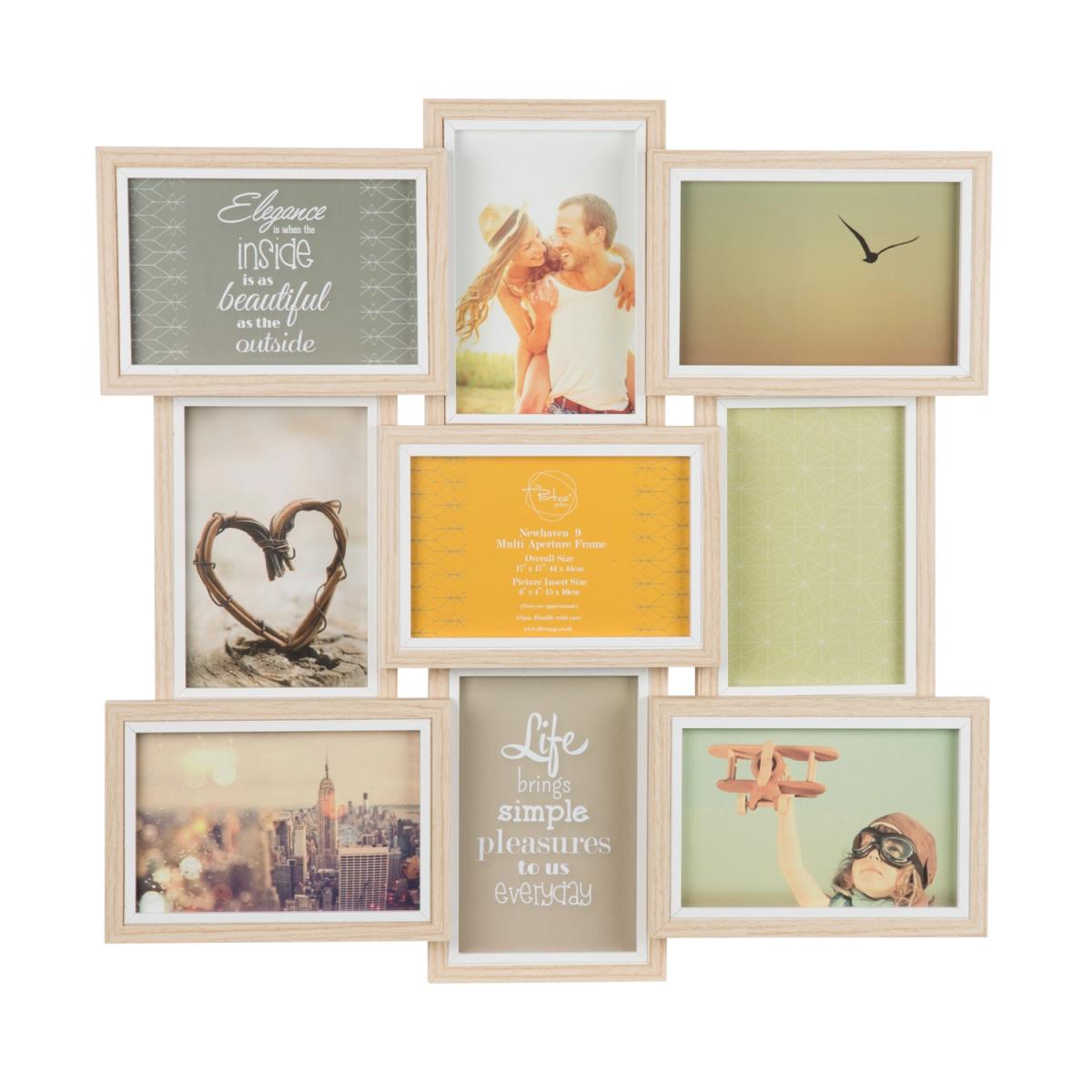 Create a beautiful display out of your favourite moments with this Newhaven Multi-Aperture Frame, featuring an overlapping design of natural wood frames. With space for nine 6x4" images within its overlapping collage layout, this photo frame will act as a daily reminder of the joy in your life.