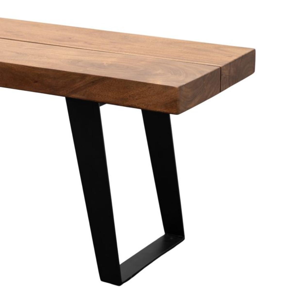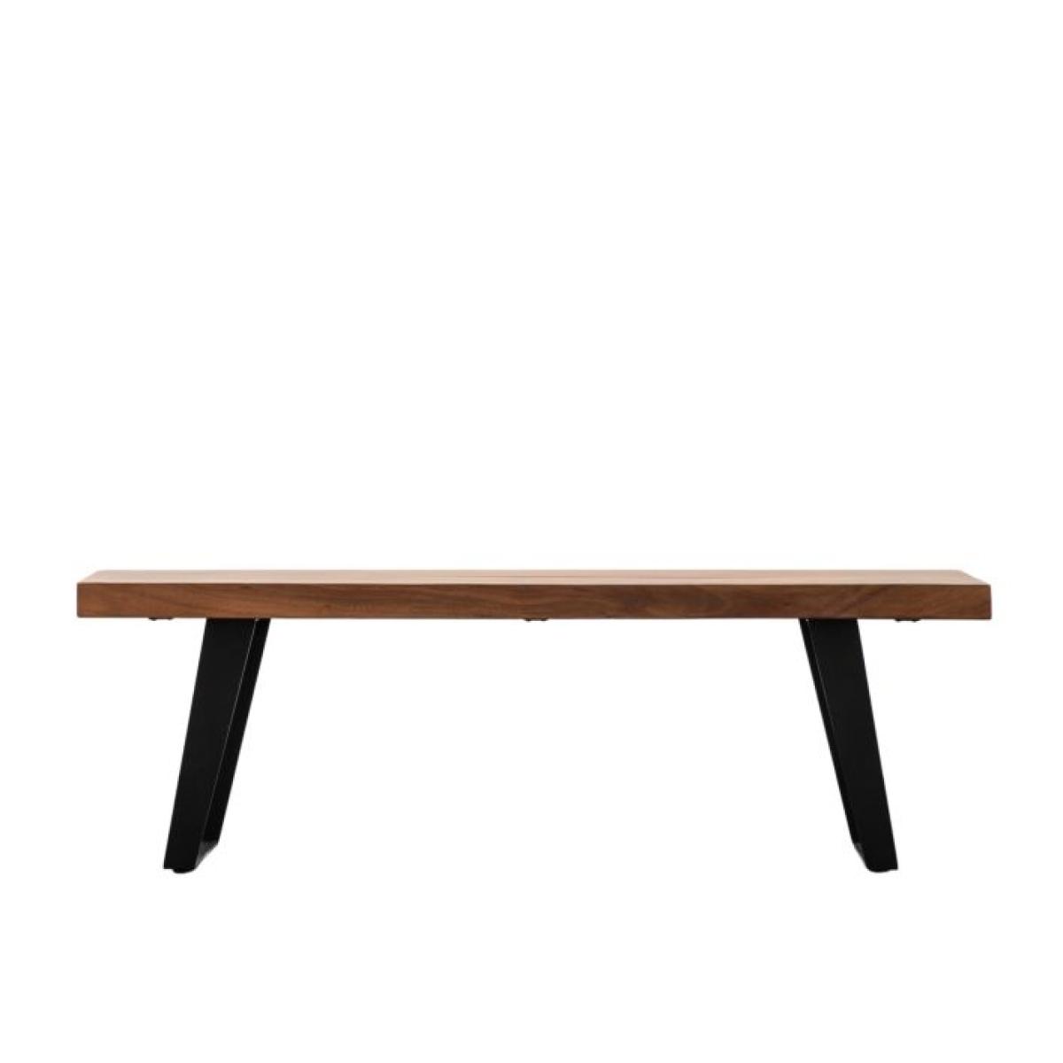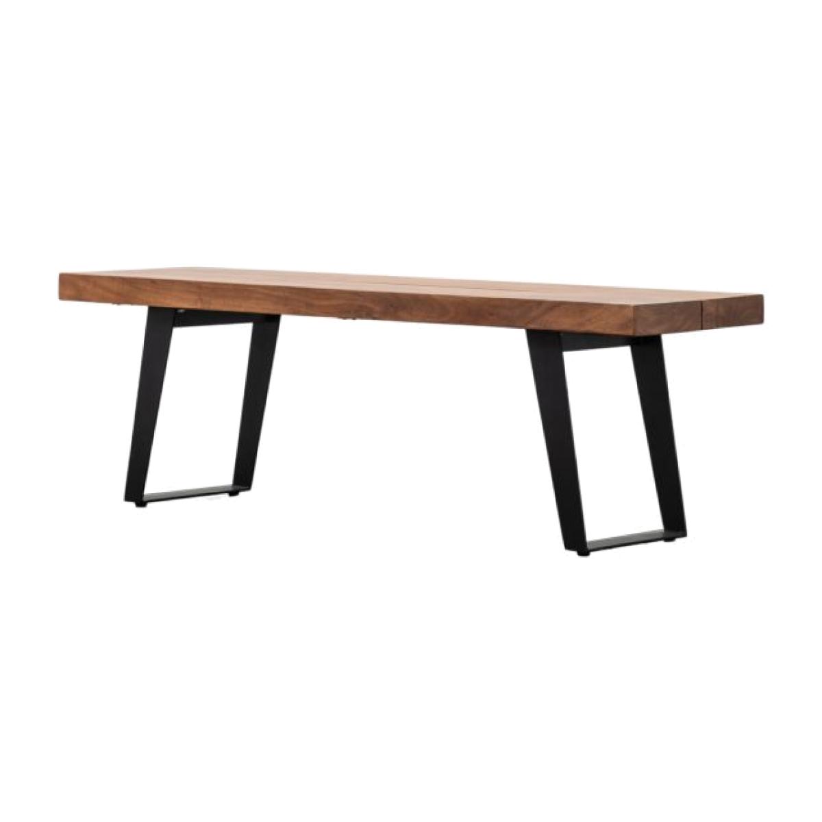 A sleek contemporary twist on a timeless look. Made with a solid wood top and paired with elegant and clean angular metal legs, this dining bench is a beautiful addition to a wide range of living spaces. Paired perfectly with the Newington Dining Table.