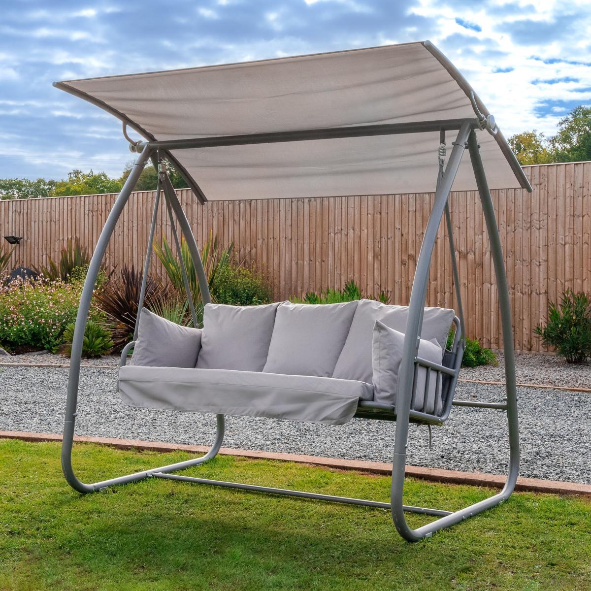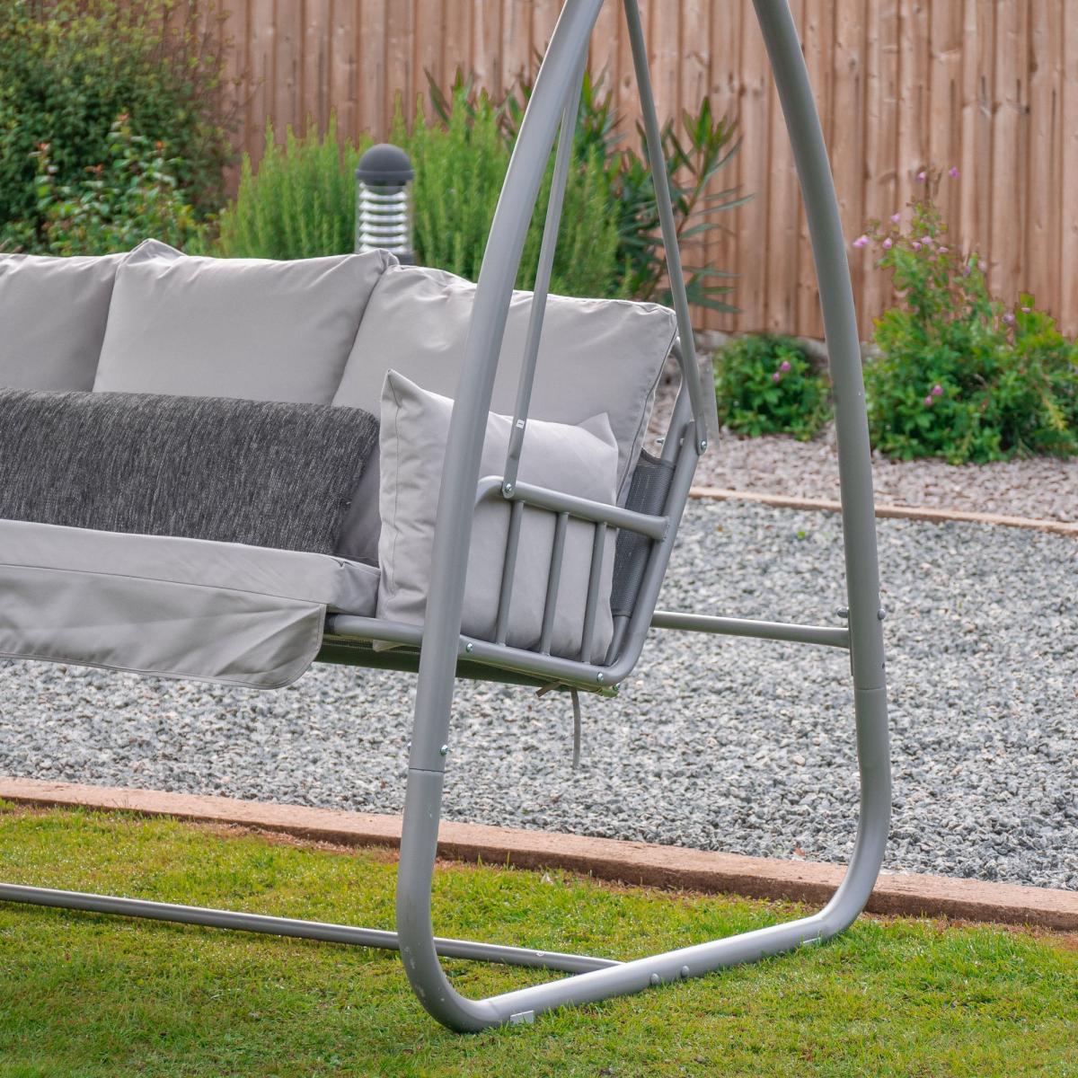 The Newmarket 3 Seater Swing is a practical yet stylish addition for outdoor spaces, especially if you favour a contemporary or minimalist look. I love its understated grey tone, which helps it blend seamlessly into neutral or subdued colour schemes, making it versatile across various garden styles. It's perfect for creating a cosy outdoor nook for relaxing or entertaining, and the generous three-seater size means you can comfortably share a moment with family or friends. To style around it, consider adding throw cushions in contrasting colours and textures for extra comfort and visual interest. Positioning it near flowering shrubs or greenery will enhance its inviting appeal and make it a focal point within your garden or patio area.