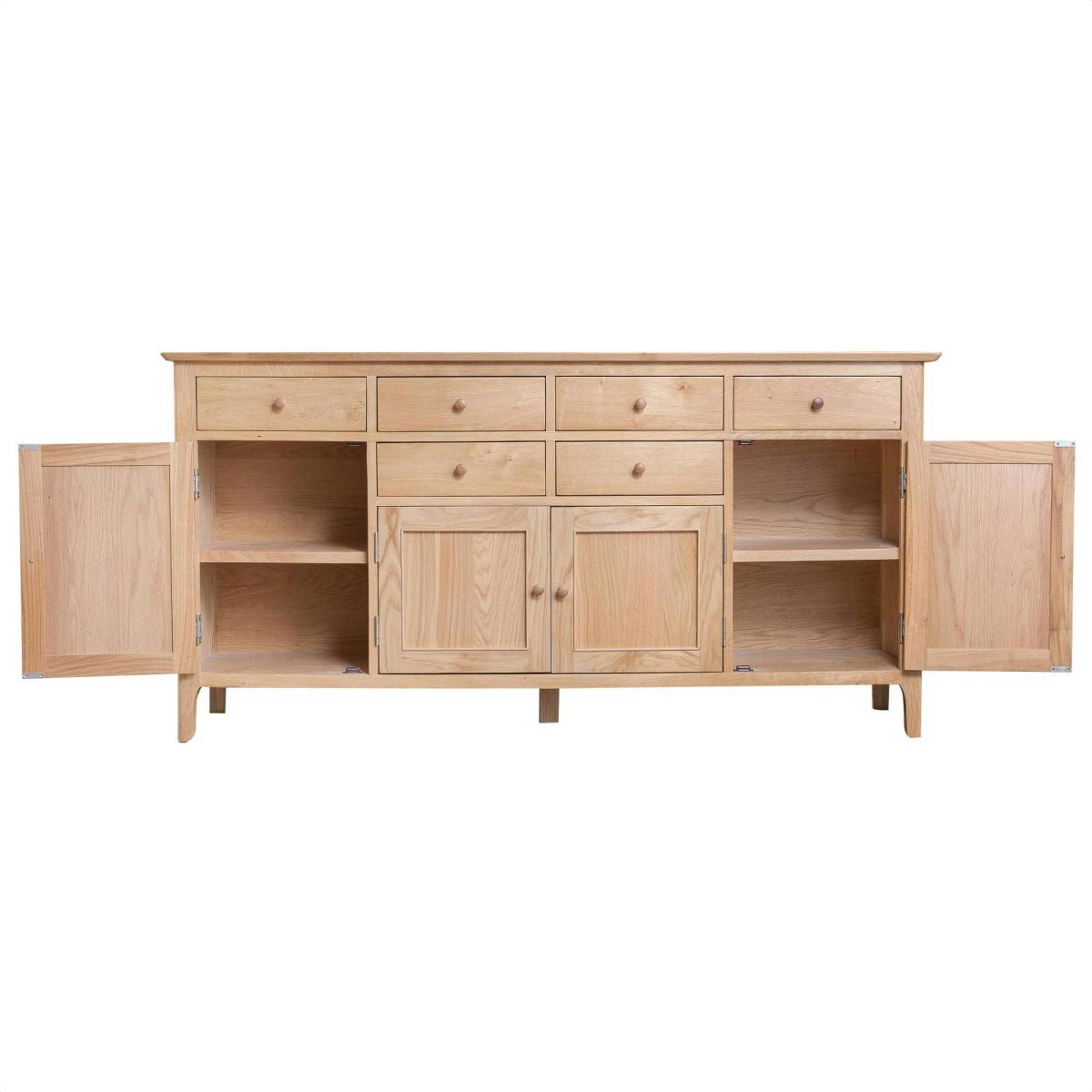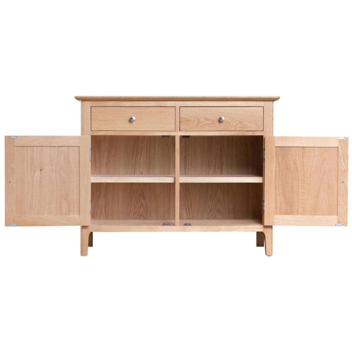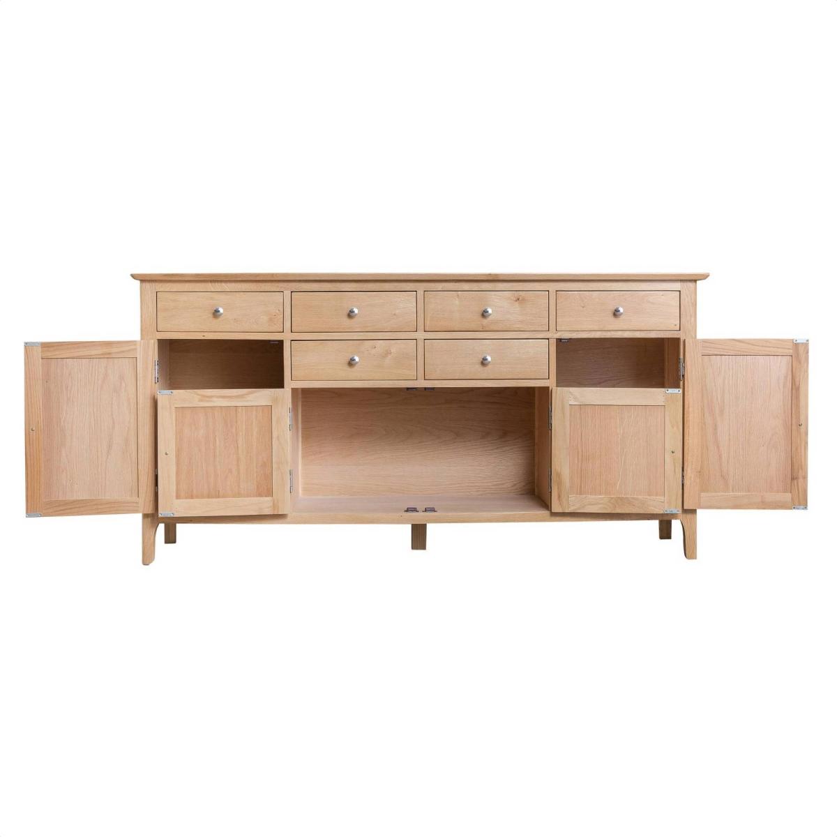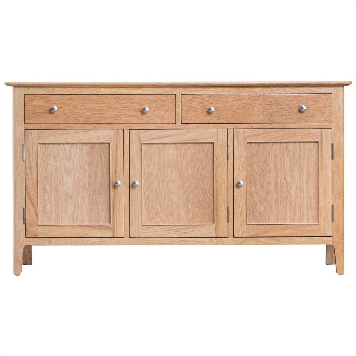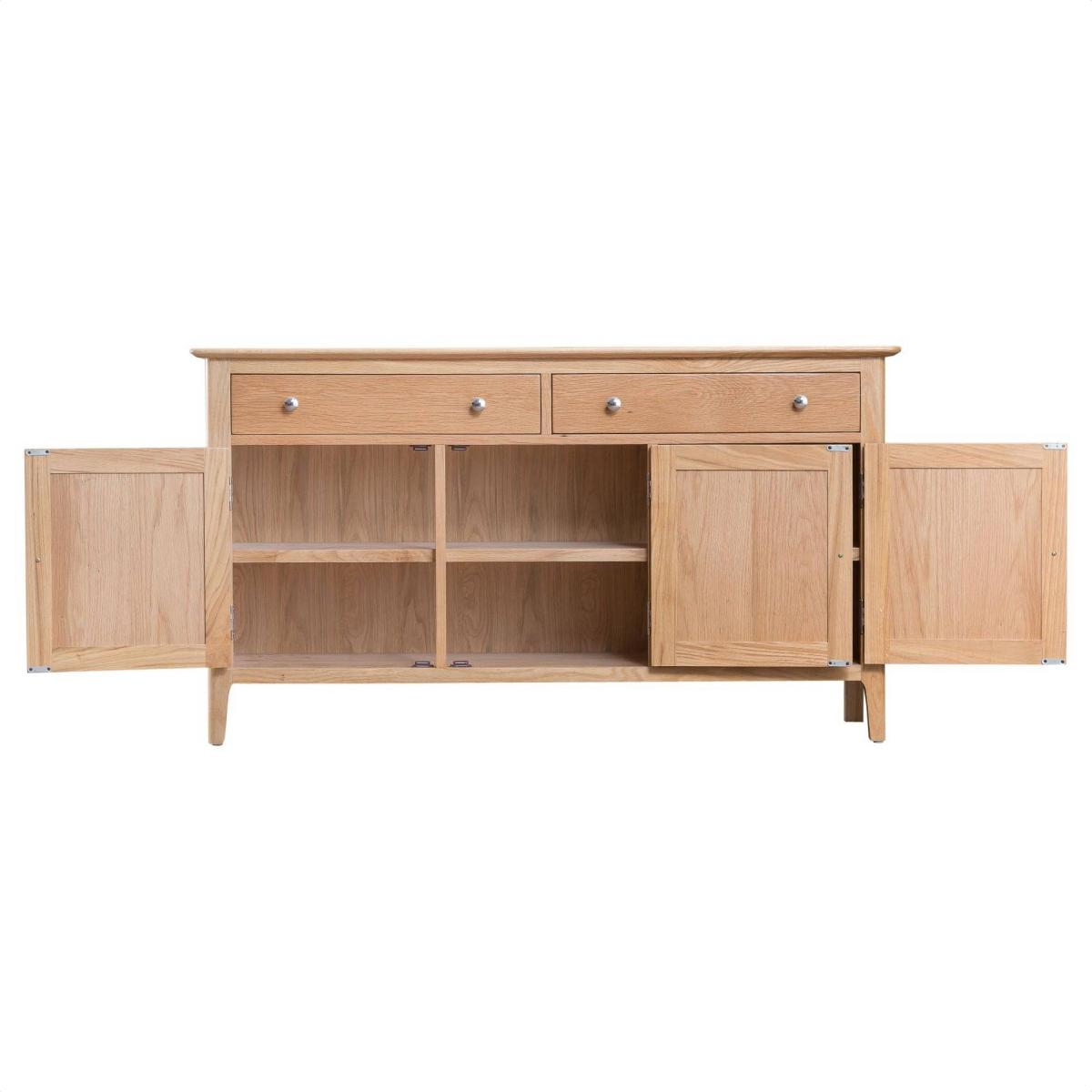 Created with an elegant Danish influence, the Newport collection has a light and fresh natural finish. All items that feature handles are supplied with wood and metal options, perfect for suiting most home dcors. With a wide range of fantastic pieces to choose from, you will be adding style to your dining and occasional collection. The Newport sideboards all feature cupboard and draw space, plenty of room for storing your belongings and keeping your living area tidy. The spacious tops are ideal for holding a lamp, telephone, vase or displaying photos. Natural Finish Oak & Oak Veneers Supplied with Wooden & Metal handles Internal shelves are removable but not height adjustable Assembled Standard Sideboard - 100cm (W) x 42cm (D) x 78cm (H) 3 Door Sideboard - 140cm (W) x 42cm (D) x 78cm (H) 4 Door Sideboard - 170cm (W) x 42cm (D) x 85cm (H) All screens vary in colour reproduction and whilst every effort has been made to display the colour as accurately as possible it is for guidance only.
