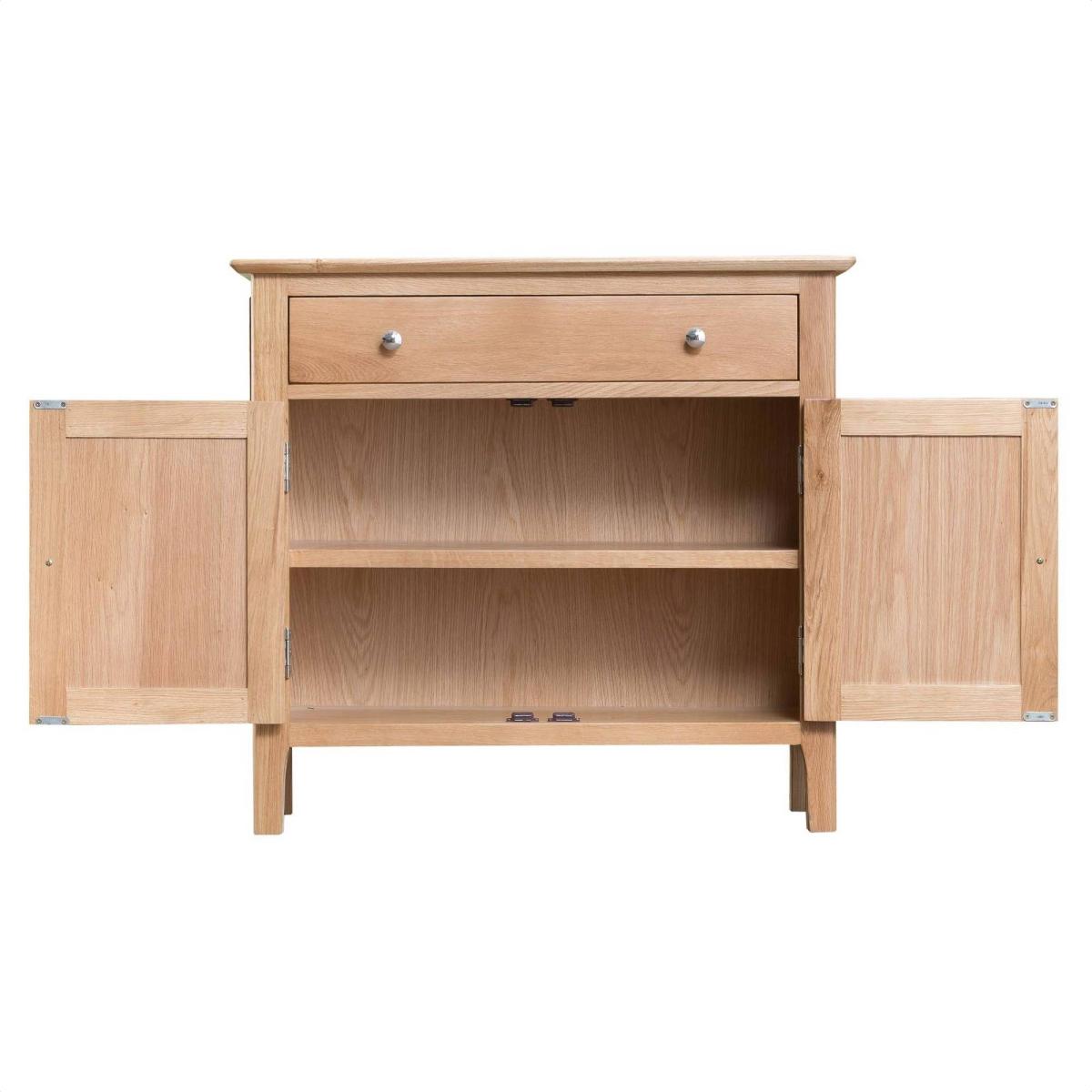 Created with an elegant Danish influence, the Newport collection has a light and fresh natural finish. All items that feature handles are supplied with wood and metal options, perfect for suiting most home décors. With a wide range of fantastic pieces to choose from, you will be adding style to your dining and occasional collection. The Newport small sideboard features a double cupboard with an internal shelf and a top draw, plenty of room for storing your belongings and keeping your living area tidy. Natural Finish Oak & Oak Veneers Supplied with Wooden & Metal handles Assembled Dimensions - 85cm (W) x 35cm (D) x 78cm (H) All screens vary in colour reproduction and whilst every effort has been made to display the colour as accurately as possible it is for guidance only.