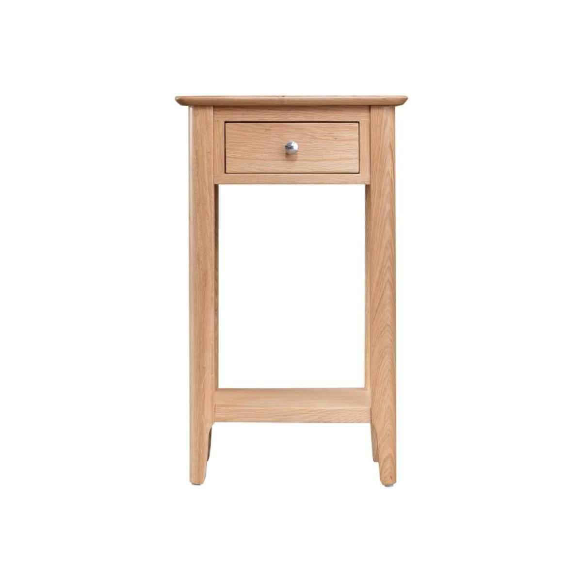 Created with an elegant Danish influence, the Newport collection has a light and fresh natural finish. All items that feature handles are supplied with wood and metal options, perfect for suiting most home décors. With a wide range of fantastic pieces to choose from, you will be adding style to your dining and occasional collection. The Newport telephone table features a convenient parcel shelf and draw, ideal for keeping your belongings tidy. The table top is the perfect size for a telephone, lamp, beverage or precious ornament. All screens vary in colour reproduction and whilst every effort has been made to display the colour as accurately as possible it is for guidance only.
