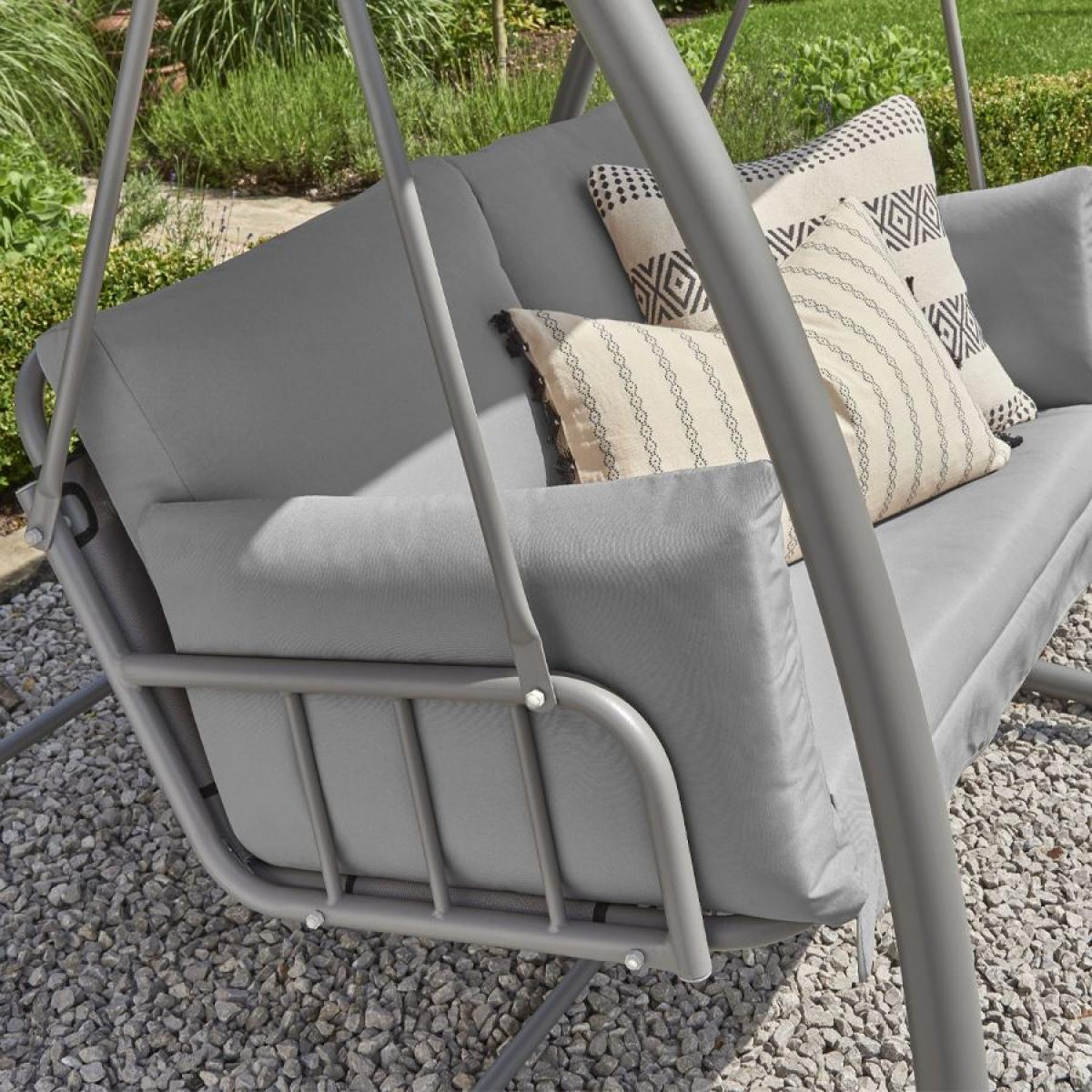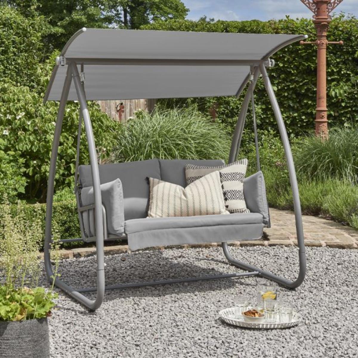 I love this grey swing seat for its sleek, understated design that complements a variety of outdoor spaces. Its neutral tone makes it versatile, perfect for contemporary, minimalist, or even rustic gardens. The structure is sturdy yet stylish, so it works well in both laid-back and more sophisticated settings. For styling tips, pair it with outdoor cushions and throws in natural fabrics or subtle colours to enhance comfort without overpowering the overall look. It’s great as a standalone feature or nestled amongst lush greenery and flowering plants, creating a cosy nook for relaxation or outdoor entertaining.
