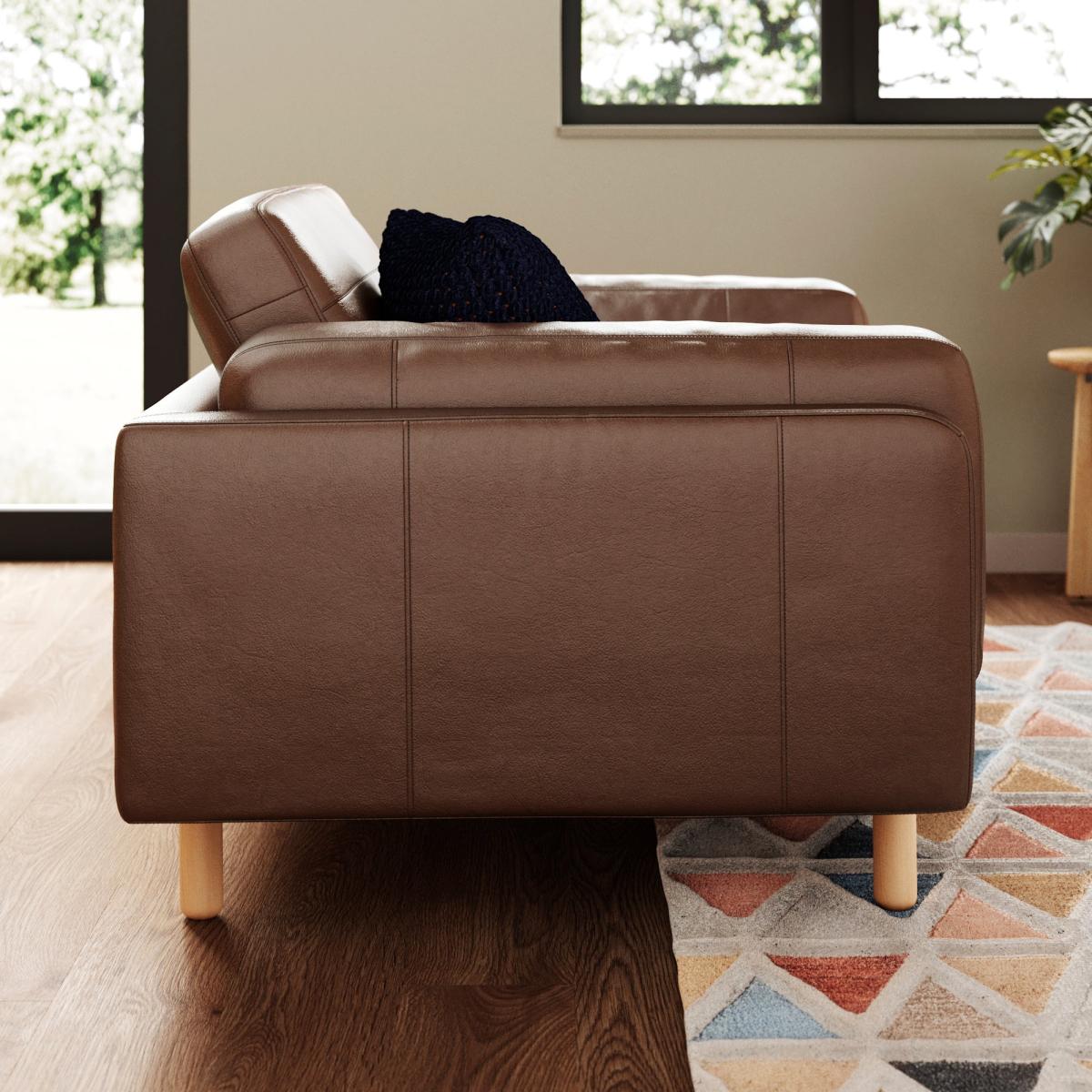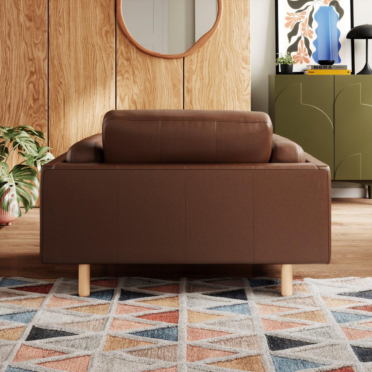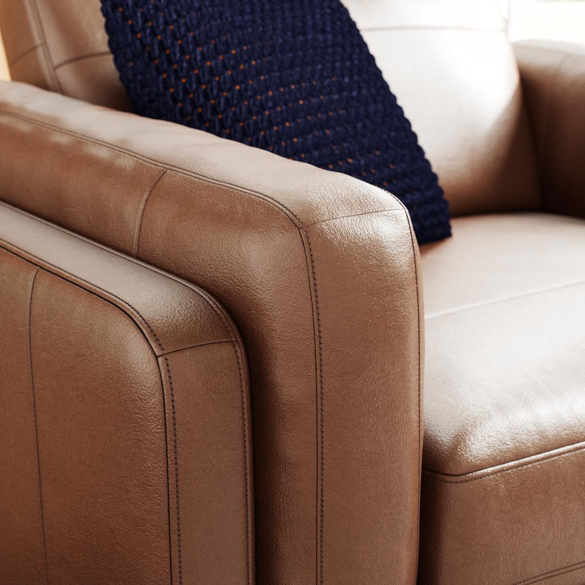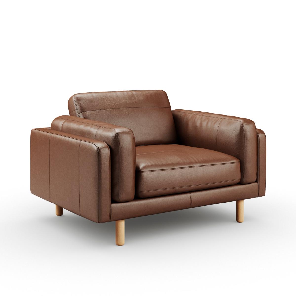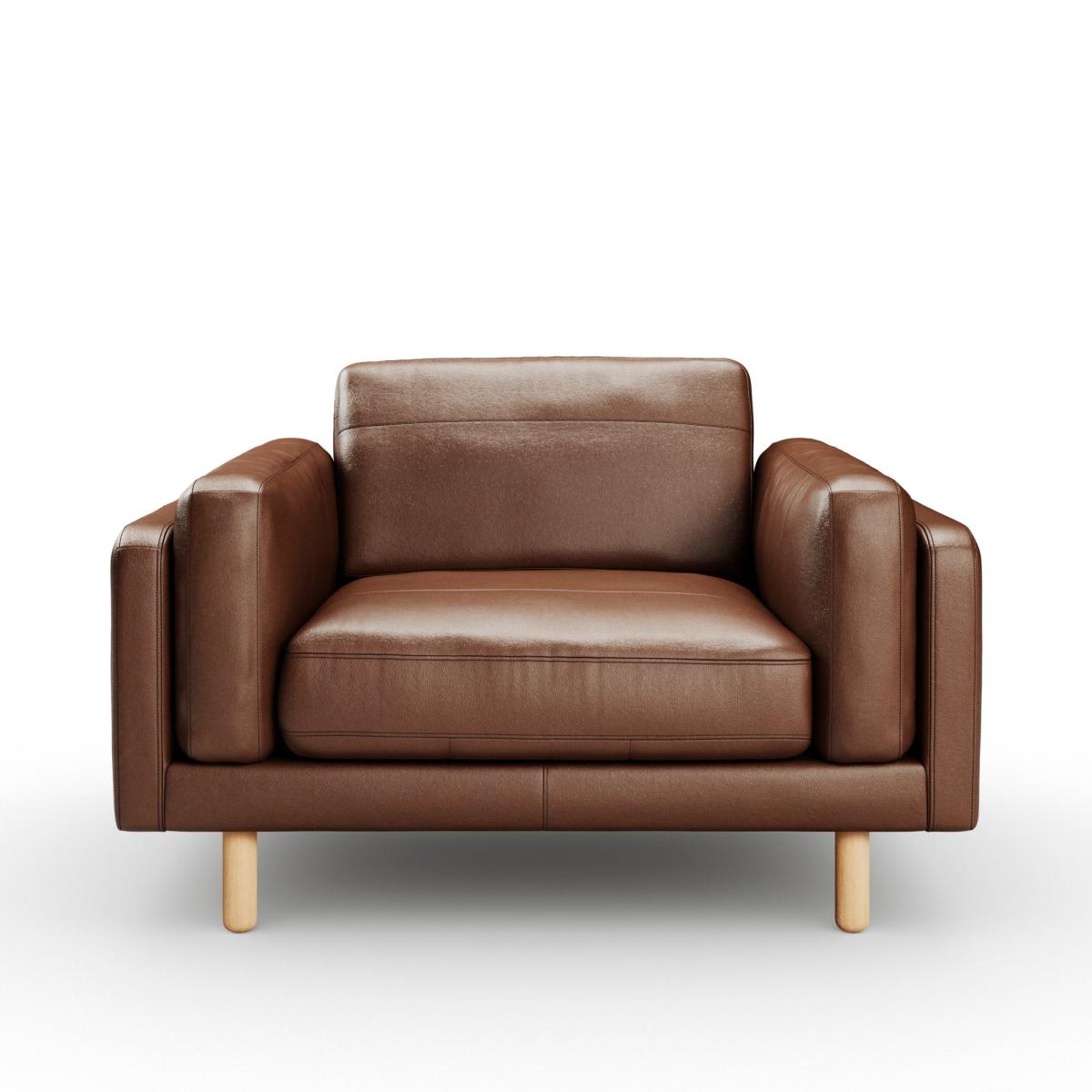 * Modern leather composition * Plush, cosy foam and fibre filling * Stylish design, with timeless appeal * Compact design * Made to Order, with corresponding options available This chair is the epitome of comfort and elegance, offering a cosy retreat within your home. Its rich leather upholstery is designed to develop character over time, creating a unique and inviting piece. The deep cushioning and supportive frame provide the perfect spot to relax, whether you're reading, watching a film, or simply unwinding.