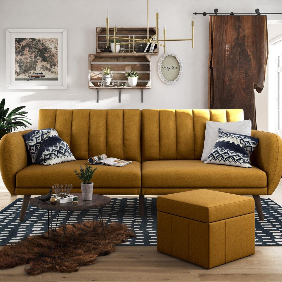 NG Brittany Sofa Bed - Mustard Linen / Particle Board Wood Metal Plastic Foam Linen