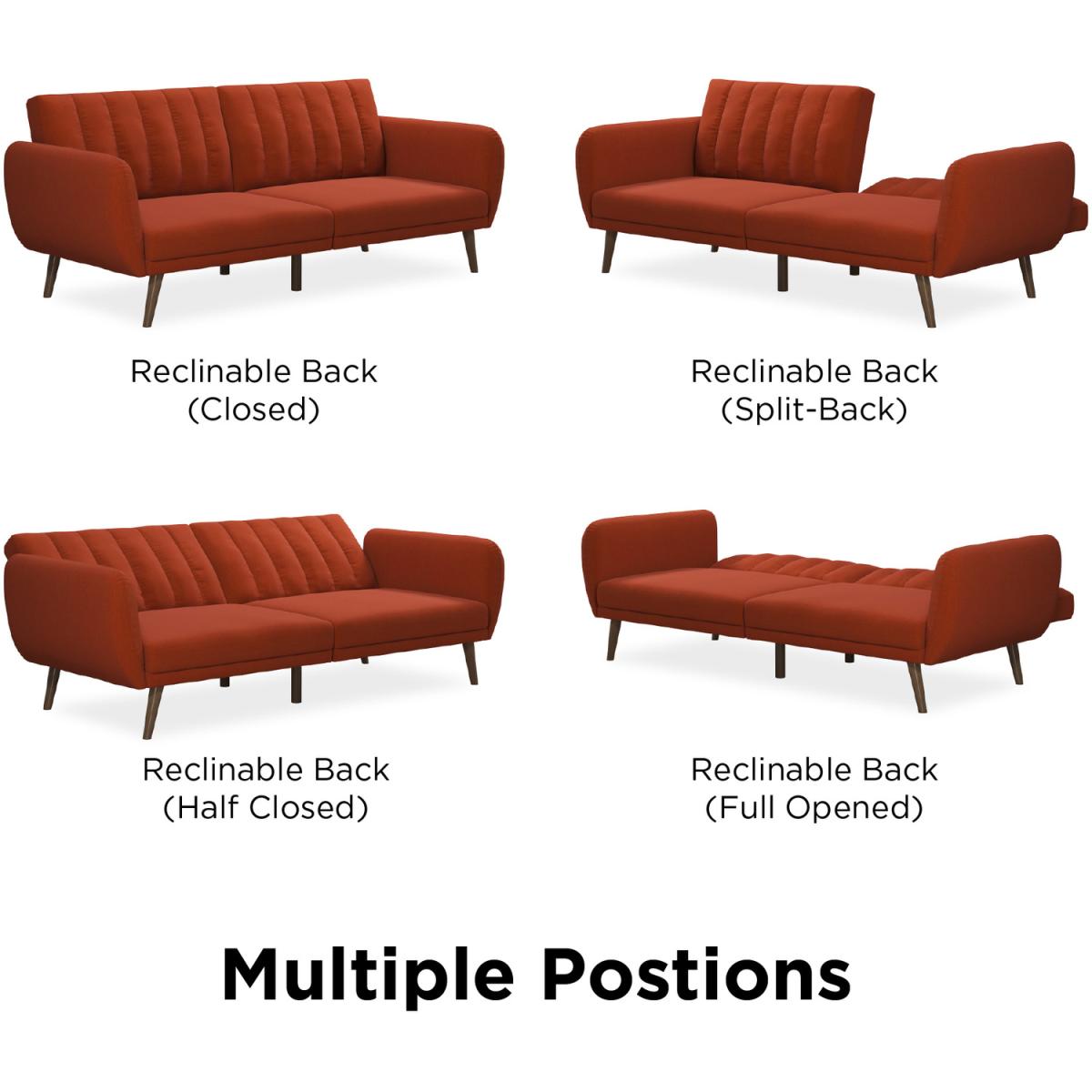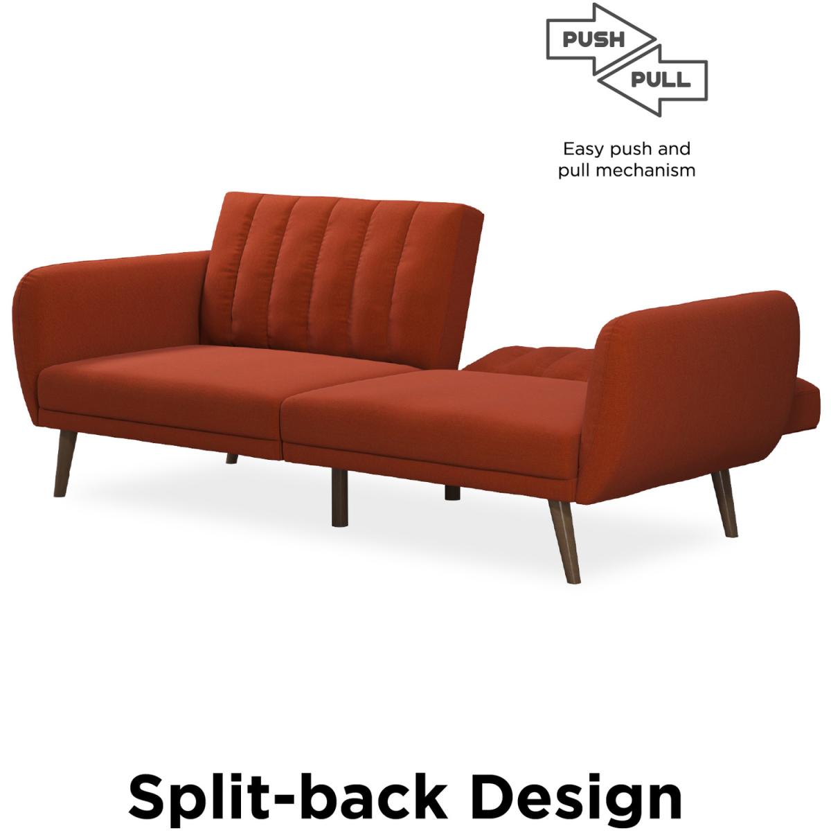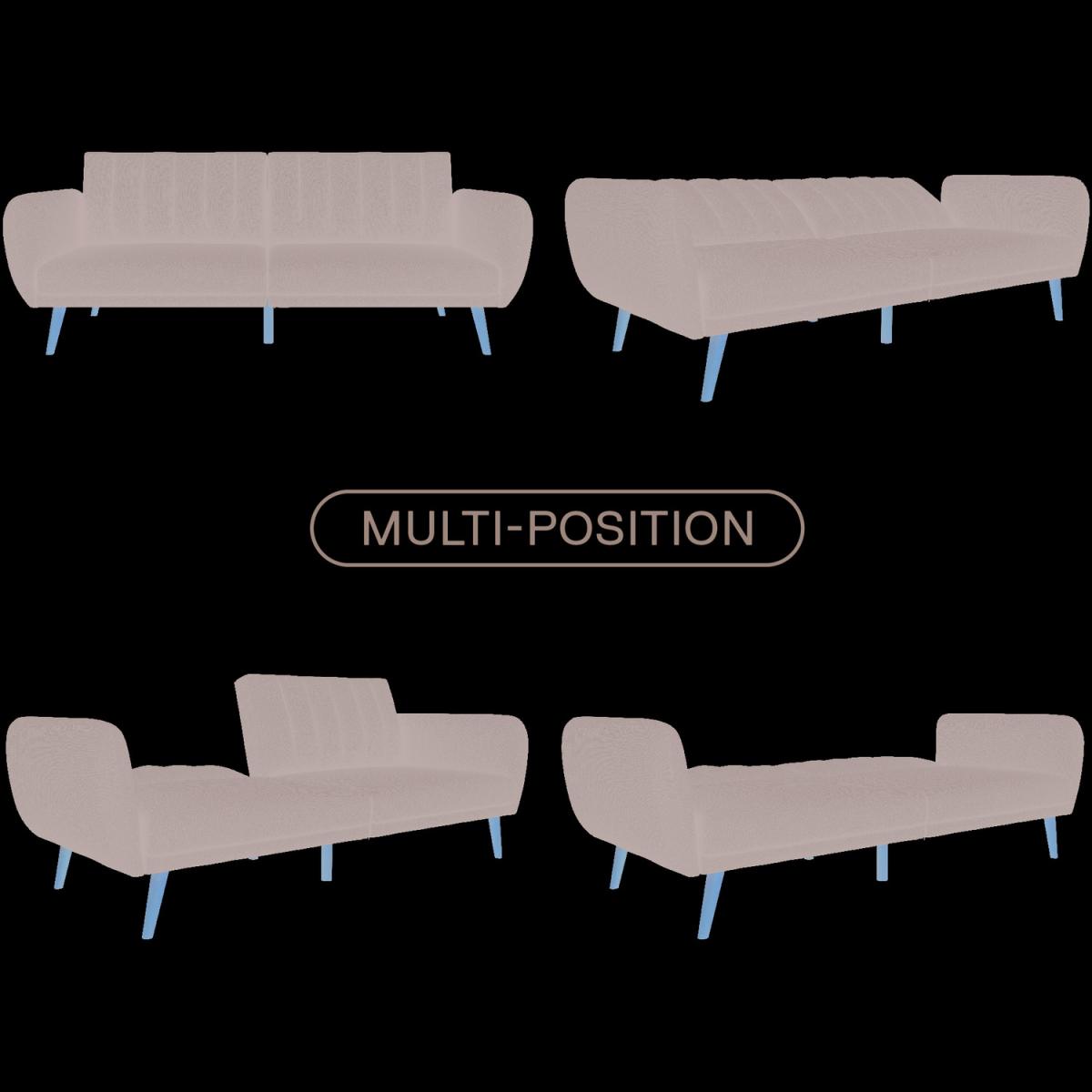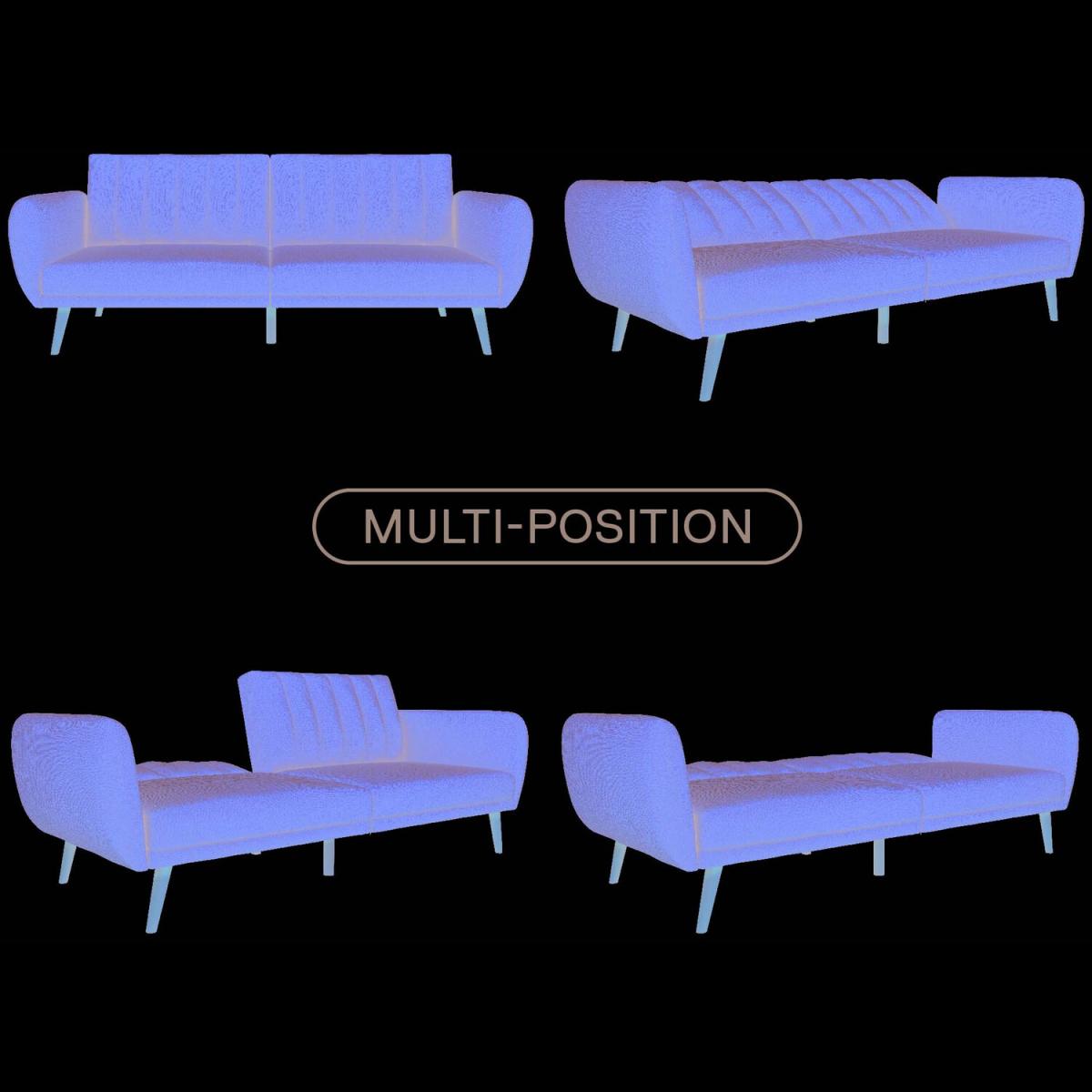 Be embraced by the comfortable cushioning of the Brittany linen futon. With its ribbed tufted cushioned back, the Brittany Linen futon gives your body all the support you need to sit and relax for hours. The combination of curved armrests and slanted legs work together to provide a unique rounded look that stands out. The linen upholstery adds another element of elegance making this a perfect statement piece for any living space.