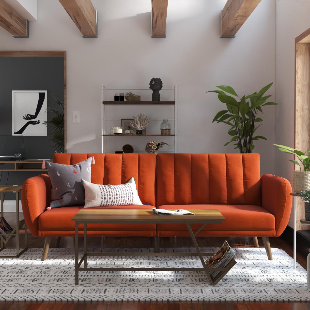 NG Brittany Sofa Bed - Orange Linen / Particle Board Wood Metal Plastic Foam Linen