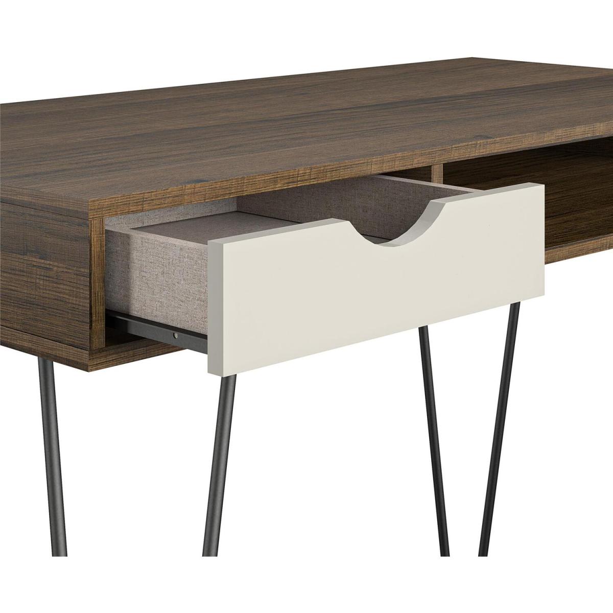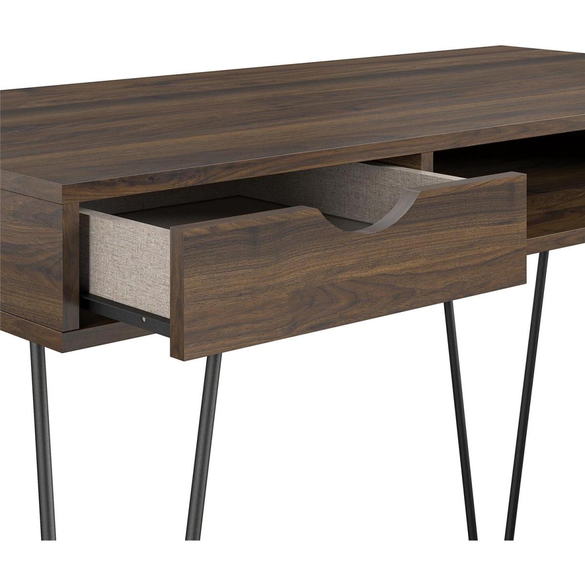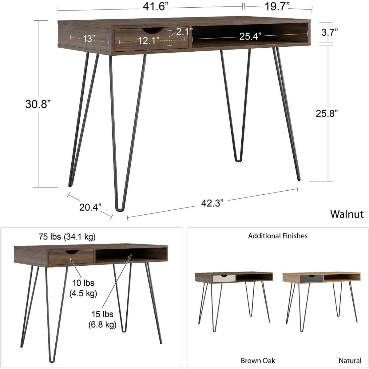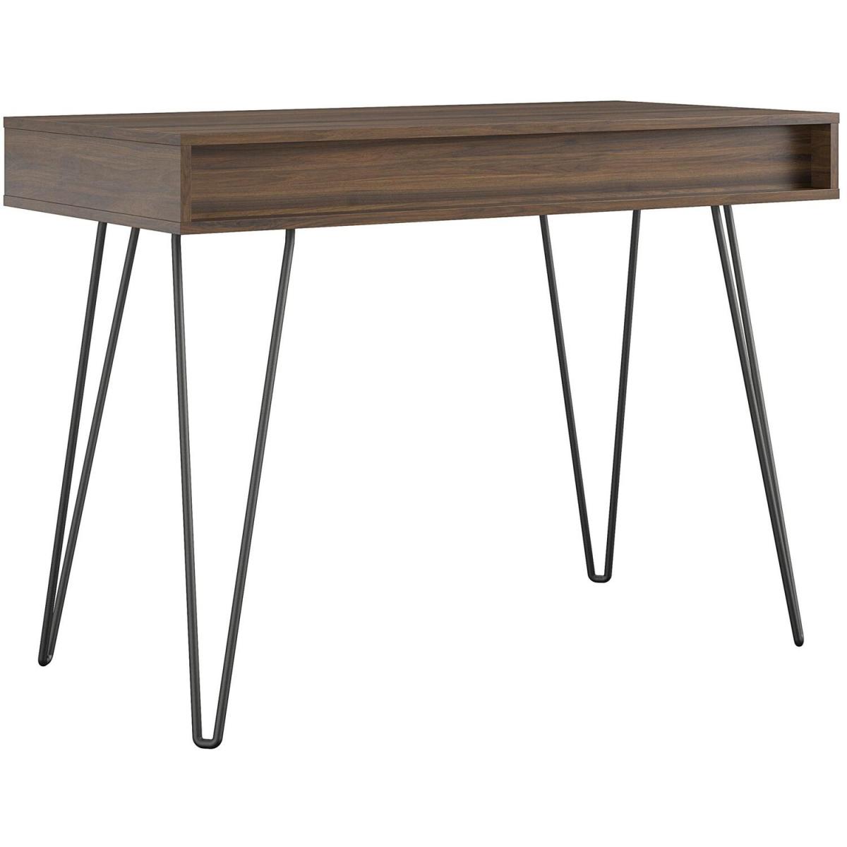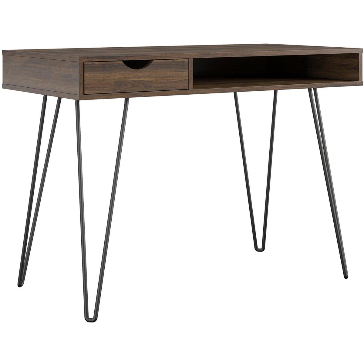 Add some mid-century style to your space with the Novogratz Concord Computer Desk with Storage. Inspired by mid-century design, the classic woodgrain finish on the laminated particleboard pairs with the black metal hairpin legs for a retro twist.