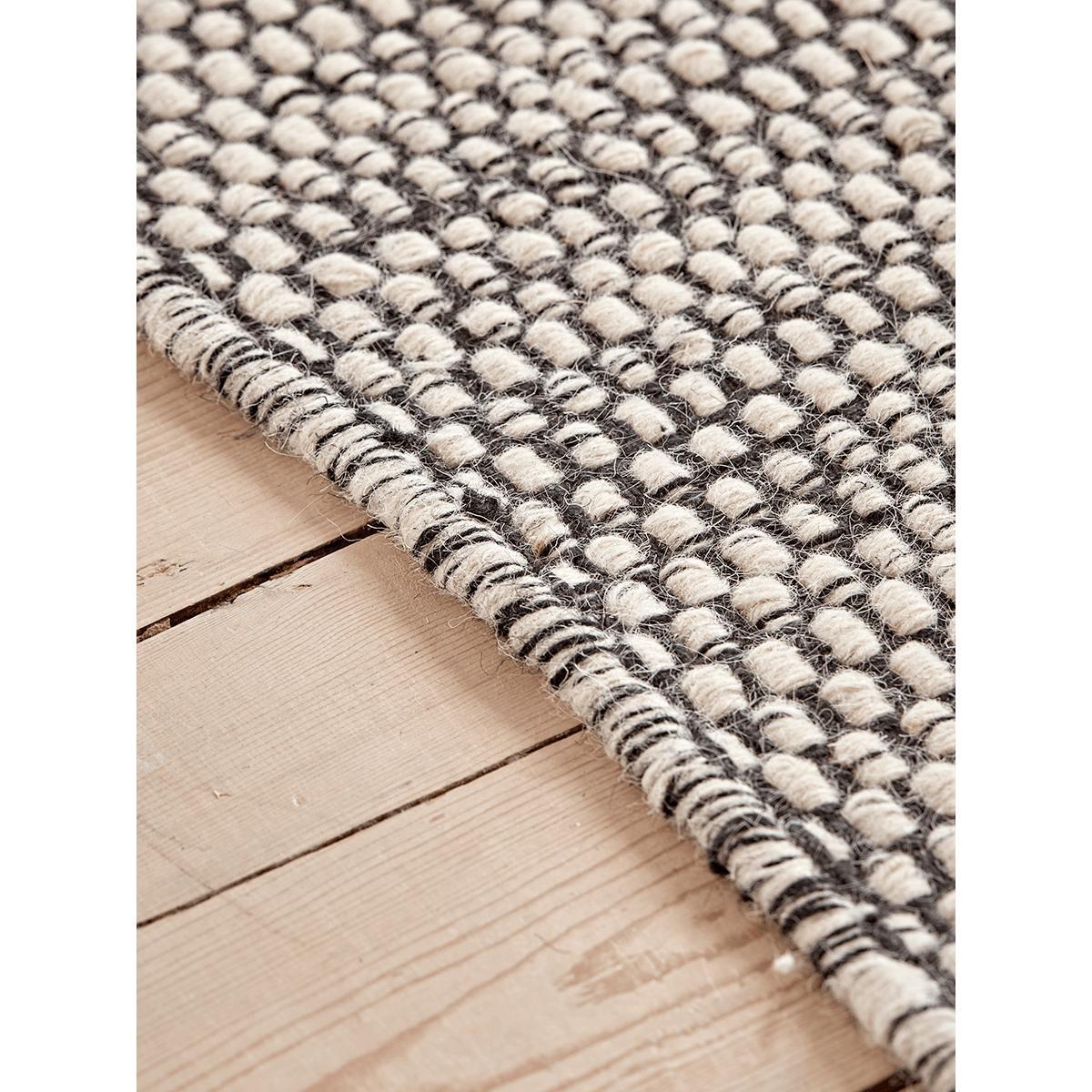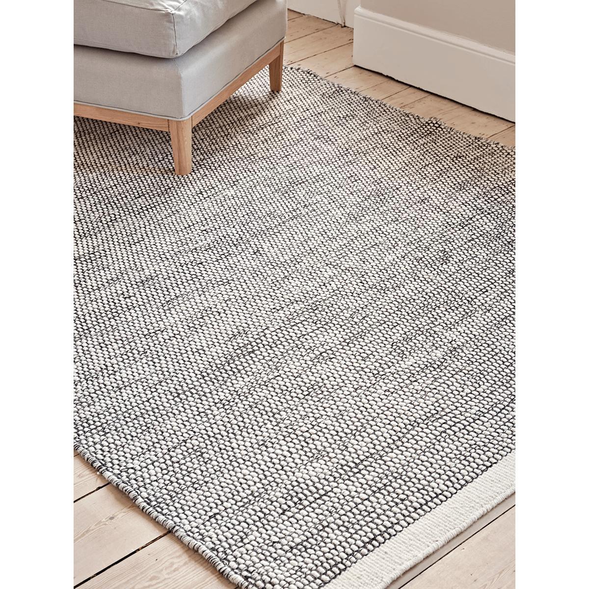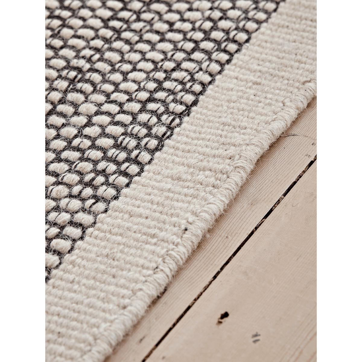 Crafted from wool and cotton for a luxurious feel underfoot, our monochrome rug is stylish in its simplicity, and with its gentle tones will make a versatile covering for many a home scheme. Each rug has a woven texture to the finish, with a thicker border to each short edge.