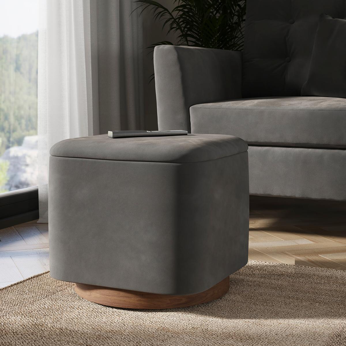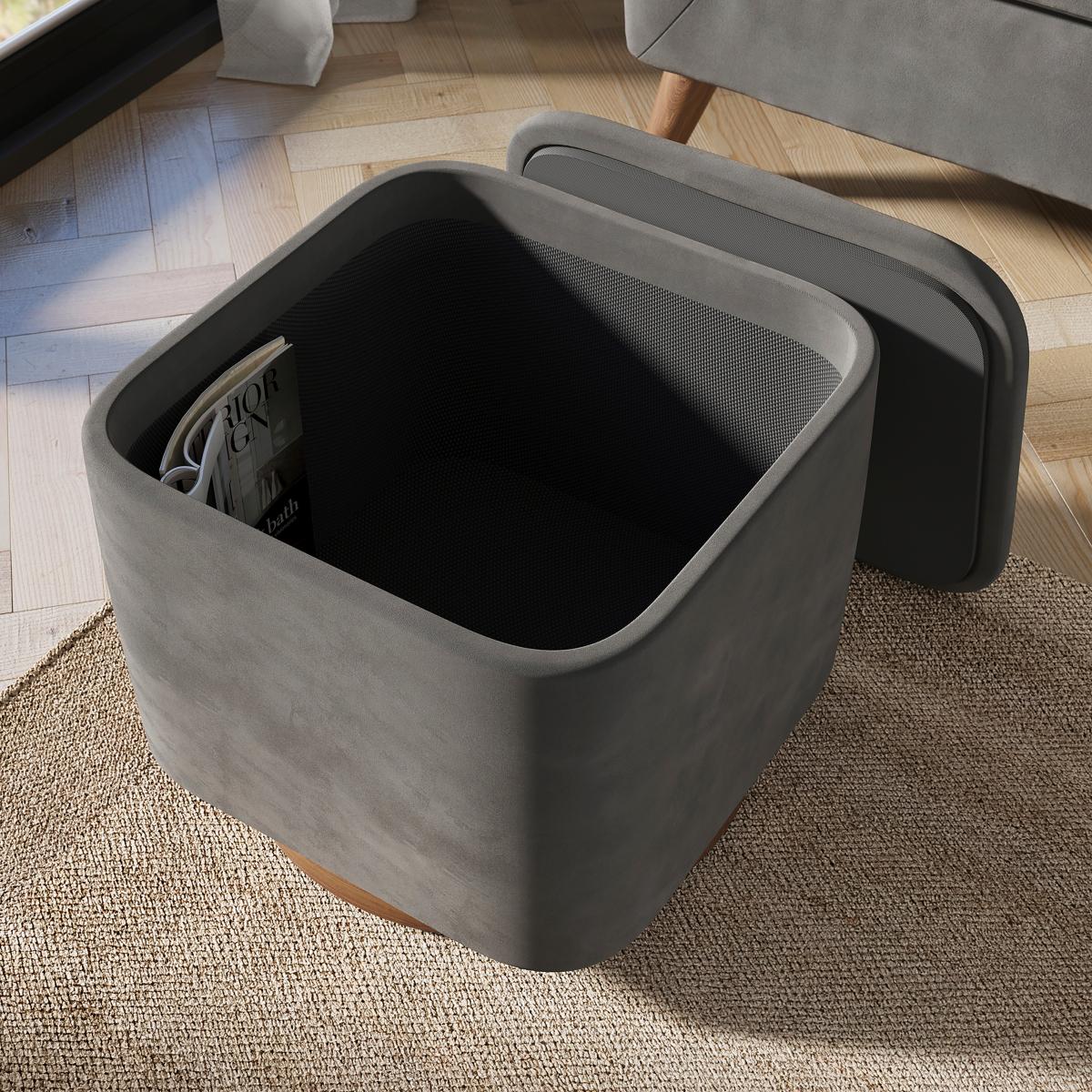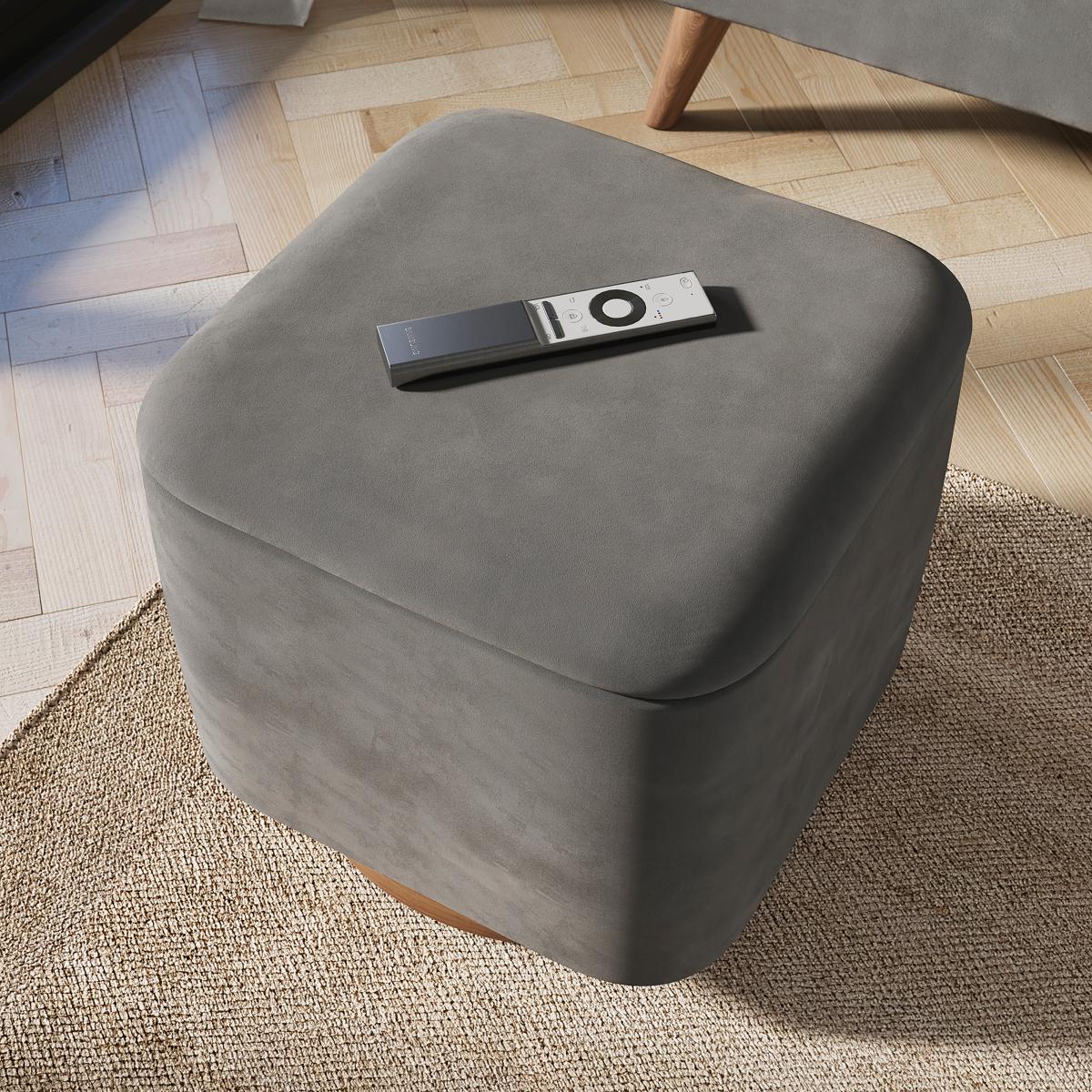 Nia Square Velvet Footstool, Charcoal Charcoal