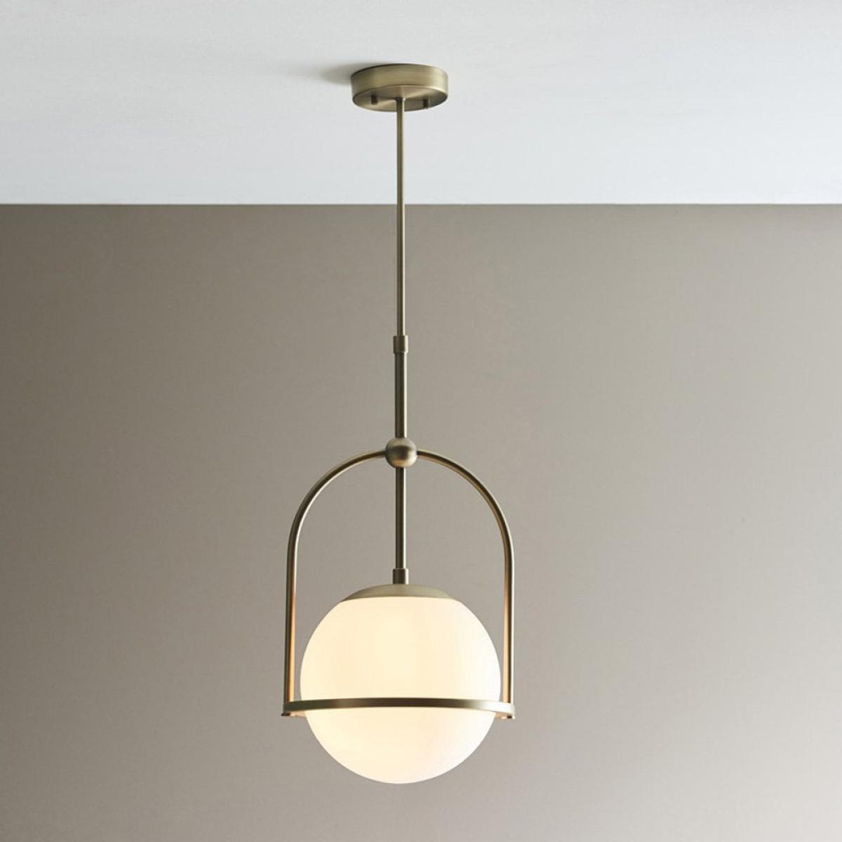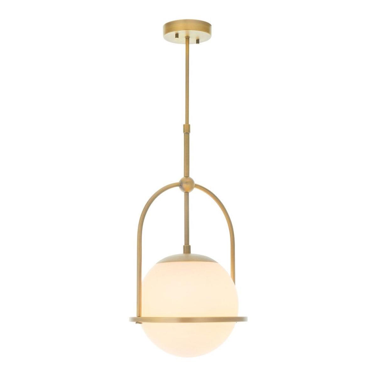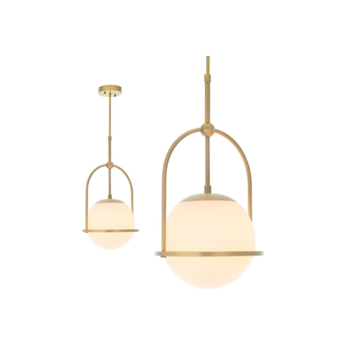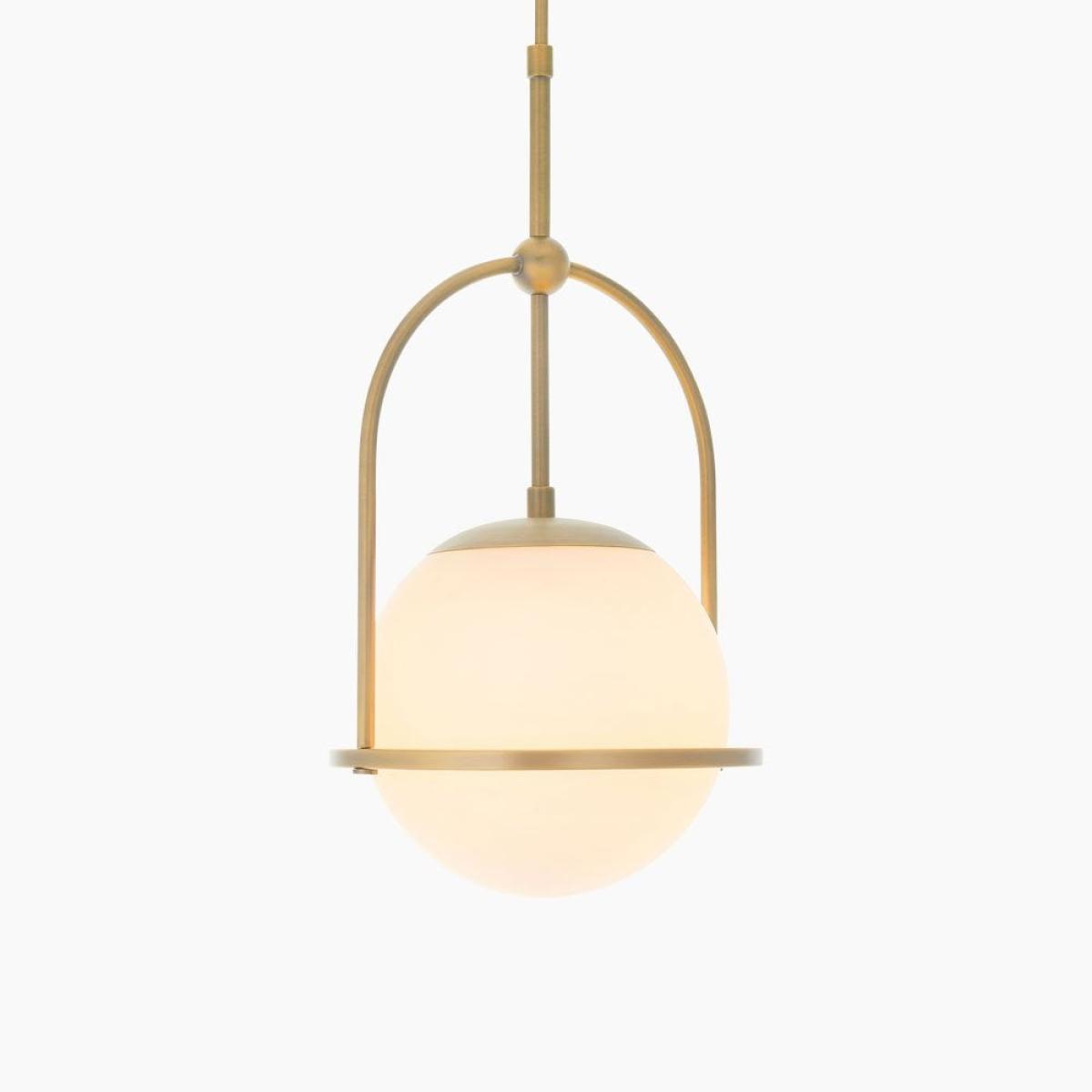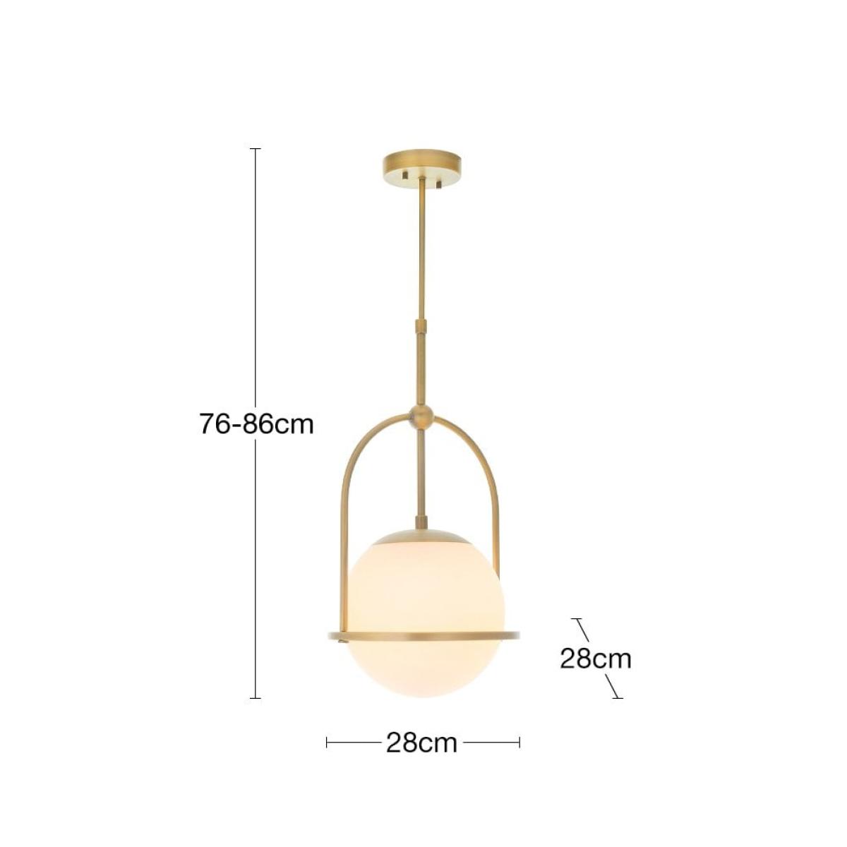 Set the mood in any room. The Niamh Pendant Light has a beautiful opal glass globe encased in a matte antique brass metal frame making it an instant classic. Its height-adjustable stem means you can hang it anywhere in the house. Dimmable light too for extra versatility.