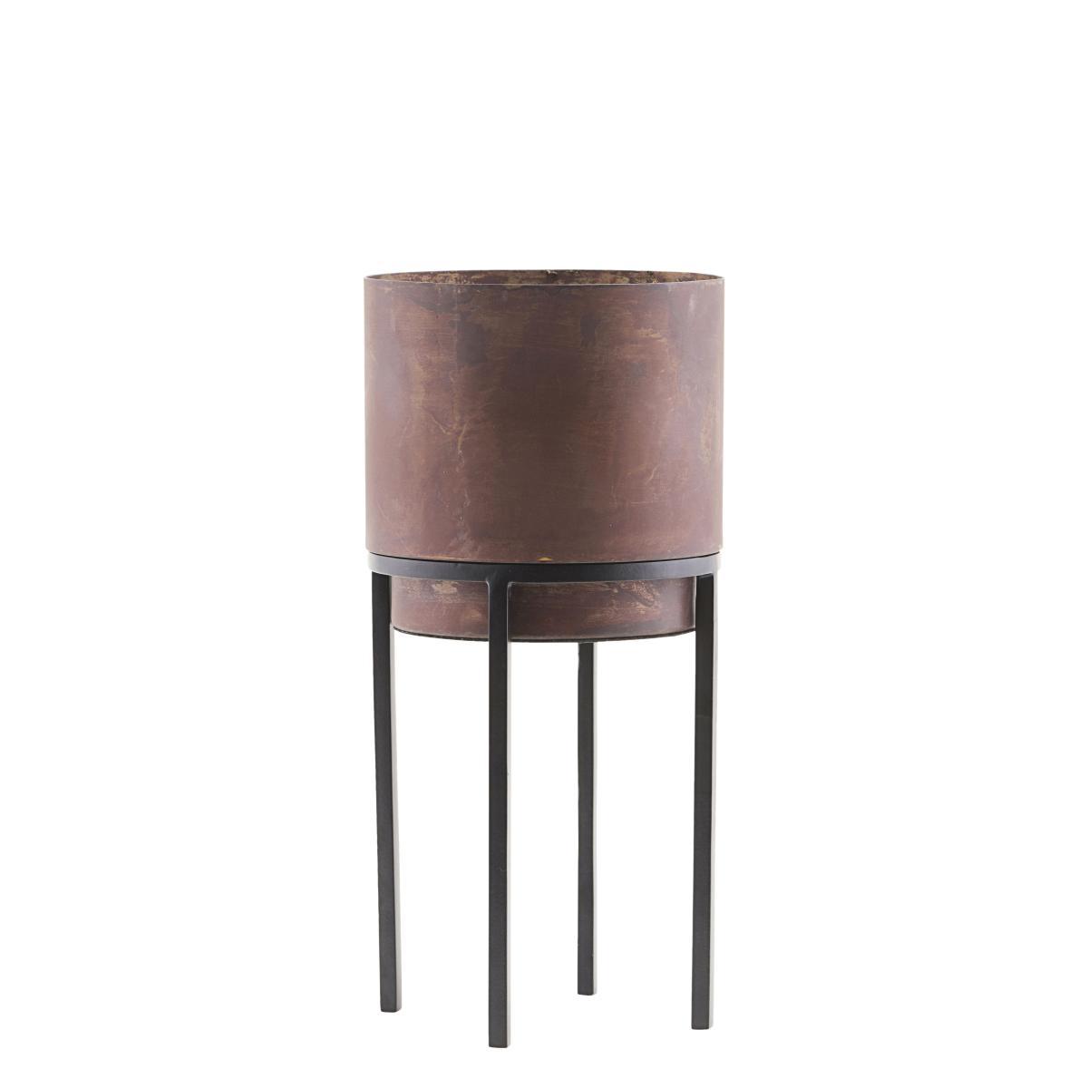 A raw and industrial look for this flowerpot on legs. The pot has a used rust finish with deliberately irregular tones. This unpretentious pot with a simple and authentic design will enhance your flowers. Equally as at ease inside as it is outside, it is perfect for creating an original and modern green area. Raised high on their pedestal, your plants will no longer go unnoticed – with all eyes on them, they will become the focal point of your decor!.