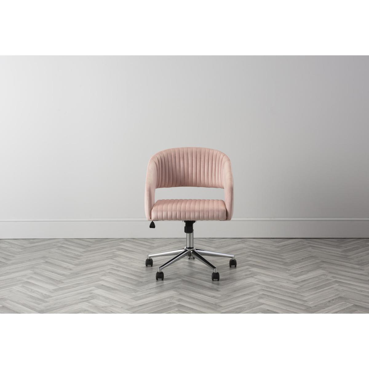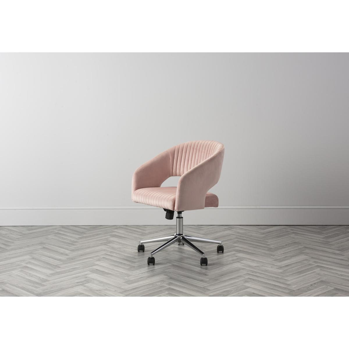 Sit back and relax, or maybe actually work if you have to, with our luxurious Niantic Pink Velvet Swivel Chair. Working from home has never been so glamorous, with the deep velvet seat, ribbed design, and height adjustable on wheels, what more could one ask for. Simply tuck into one of our amazing desks, with the perfect floor lamp behind you and your ready to go.