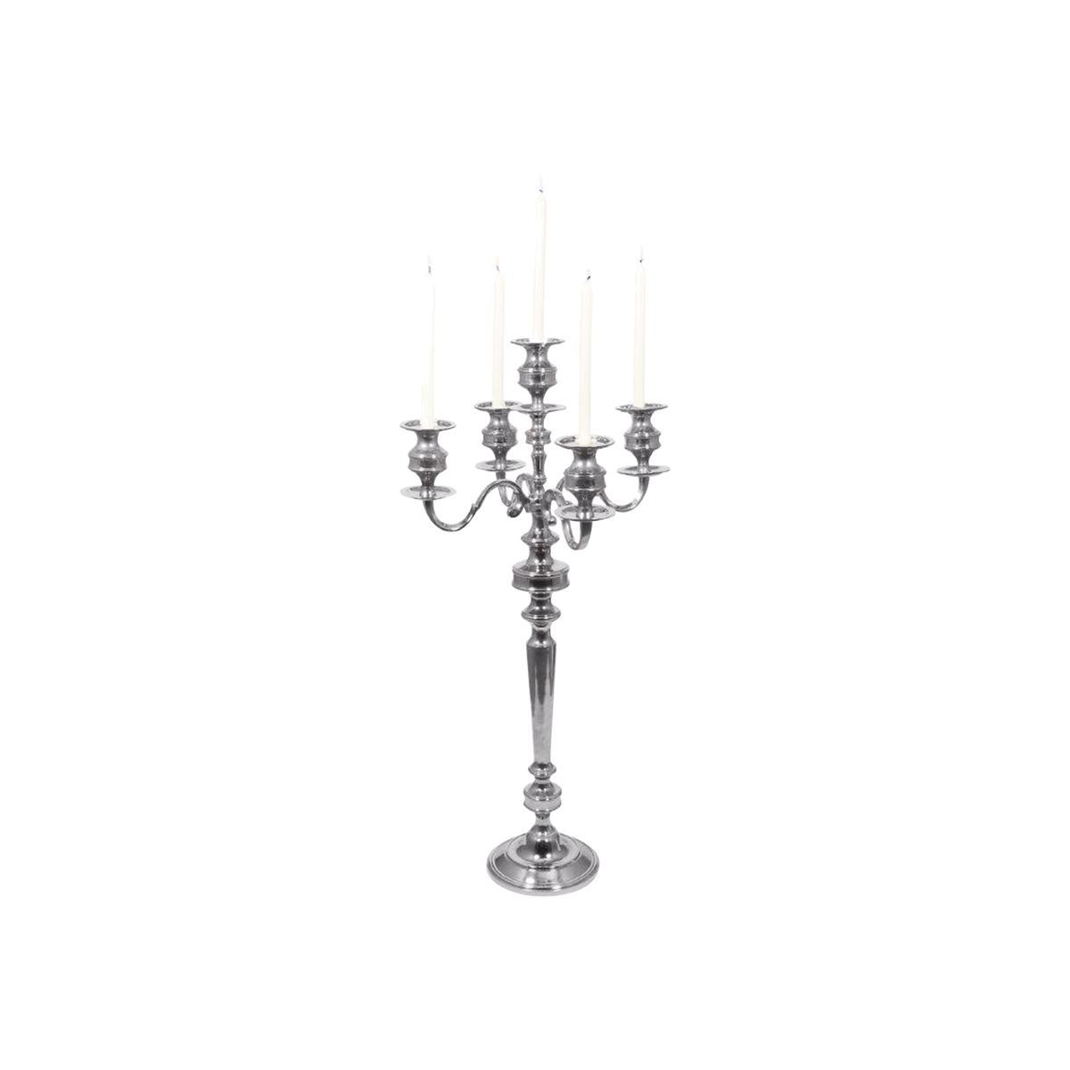 No lighting is more flattering than candlelight. Standing splendidly at over a metre in height, the Nickel Floor Standing Candelabra is sure to bring romance to your dining room, casting soft light over the dinner table. This quite beautiful, highly decorative Candelabra is finished in polished nickel with sconces for five candles. The perfect partner to the Nickel Table Candelabra. Striking and dramatic floor standing candelabra. Stands over a metre in height. Classic design is crafted in smooth nickel. Five candle holders swoop and curve elegantly. Sturdy circular base with decorative stem. Impact and glamour for the dining room. Dimensions. Width: 52cm (20 inches). Depth: 52cm (20 inches). Height: 105cm (41 inches).