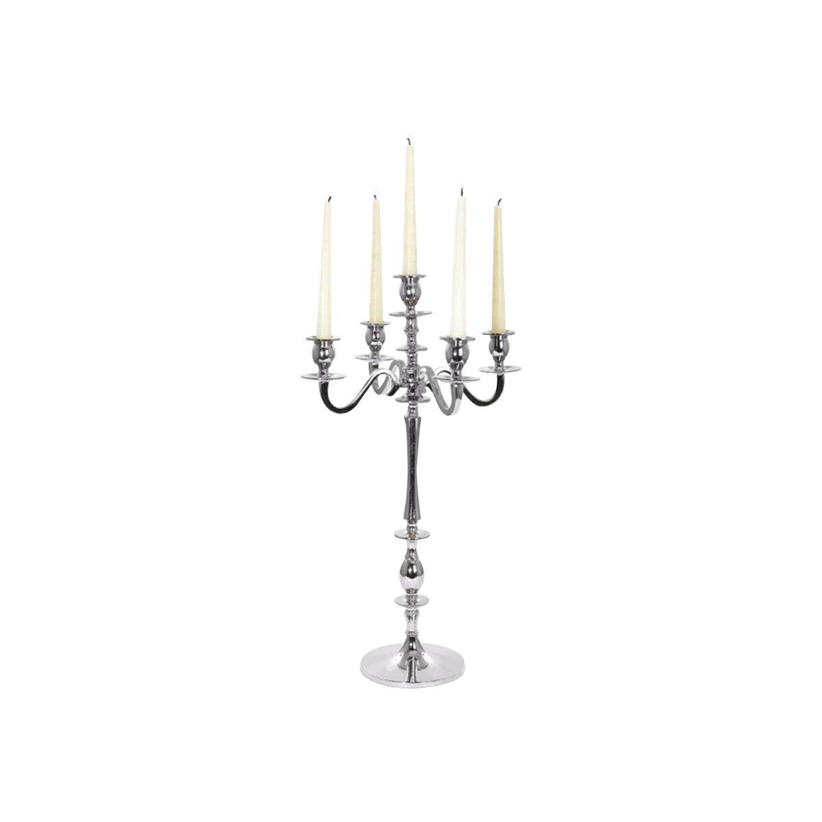Prepare to entertain in splendour. The Nickel Table Candelabra will bring plenty of romance and glamour to your dinner party or romantic meal for two. Make the evening magical. Striking and dramatic candelabra. Stands over two feet tall. Classic design is crafted in smooth nickel. Five candle holders swoop and curve elegantly. Sturdy circular base with decorative stem. Bring old-fashioned glamour to your home. Dimensions. Width: 36cm (14 inches). Depth: 36cm (14 inches). Height: 65cm (26 inches).