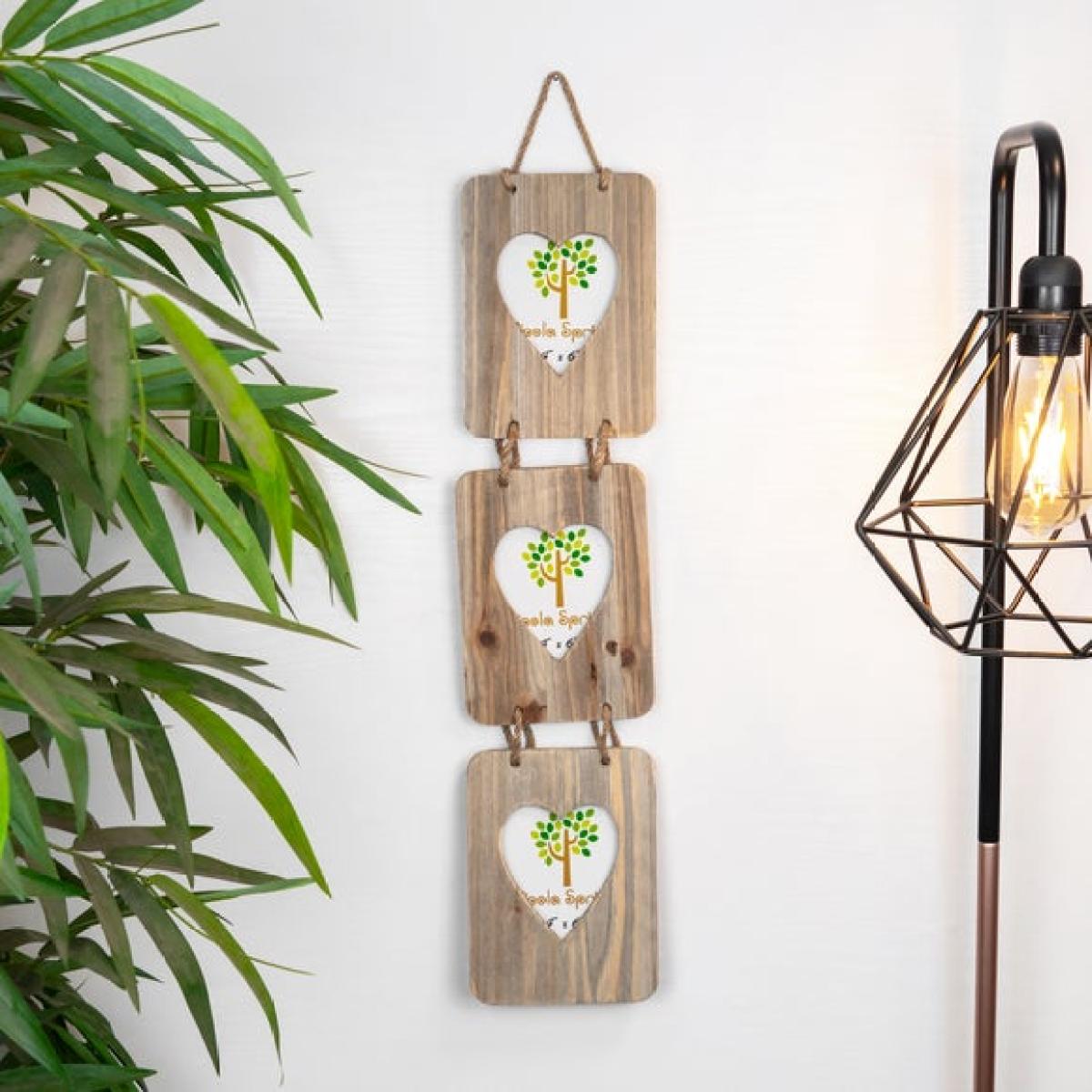 I love the Nicola Spring triple hanging rectangle with heart for its charming rustic appeal and versatility. It works beautifully in cosy, country-inspired interiors or pared-back modern spaces that could benefit from a touch of warmth and personalisation. Its vertical layout makes it ideal for narrow walls or corridor spaces, creating a lovely visual display without feeling overwhelming. Practical styling tips include arranging favourite family photos or travel snaps, and complementing it with other wooden or natural textures to enhance its earthy vibe. For a more eclectic look, layer it beside other wall hangings or greenery to add depth. It’s a simple yet effective way to keep cherished memories close in a manner that feels both stylish and approachable.