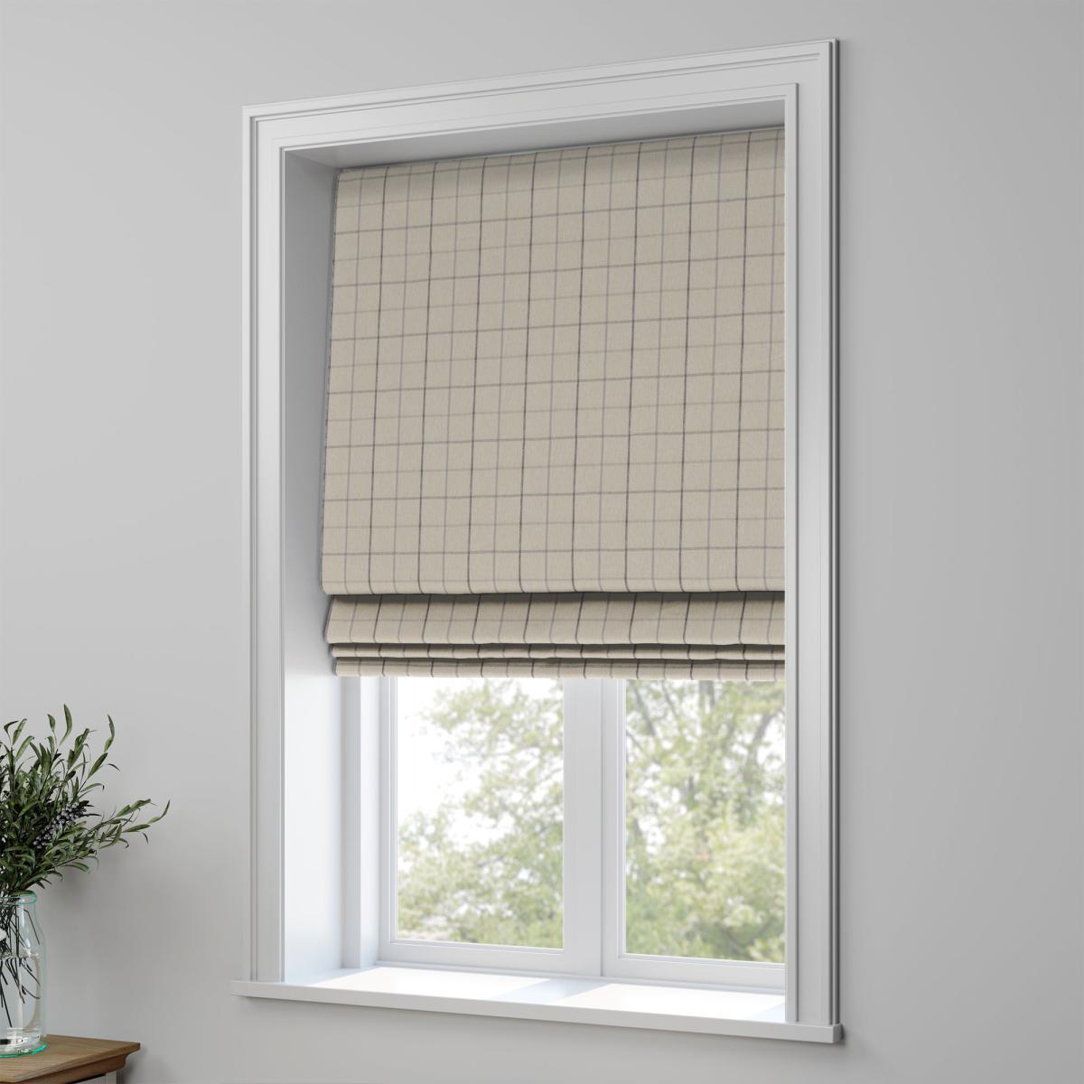 * Choose from 3 linings* Select your fitting type* Pick a side for the operating chain Our Nicole Check range of Roman Blinds bestows a simple yet stylish checked design which will bring beauty to any room.**Choosing your lining:*** Blackout provides minimal light disturbance in your home making it perfect for bedrooms. * Thermal helps to keep the warmth in and the cool air out meaning it’s great for family rooms or lounges. * Our Standard Lining is perfect if you like the glow of natural light whilst your curtains are closed whilst still maintaining your privacy.**Choosing your fitting type:*** Inside the recess: this gives a tidy, snug finish as it’s made to fit your window exactly. * Outside the recess: this option is great if you don’t want the blind to be visible from the outside when it’s drawn up.**Choosing which side you’d like the operating chain:*** Think about where your blind will be situated and what furniture may be near it – choose the side that is easier for you to access.**Need help deciding or measuring?**Book a free appointment with one of our consultants! dunelm. com/category/made-to-measure/book-an-appointment).**Child Safety:**We add clips to the back of our roman blinds to attach the cords to the fabric. They also double up as a child safety feature. If pressure is exerted the clips will detach to prevent the risk of strangulation. Please read our [Blinds Safety Guide](https://www. dunelm. com/info/buying-guides/blinds-safety-guidance) for more information. If the clips detach accidentally during normal use, they can be easily re-clipped back into place. Please note: If your measured width is over 130cm your blinds may come with a fabric join to provide the full width required.