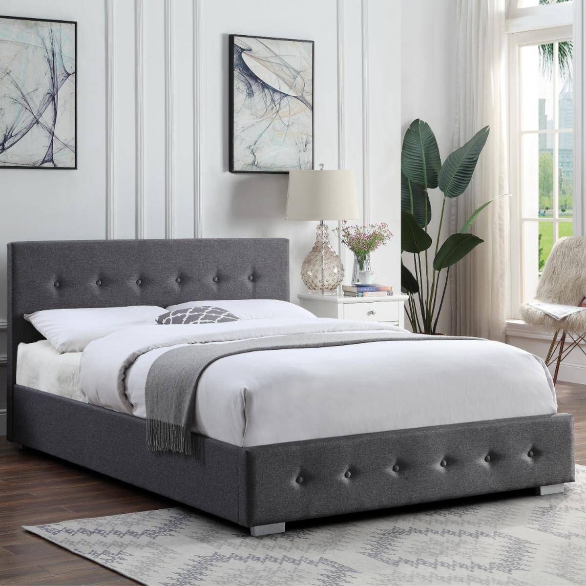 Upholstered beautiful grey linen. Contemporary design will effortlessly blend into any bedroom interior. Create extra space in your bedroom. Under-bed storage with easy gas lift access for all your storage needs. Features luxury Padded headboard, base & sides. With Sprung wooden slats for support and strength. Finished in a hardwearing linen fabric, water and mark resistant. Strong steel internal frame & centre support legs. Pocket Sprung Mattress Option-Thick 16cm Luxury pocket sprung mattress with independent pocket springs to adapt to weight. Breathable cool touch hypoallergenic cover, anti dust and anti mite. High density foam top sleeping layer medium firm rating.