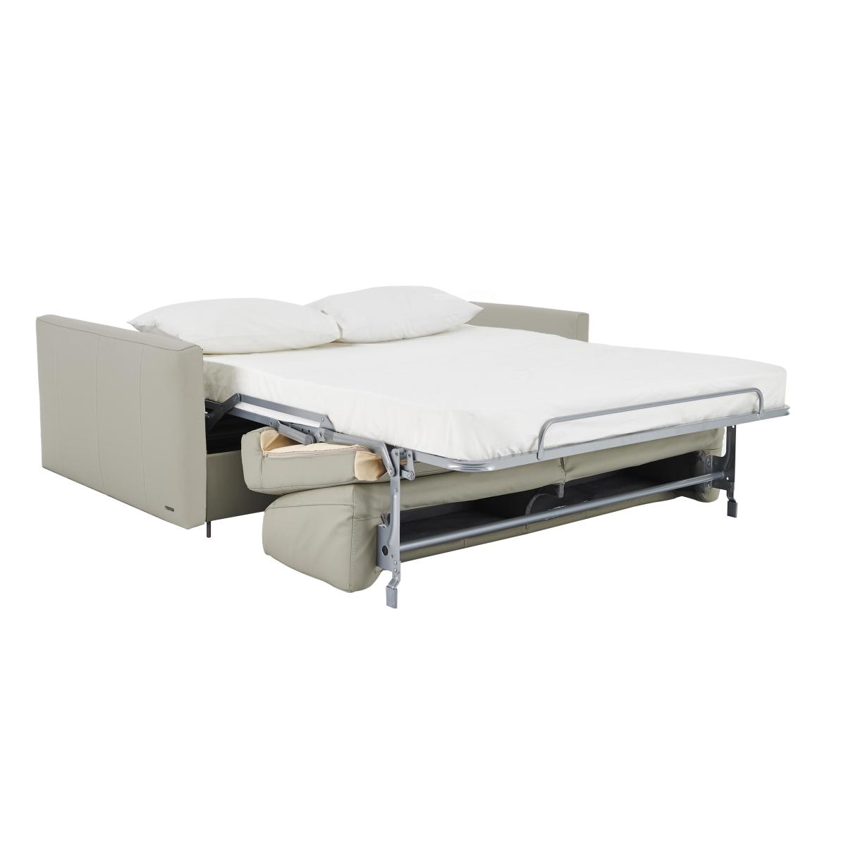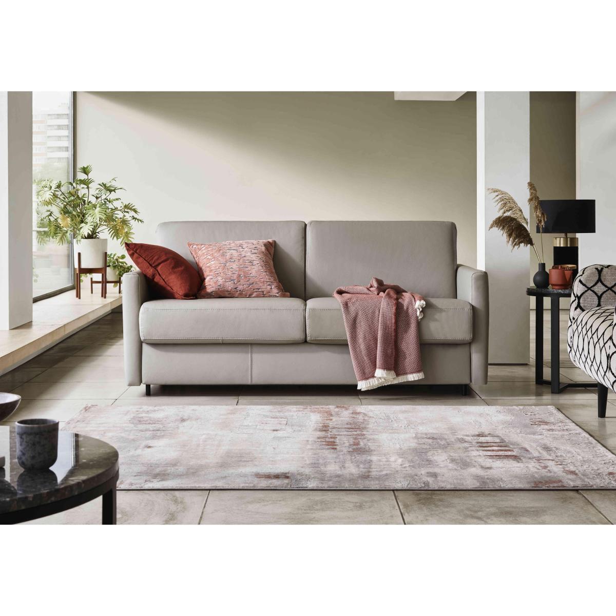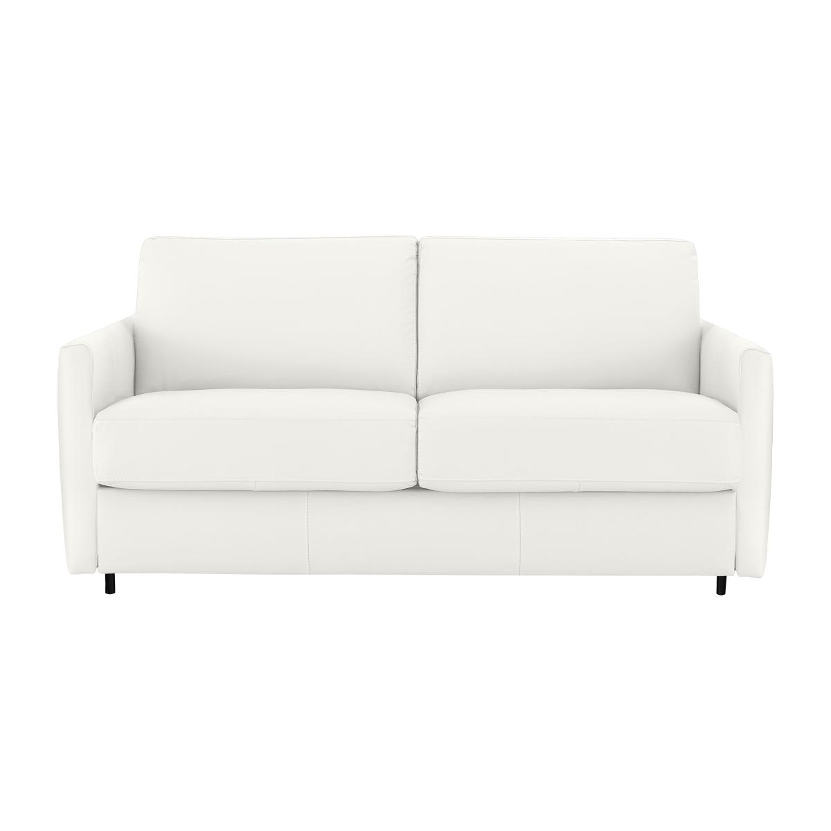 Say ‘saluti’ to Italian-made quality furniture with the Nicoletti Alcova range. With a big focus on simplicity and comfort, coming home to the Alcova is like coming home to an old friend – welcoming and warm. There’s plenty of choice on offer, from chairs to sofa beds, available in both 100% real leather and hardwearing fabric upholstery. You can even take your pick from three different arm styles, plus a huge range of colours to really make it your own. The Alcova range can do it all, from a contemporary centrepiece to a snuggly sofa bed, but there’s one thing that won’t change – the effortless Italian good looks. Handmade in Italy and exclusive to Furniture Village. Compact, cosy, and comfortable, this leather sofa bed will make your guests feel right at home, plus it will look super stylish in your interior. Why you'll love it This 2.5-seater leather sofa bed is the perfect choice for a stylish guest room. Sleek, slim arms work in a variety of interiors. Understated silhouette for a classy, minimalist aesthetic. Upholstered in 100% genuine leather. Choose from a range of stunning colours to suit your interior. Quickly and easily transforms into a sofa bed with a two-fold mechanism. Super-comfortable foam mattress won’t disappoint your guests. Features space-saving integrated pillow storage. Hidden feet complete the refined, modern look. Handcrafted in Italy, exclusively at Furniture Village. This 2.5-seater leather sofa bed is part of the Nicoletti Alcova range. What you need to know Soft yet supportive medium comfort level. Seat and back suspension: elastic webbing. Seat and back cushioning: padded ecological foam. Foam mattress depth: 12 cm. Leather has unique marks and characteristics with variance in colour and texture. Leather softens with use. Smoothing the tops of leather cushions prevents signs of visual comfort. Please read our upholstery care guide for more advice. This sofa bed is also available with slim arms and scroll arms.