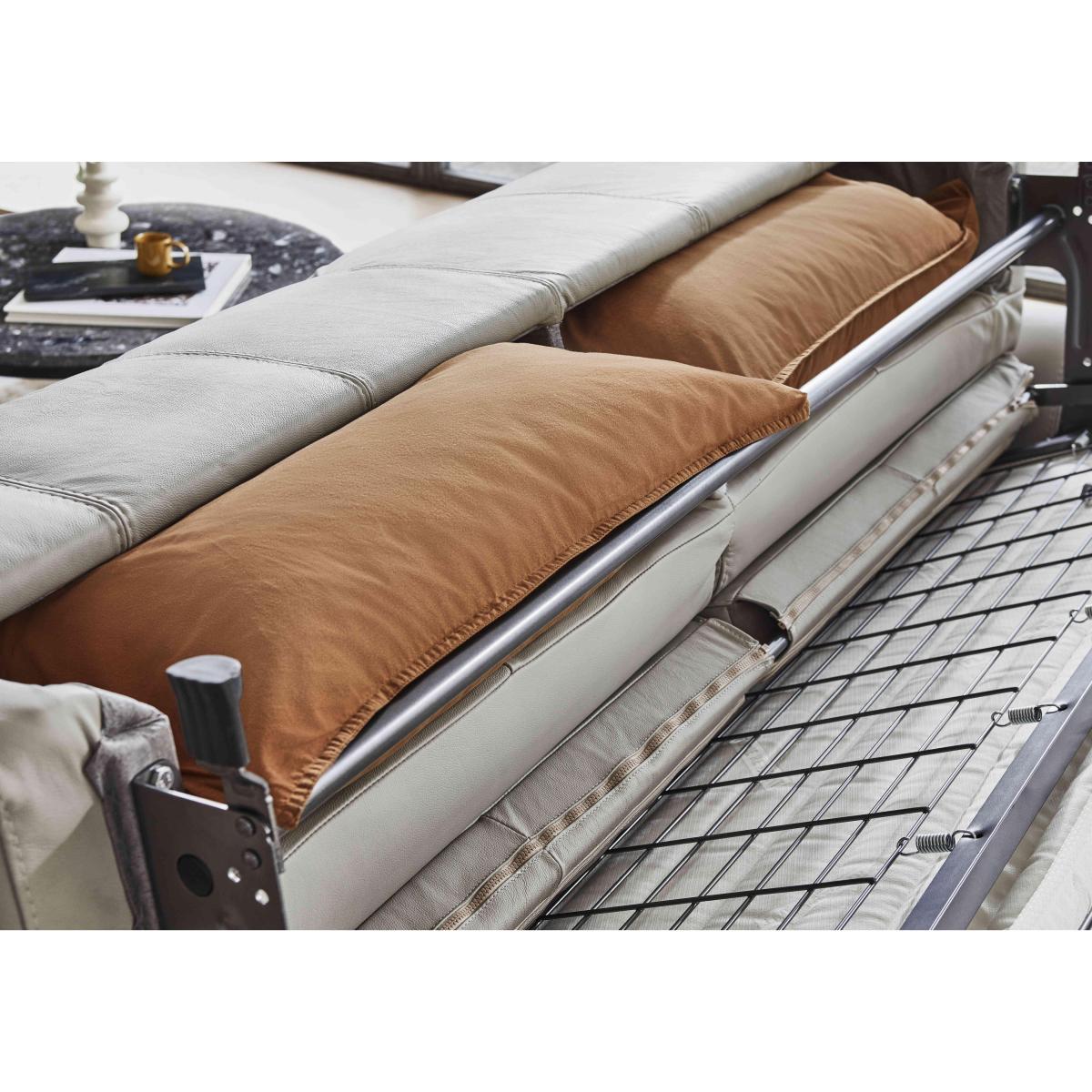 Say ‘saluti’ to Italian-made quality furniture with the Nicoletti Alcova range. With a big focus on simplicity and comfort, coming home to the Alcova is like coming home to an old friend – welcoming and warm. There’s plenty of choice on offer, from chairs to sofa beds, available in both 100% real leather and hardwearing fabric upholstery. You can even take your pick from three different arm styles, plus a huge range of colours to really make it your own. The Alcova range can do it all, from a contemporary centrepiece to a snuggly sofa bed, but there’s one thing that won’t change – the effortless Italian good looks. Handmade in Italy and exclusive to Furniture Village. Maximise your space with this 2-seater leather sofa bed and give your guests a comfy bed for the night without sacrificing style. Why you'll love it Effortless Italian good looks make this 2-seater leather sofa bed a real showstopper. Timeless scroll arms for a traditional touch. Understated silhouette for a classy, minimalist aesthetic. Upholstered in 100% genuine leather. Choose from a range of stunning colours to suit your interior. Quickly and easily transforms into a sofa bed with a two-fold mechanism. Super-comfortable foam mattress won’t disappoint your guests. Features space-saving integrated pillow storage. Dark wood feet round off the modern look. Handcrafted in Italy, exclusively at Furniture Village. This 2-seater leather sofa bed is part of the Nicoletti Alcova range. What you need to know Soft yet supportive medium comfort level. Seat and back suspension: elastic webbing. Seat and back cushioning: padded ecological foam. Foam mattress depth: 12 cm. Leather has unique marks and characteristics with variance in colour and texture. Leather softens with use. Smoothing the tops of leather cushions prevents signs of visual comfort. Please read our upholstery care guide for more advice. This sofa bed is also available with slim arms and box arms.