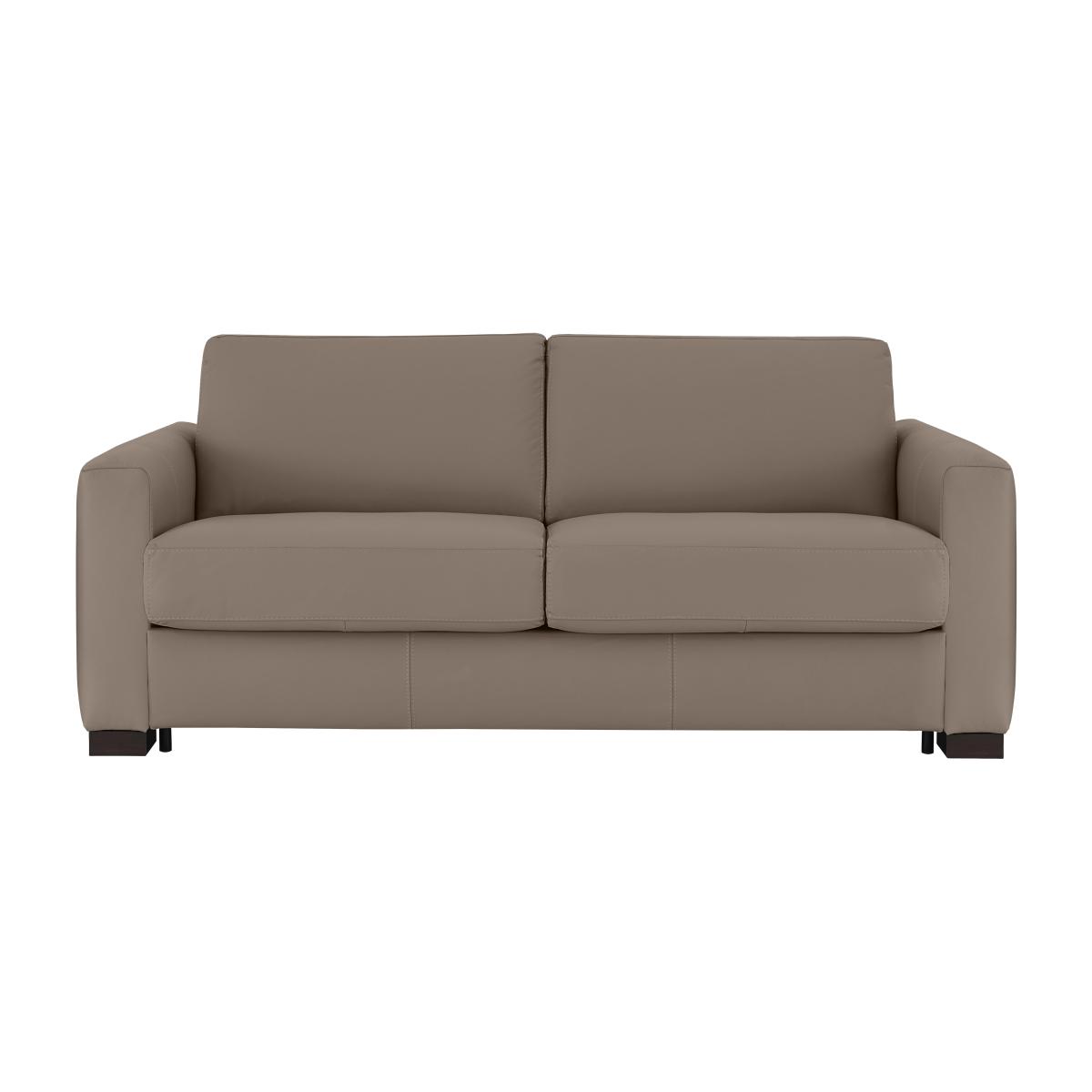 Say ‘saluti’ to Italian-made quality furniture with the Nicoletti Alcova range. With a big focus on simplicity and comfort, coming home to the Alcova is like coming home to an old friend – welcoming and warm. There’s plenty of choice on offer, from chairs to sofa beds, available in both 100% real leather and hardwearing fabric upholstery. You can even take your pick from three different arm styles, plus a huge range of colours to really make it your own. The Alcova range can do it all, from a contemporary centrepiece to a snuggly sofa bed, but there’s one thing that won’t change – the effortless Italian good looks. Handmade in Italy and exclusive to Furniture Village. Calling all hosts – this 3-seater leather sofa bed offers a chic solution to where your guests will sleep, with Italian design and a simple yet suave silhouette. Why you'll love it There’s no compromise on comfort or looks with this 3-seater leather sofa bed. Contemporary box arms that suit many interiors. Understated silhouette for a classy, minimalist aesthetic. Upholstered in 100% genuine leather. Choose from a range of stunning colours to suit your interior. Quickly and easily transforms into a sofa bed with a two-fold mechanism. Super-comfortable foam mattress won’t disappoint your guests. Features space-saving integrated pillow storage. Refined dark wood feet complete the look. Handcrafted in Italy, exclusively at Furniture Village. This 3-seater leather sofa bed is part of the Nicoletti Alcova range. What you need to know Soft yet supportive medium comfort level. Seat and back suspension: elastic webbing. Seat and back cushioning: padded ecological foam. Foam mattress depth: 12 cm. Leather has unique marks and characteristics with variance in colour and texture. Leather softens with use. Smoothing the tops of leather cushions prevents signs of visual comfort. Please read our upholstery care guide for more advice. This sofa bed is also available with slim arms and scroll arms.