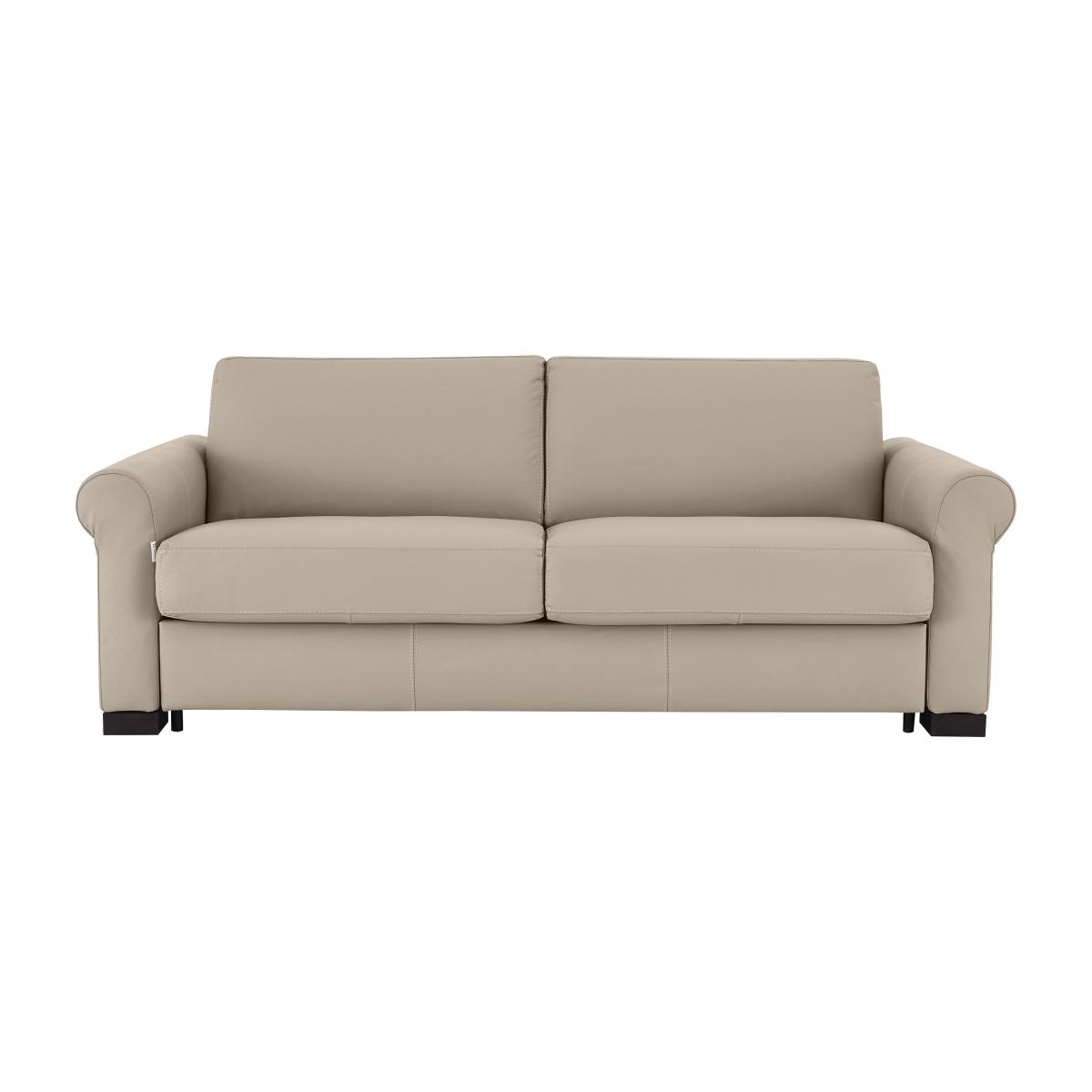 Say ‘saluti’ to Italian-made quality furniture with the Nicoletti Alcova range. With a big focus on simplicity and comfort, coming home to the Alcova is like coming home to an old friend – welcoming and warm. There’s plenty of choice on offer, from chairs to sofa beds, available in both 100% real leather and hardwearing fabric upholstery. You can even take your pick from three different arm styles, plus a huge range of colours to really make it your own. The Alcova range can do it all, from a contemporary centrepiece to a snuggly sofa bed, but there’s one thing that won’t change – the effortless Italian good looks. Handmade in Italy and exclusive to Furniture Village. Family sofa by day, guest bed by night, this 3-seater leather sofa bed is versatile and super comfortable. Why you'll love it This 3-seater leather sofa bed is perfect for family homes. Timeless scroll arms for a traditional touch. Understated silhouette for a classy, minimalist aesthetic. Upholstered in 100% genuine leather. Choose from a range of stunning colours to suit your interior. Quickly and easily transforms into a sofa bed with a two-fold mechanism. Super-comfortable foam mattress won’t disappoint your guests. Features space-saving integrated pillow storage. Dark wood feet round off the modern look. Handcrafted in Italy, exclusively at Furniture Village. This 3-seater leather sofa bed is part of the Nicoletti Alcova range. What you need to know Soft yet supportive medium comfort level. Seat and back suspension: elastic webbing. Seat and back cushioning: padded ecological foam. Foam mattress depth: 12 cm. Leather has unique marks and characteristics with variance in colour and texture. Leather softens with use. Smoothing the tops of leather cushions prevents signs of visual comfort. Please read our upholstery care guide for more advice. This sofa bed is also available with slim arms and box arms.