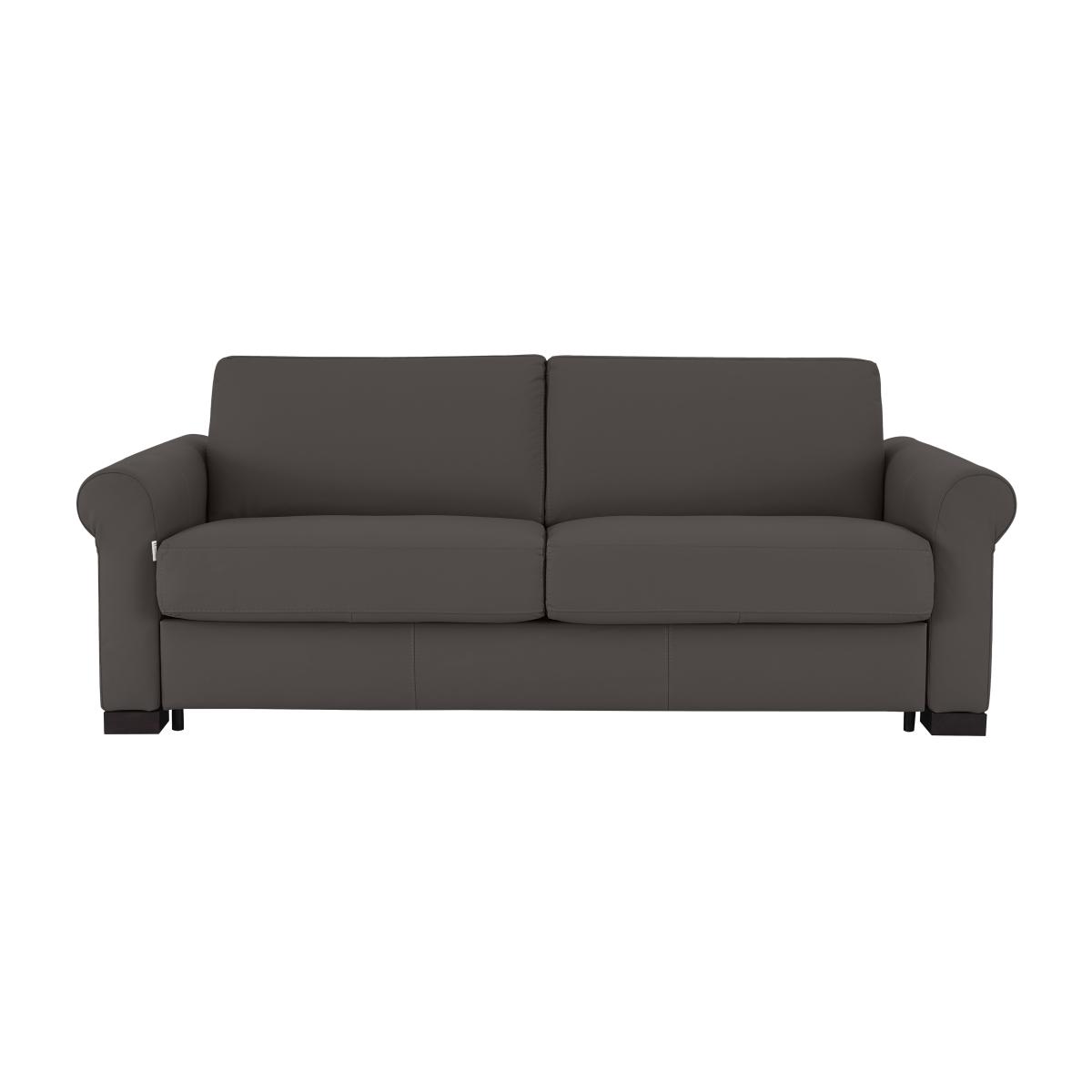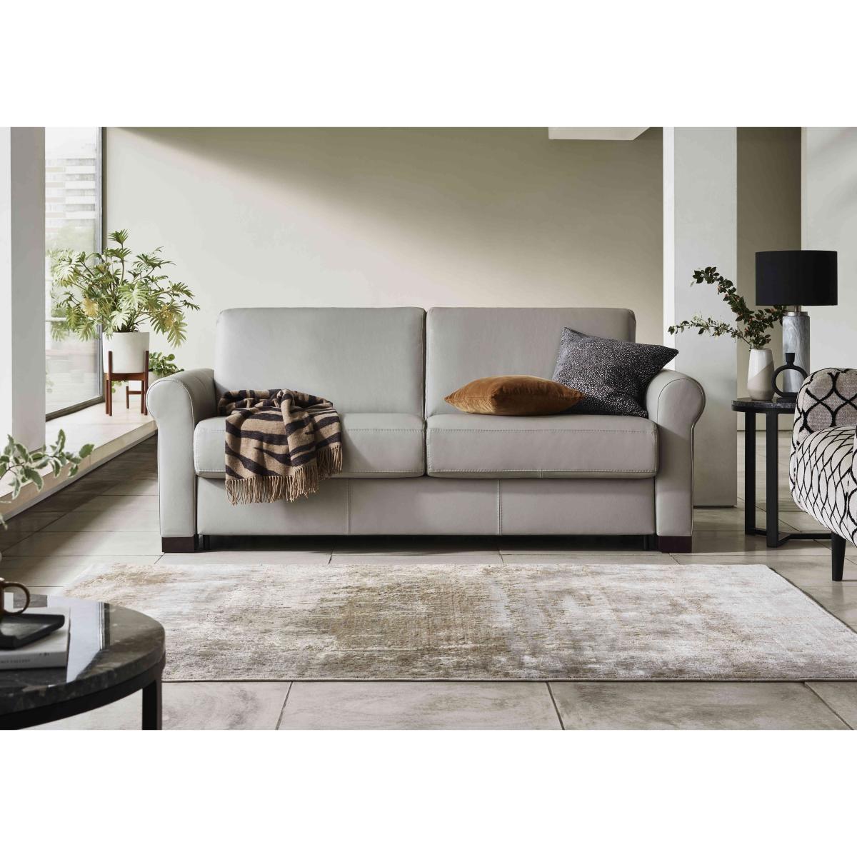 Say ‘saluti’ to Italian-made quality furniture with the Nicoletti Alcova range. With a big focus on simplicity and comfort, coming home to the Alcova is like coming home to an old friend – welcoming and warm. There’s plenty of choice on offer, from chairs to sofa beds, available in both 100% real leather and hardwearing fabric upholstery. You can even take your pick from three different arm styles, plus a huge range of colours to really make it your own. The Alcova range can do it all, from a contemporary centrepiece to a snuggly sofa bed, but there’s one thing that won’t change – the effortless Italian good looks. Handmade in Italy and exclusive to Furniture Village. Family sofa by day, guest bed by night, this 3-seater leather sofa bed is versatile and super comfortable. Why you'll love it This 3-seater leather sofa bed is perfect for family homes. Timeless scroll arms for a traditional touch. Understated silhouette for a classy, minimalist aesthetic. Upholstered in 100% genuine leather. Quickly and easily transforms into a sofa bed with a two-fold mechanism. Super-comfortable foam mattress won’t disappoint your guests. Features space-saving integrated pillow storage. Dark wood feet round off the modern look. Handcrafted in Italy, exclusively at Furniture Village. This 3-seater leather sofa bed is part of the Nicoletti Alcova range. What you need to know Soft yet supportive medium comfort level. Seat and back suspension: elastic webbing. Seat and back cushioning: padded ecological foam. Foam mattress depth: 12 cm. Leather has unique marks and characteristics with variance in colour and texture. Leather softens with use. Smoothing the tops of leather cushions prevents signs of visual comfort. Please read our upholstery care guide for more advice. This sofa bed is also available with slim arms and box arms.