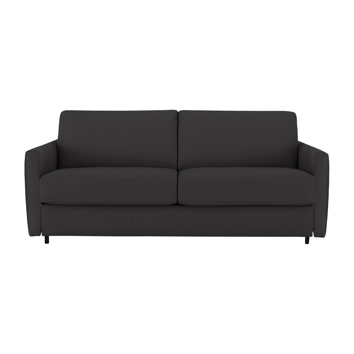 Say ‘saluti’ to Italian-made quality furniture with the Nicoletti Alcova range. With a big focus on simplicity and comfort, coming home to the Alcova is like coming home to an old friend – welcoming and warm. There’s plenty of choice on offer, from chairs to sofa beds, available in both 100% real leather and hardwearing fabric upholstery. You can even take your pick from three different arm styles, plus a huge range of colours to really make it your own. The Alcova range can do it all, from a contemporary centrepiece to a snuggly sofa bed, but there’s one thing that won’t change – the effortless Italian good looks. Handmade in Italy and exclusive to Furniture Village. Plenty of seating and an easy-to-use sofa bed mechanism make this 3-seater leather sofa bed the perfect choice for those who love to host. Why you'll love it This versatile 3-seater leather sofa bed works as a family sofa and a guest bed. Sleek, slim arms work in a variety of interiors. Understated silhouette for a classy, minimalist aesthetic. Upholstered in 100% genuine leather. Choose from a range of stunning colours to suit your interior. Quickly and easily transforms into a sofa bed with a two-fold mechanism. Super-comfortable foam mattress won’t disappoint your guests. Features space-saving integrated pillow storage. Hidden feet complete the refined, modern look. Handcrafted in Italy, exclusively at Furniture Village. This 3-seater leather sofa bed is part of the Nicoletti Alcova range. What you need to know Soft yet supportive medium comfort level. Seat and back suspension: elastic webbing. Seat and back cushioning: padded ecological foam. Foam mattress depth: 12 cm. Leather has unique marks and characteristics with variance in colour and texture. Leather softens with use. Smoothing the tops of leather cushions prevents signs of visual comfort. Please read our upholstery care guide for more advice. This sofa bed is also available with box arms and scroll arms.