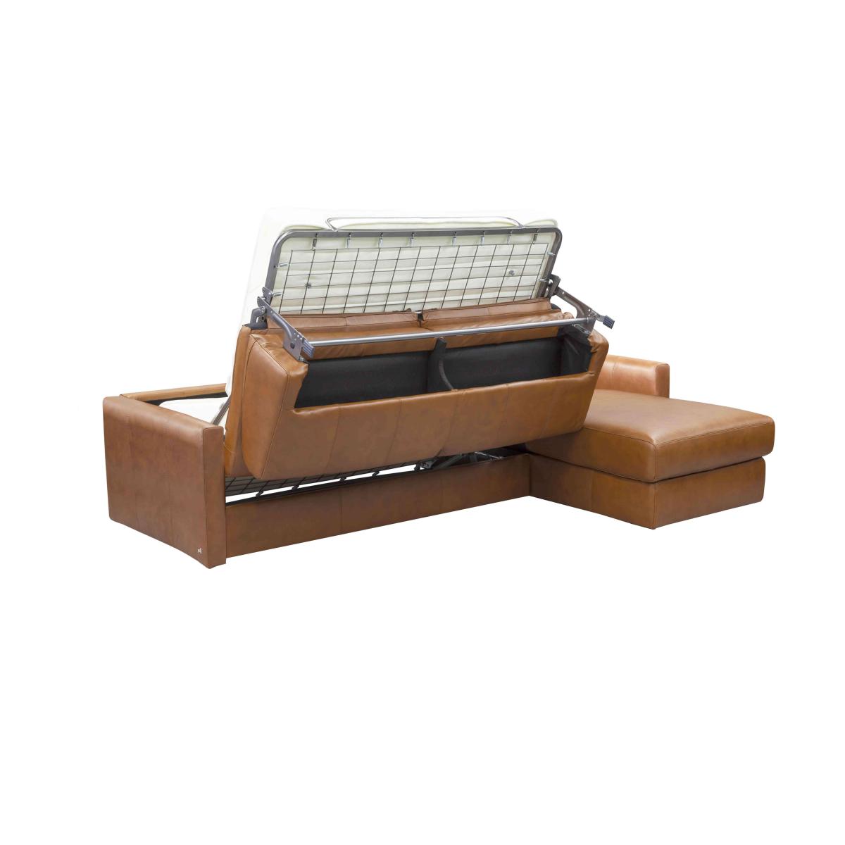 Say ‘saluti’ to Italian-made quality furniture with the Nicoletti Alcova range. With a big focus on simplicity and comfort, coming home to the Alcova is like coming home to an old friend – welcoming and warm. There’s plenty of choice on offer, from chairs to sofa beds, available in both 100% real leather and hardwearing fabric upholstery. You can even take your pick from three different arm styles, plus a huge range of colours to really make it your own. The Alcova range can do it all, from a contemporary centrepiece to a snuggly sofa bed, but there’s one thing that won’t change – the effortless Italian good looks. Handmade in Italy and exclusive to Furniture Village. This 3-seater leather sofa bed can really do it all with inbuilt storage, effortless Italian good-looks, and an easy-to-use sofa bed mechanism. Why you'll love it This 3-seater leather sofa bed offers a lot of functionality at a great-value price. Sleek, slim arms work in a variety of interiors. Understated silhouette for a classy, minimalist aesthetic. Upholstered in 100% genuine leather. Choose from a range of stunning colours to suit your interior. Quickly and easily transforms into a sofa bed with a two-fold mechanism. Super-comfortable foam mattress won’t disappoint your guests. Keep your space tidy with the storage chaise and integrated pillow storage. Hidden feet complete the refined, modern look. Handcrafted in Italy, exclusively at Furniture Village. This 3-seater leather sofa bed is part of the Nicoletti Alcova range. What you need to know Soft yet supportive medium comfort level. Seat and back suspension: elastic webbing. Seat and back cushioning: padded ecological foam. Foam mattress depth: 12 cm. Leather has unique marks and characteristics with variance in colour and texture. Leather softens with use. Smoothing the tops of leather cushions prevents signs of visual comfort. Please read our upholstery care guide for more advice. This sofa bed is also available with box arms and scroll arms.