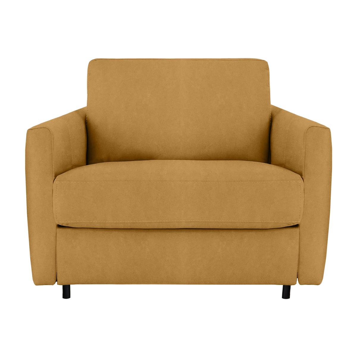 Say ‘saluti’ to Italian-made quality furniture with the Nicoletti Alcova range. With a big focus on simplicity and comfort, coming home to the Alcova is like coming home to an old friend – welcoming and warm. There’s plenty of choice on offer, from chairs to sofa beds, available in both 100% real leather and hardwearing fabric upholstery. You can even take your pick from three different arm styles, plus a huge range of colours to really make it your own. The Alcova range can do it all, from a contemporary centrepiece to a snuggly sofa bed, but there’s one thing that won’t change – the effortless Italian good looks. Handmade in Italy and exclusive to Furniture Village. Slim arms and a refined design hide the fact this fabric chair sofa bed folds out into a comfy guest bed, ideal for smaller living rooms or guest rooms. Why you'll love it. You’ll always have space for guests to stay with this fabric chair sofa bed. Sleek, slim arms give this piece a more streamlined footprint. Understated silhouette for a classy, minimalist aesthetic. Upholstered in a beautiful range of high-quality fabrics. Choose from a range of stunning colours to suit your interior. Quickly and easily transforms into a sofa bed with a two-fold mechanism. Super-comfortable foam mattress won’t disappoint your guests. Features space-saving integrated pillow storage. Hidden feet complete the refined, modern look. Handcrafted in Italy, exclusively at Furniture Village. This fabric chair sofa bed is part of the Nicoletti Alcova range. What you need to know. Soft yet supportive medium comfort level. Seat and back suspension: elastic webbing. Seat and back cushioning: padded ecological foam. Foam mattress depth: 12 cm. Some fabrics can show wear on areas of more use or in direct sunlight. Please read our upholstery care guide for more advice. This chair is also available with box arms and scroll arms.