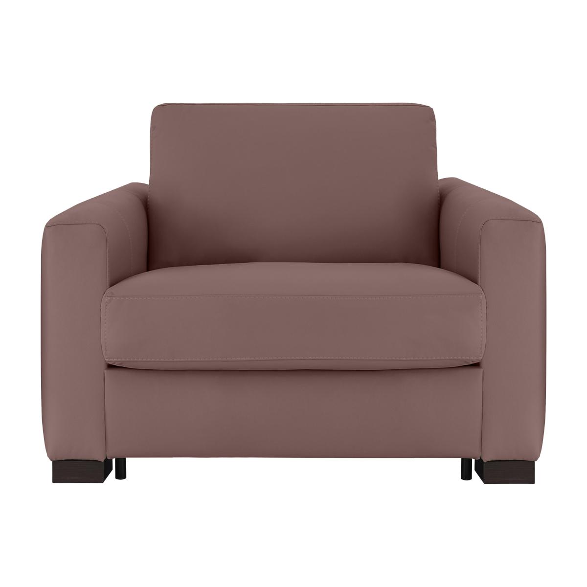 Say ‘saluti’ to Italian-made quality furniture with the Nicoletti Alcova range. With a big focus on simplicity and comfort, coming home to the Alcova is like coming home to an old friend – welcoming and warm. There’s plenty of choice on offer, from chairs to sofa beds, available in both 100% real leather and hardwearing fabric upholstery. You can even take your pick from three different arm styles, plus a huge range of colours to really make it your own. The Alcova range can do it all, from a contemporary centrepiece to a snuggly sofa bed, but there’s one thing that won’t change – the effortless Italian good looks. Handmade in Italy and exclusive to Furniture Village. Ideal for guest rooms, this handmade Italian leather chair sofa bed quickly transforms from a comfy chair to a cosy bed in seconds, hassle free. Why you'll love it A versatile piece, this leather chair sofa bed adapts to your needs. Contemporary box arms that suit many interiors. Understated silhouette for a classy, minimalist aesthetic. Upholstered in 100% genuine leather. Choose from a range of stunning colours to suit your interior. Quickly and easily transforms into a sofa bed with a two-fold mechanism. Super-comfortable foam mattress won’t disappoint your guests. Features space-saving integrated pillow storage. Refined dark wood feet complete the look. Handcrafted in Italy and exclusive to Furniture Village. This leather chair sofa bed is part of the Nicoletti Alcova range. What you need to know Soft yet supportive medium comfort level. Seat and back suspension: elastic webbing. Seat and back cushioning: padded ecological foam. Foam mattress depth: 12 cm. Leather has unique marks and characteristics with variance in colour and texture. Leather softens with use. Smoothing the tops of leather cushions prevents signs of visual comfort. Please read our upholstery care guide for more advice. This chair sofa bed is also available with slim arms and scroll arms.