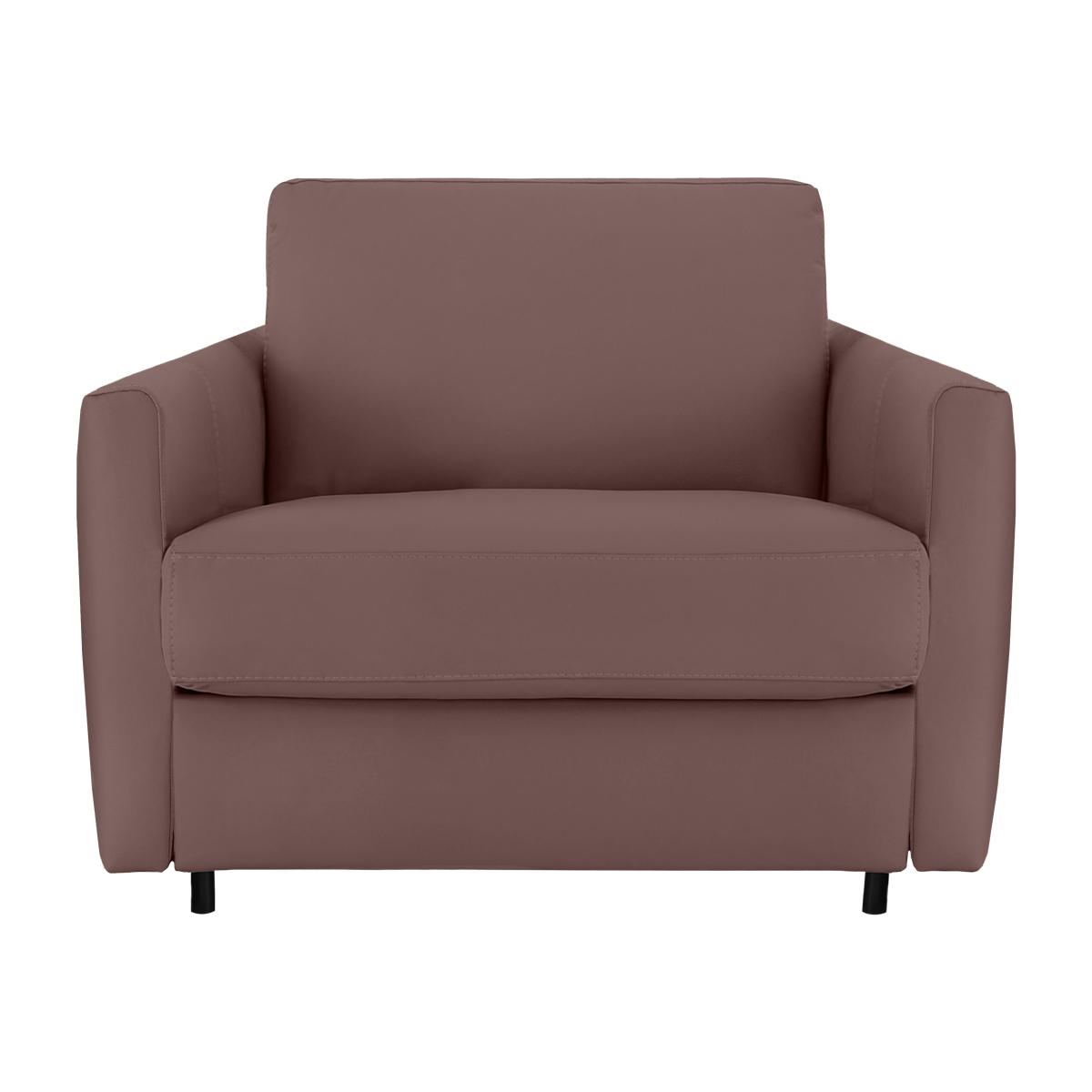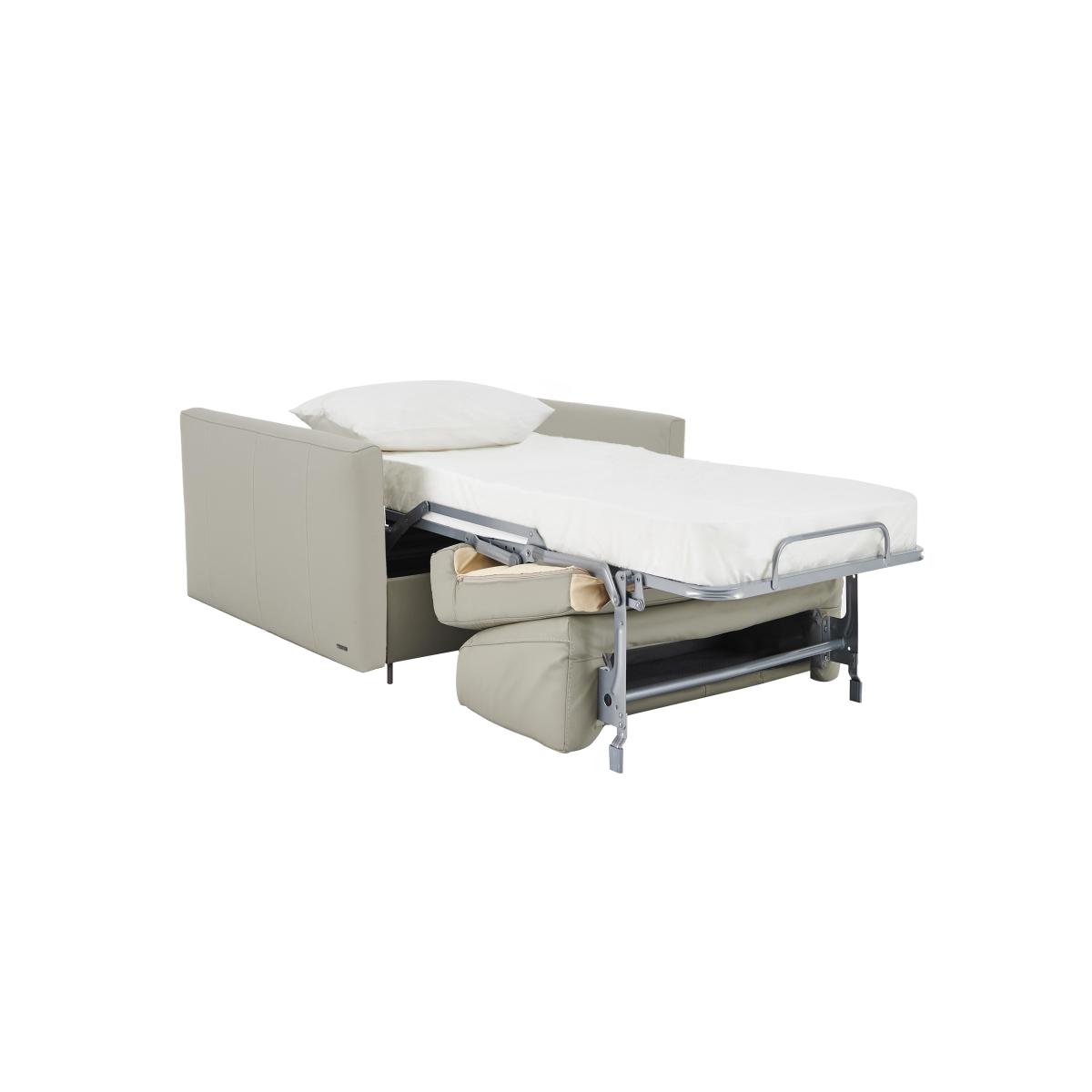 Say ‘saluti’ to Italian-made quality furniture with the Nicoletti Alcova range. With a big focus on simplicity and comfort, coming home to the Alcova is like coming home to an old friend – welcoming and warm. There’s plenty of choice on offer, from chairs to sofa beds, available in both 100% real leather and hardwearing fabric upholstery. You can even take your pick from three different arm styles, plus a huge range of colours to really make it your own. The Alcova range can do it all, from a contemporary centrepiece to a snuggly sofa bed, but there’s one thing that won’t change – the effortless Italian good looks. Handmade in Italy and exclusive to Furniture Village. Quick, simple, and effortless, and with a comfy foam mattress, this leather chair sofa bed takes the hassle out of hosting guests. Why you'll love it This leather chair sofa bed offers both seating and sleeping space in a compact package. Sleek, slim arms work in a variety of interiors. Understated silhouette for a classy, minimalist aesthetic. Upholstered in 100% genuine leather. Choose from a range of stunning colours to suit your interior. Quickly and easily transforms into a sofa bed with a two-fold mechanism. Super-comfortable foam mattress won’t disappoint your guests. Features space-saving integrated pillow storage. Hidden feet complete the refined, modern look. Handcrafted in Italy, exclusively at Furniture Village. This leather chair sofa bed is part of the Nicoletti Alcova range. What you need to know Soft yet supportive medium comfort level. Seat and back suspension: elastic webbing. Seat and back cushioning: padded ecological foam. Foam mattress depth: 12 cm. Leather has unique marks and characteristics with variance in colour and texture. Leather softens with use. Smoothing the tops of leather cushions prevents signs of visual comfort. Please read our upholstery care guide for more advice. This chair is also available with box arms and scroll arms.