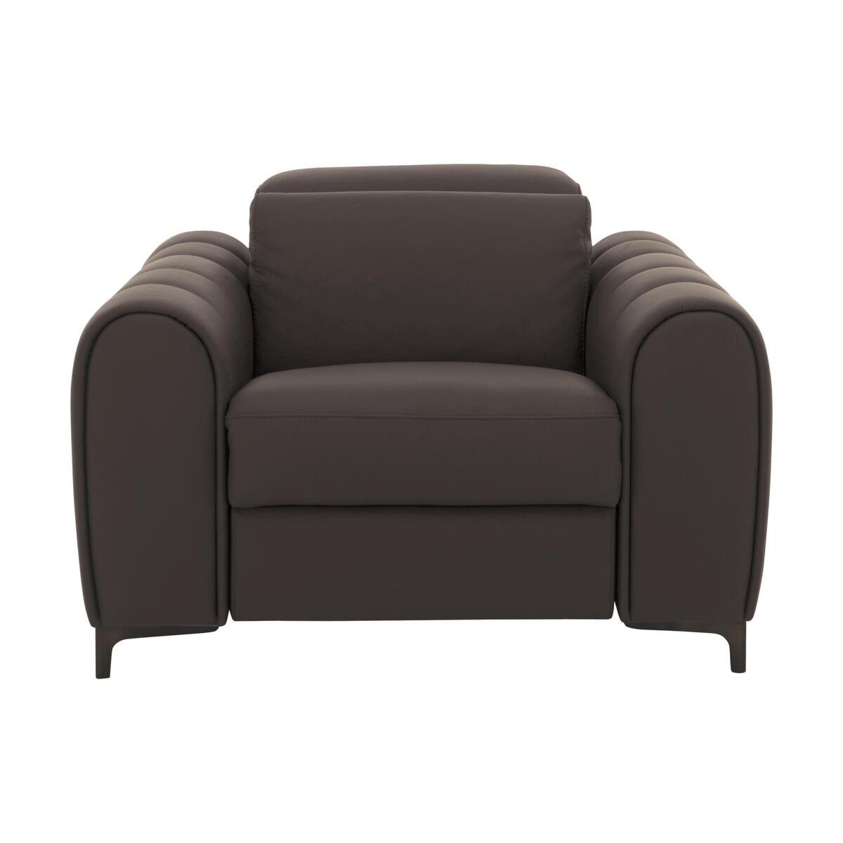 Gorgeous 100% Italian leather armchair with distinctive fluted arms. Low profile style with lift up headrest for support when needed. Modular design, handcrafted quality, deep eco-foam cushioning. Made in Italy. The luxurious Nicoletti Azzurro leather recliner armchair is brimming with high end designer style. It has fabulous, distinctive curved and fluted arms, an open base with slim metal legs and an incredibly chic low-profile silhouette that’s typical of modern Italian design. Beautifully designed, hand sewn and handcrafted by Nicoletti Home, it has 100% premium Italian leather upholstery in a choice of gorgeous neutral and bold shades. It’s made for comfort too, with deep eco-foam filled seat and back cushions and a lift up headrest to pamper you.