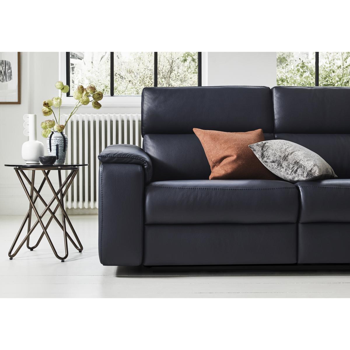There’s nothing quite like coming home to a handmade Italian sofa; especially one with the suave good looks and deep seats of the Nicoletti Davide. Masterfully designed, this kind of comfort doesn’t get lost in translation. Its new and improved seat design has a little bit of give and a lot of support. Plus, Nicoletti’s exclusive perfect positioning system does all the hard work for you. Just opt for the power recliner design, press the button and fine-tune the headrests and recliners millimetre by millimetre until you feel weightless. And with 100% premium leather upholstery sourced from Italian tanneries, hand-stitching and a beautifully simple silhouette, quality oozes from every corner. Exclusively available at Furniture Village. Always wanted an Italian leather sofa? Here it is. Handmade by Nicoletti, this sofa is the essence of style and comfort with adjustable headrests and pocket sprung seats. It’s available with recliners too. Why you'll love it The quintessential Italian leather sofa. Suave good looks plus relaxation-ready comfort features. Power up your comfort – add Nicoletti’s perfect-positioning power recliner system. Power models have built-in USB device charging. All models have adjustable headrests for optimal head and neck support. Pocket spring seat cushioning offers unparalleled comfort with support. With Nicoletti’s improved seat design. Upholstered in 100% leather in a choice of sophisticated colours. Handmade in Italy exclusively for Furniture Village. The Davide range is fully modular. We’ll be happy to help you create your perfect sofa. This leather 3-seater sofa is part of the Nicoletti Davide range. What you need to know Medium comfort level. Seat suspension: elasticated webbing. Seat cushioning: pocket spring, layer of ecological foam covered with polyester padding. Back suspension: elasticated webbing. Back cushioning: fibre. Headrest cushioning: ecological foam covered with polyester padding. The non-power recliner version of this sofa does not have USB charging. Please allow time for the recliner mechanism to ease. Minor gaps are necessary to ensure ease of motion and may be exaggerated depending on floor type. Leather has unique marks and characteristics with variance in colour and texture. Leather softens with use. Smoothing the tops of leather cushions prevents signs of visual comfort. Please read our upholstery care guide for more advice. Please note: This sofa will be delivered in one piece. Please ensure there is sufficient access for our delivery team. Item code: DVID3SP-STK-001