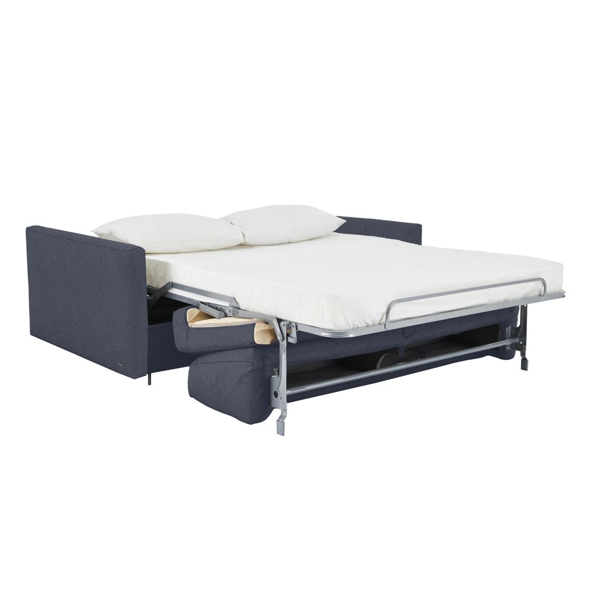 Say ‘saluti’ to Italian-made quality furniture with the Nicoletti Alcova range. With a big focus on simplicity and comfort, coming home to the Alcova is like coming home to an old friend – welcoming and warm. There’s plenty of choice on offer, from chairs to sofa beds, available in both 100% real leather and hardwearing fabric upholstery. You can even take your pick from three different arm styles, plus a huge range of colours to really make it your own. The Alcova range can do it all, from a contemporary centrepiece to a snuggly sofa bed, but there’s one thing that won’t change – the effortless Italian good looks. Handmade in Italy and exclusive to Furniture Village. This stylish yet functional 2.5-seater fabric sofa bed is a fantastic guest bed with a comfy mattress and integrated pillow storage to stash guest bedding. Why you'll love it Make no compromise on style or function with this 2.5-seater fabric sofa bed. Sleek, slim arms give this piece a more streamlined footprint. Understated silhouette for a classy, minimalist aesthetic. Upholstered in a beautiful range of high-quality fabrics. Choose from a range of stunning colours to suit your interior. Quickly and easily transforms into a sofa bed with a two-fold mechanism. Super-comfortable foam mattress won’t disappoint your guests. Features space-saving integrated pillow storage. Hidden feet complete the refined, modern look. Handcrafted in Italy, exclusively at Furniture Village. This 2.5-seater fabric sofa bed is part of the Nicoletti Alcova range. What you need to know Soft yet supportive medium comfort level. Seat and back suspension: elastic webbing. Seat and back cushioning: padded ecological foam. Foam mattress depth: 12 cm. Some fabrics can show wear on areas of more use or in direct sunlight. Please read our upholstery care guide for more advice. This sofa bed is also available with box arms and scroll arms.