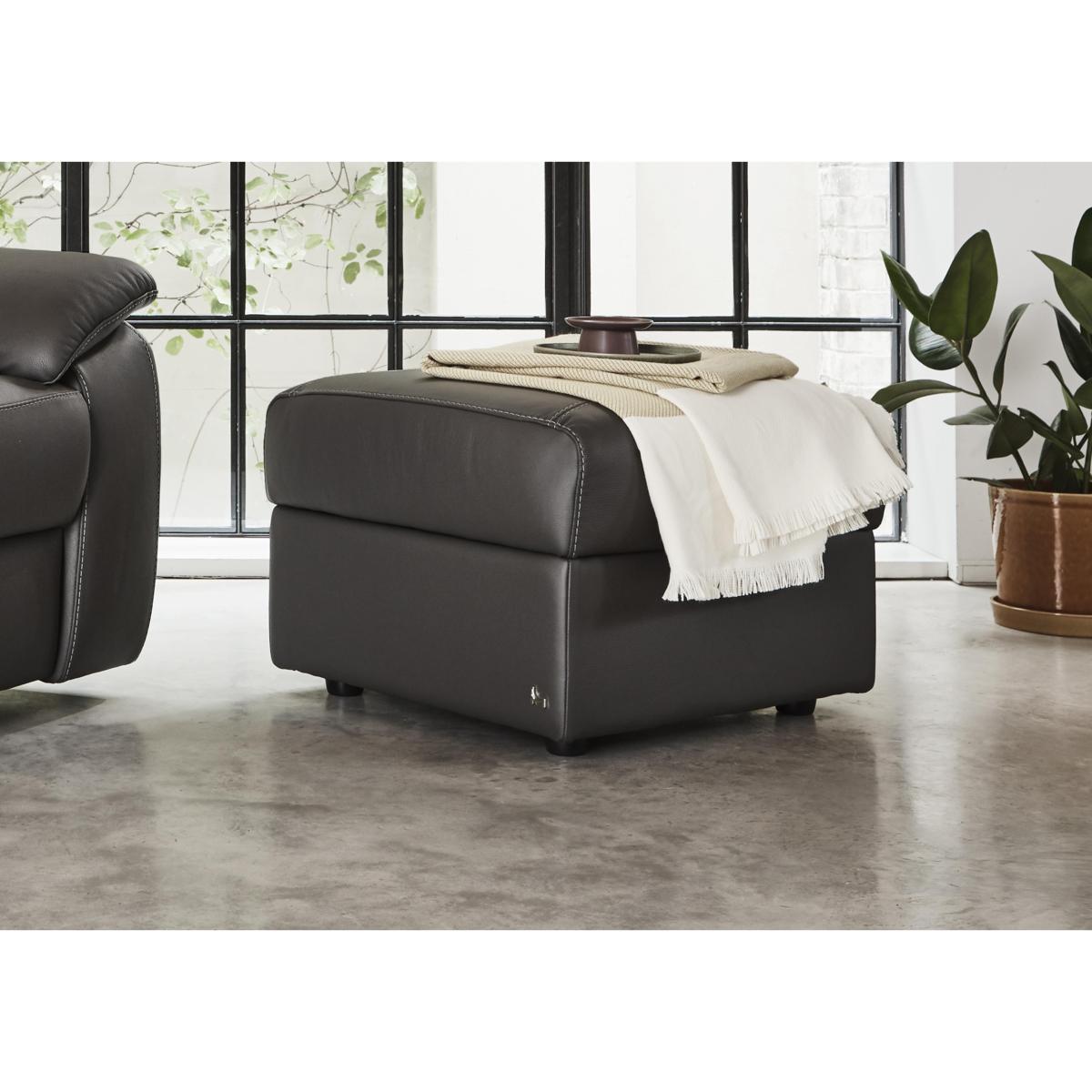 Bring home premium Italian comfort with the contemporary Pepino range by Nicoletti. Lovingly handcrafted in Italy by Nicoletti’s expert craftsmen, this stylish and compact range features new and improved seat comfort for a relaxing, supportive sit that was made for indulgent relaxation. It’s beautifully upholstered in a soft, 100% Italian leather for luxurious lounging and its optional power recliner feature makes putting your feet up and stretching out a breeze. Comfy fibre back cushions with high lumbar support combine with supportive foam seat cushions and generously padded arms to create a feeling of complete comfort. Its compact style suits an impressive array of interiors and its elegant, contrast stitching draw the eye. Exclusively available at Furniture Village. Here’s the most stylish way to keep your living room tidy – and put your feet up at the end of the day. This handmade leather footstool offers a generous storage space and plenty of Italian charm. Why you'll love it Handmade Italian storage footstool in leather combines good looks with practicality. Compact contemporary style at a great-value price. Upholstered in soft 100% Italian leather in a choice of colours. Handmade in Italy and only available at Furniture Village. This leather storage footstool is part of the Nicoletti Pepino range. What you need to know Medium comfort level. Top cushion: fibre. Leather has unique marks and characteristics with variance in colour and texture. Leather softens with use. Smoothing the tops of leather cushions prevents signs of visual comfort. Please read our upholstery care guide for more advice.