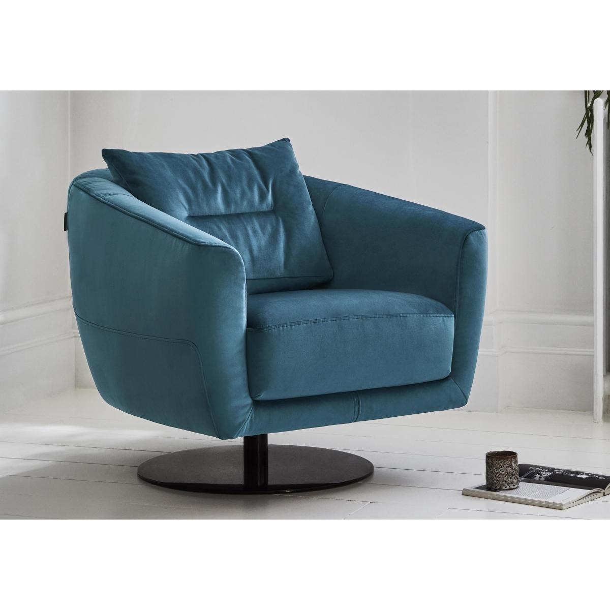 The Nicoletti Mimmo range is a masterpiece of modern, luxury Italian design. Designed for comfort as well as style, its foam-filled seat cushions, fibre and feather-filled back cushion and sumptuously soft Italian leather upholstery combine to create a truly comfortable and supportive sit you can while away the hours in. Its softly curved back and arms are beautifully accented by the minimalist and polished swivel base and delicate stitching detail. The perfect statement accent for the contemporary home. Available in a wonderful variety of luxury Italian fabrics and leathers. Handcrafted in Italy exclusively for Furniture Village. The Nicoletti Mimmo fabric swivel chair is a sleek and sophisticated design with perfectly engineered comfort. Best of all, it’s handcrafted in Italy, so every detail is carefully hand-finished. Why you'll love it. A sleek fabric swivel chair designed to be a haven of comfort. Deep, inviting seat with comfort-hugging curves. Ultra-modern – a perfect design for the modern home. Super-soft, tactile fabric for enhanced comfort. 360° swivel base for easy movement. Available in a beautiful selection of fabrics and colours. Handmade in Italy. Exclusively available at Furniture Village. What you need to know. Soft comfort level. Seat suspension: Elasticated webbing. Seat cushions: Foam. Back cushions: Feather and fibre. Sleek satinised metal base. Some fabrics can show wear on areas of more use or in direct sunlight. Please read our upholstery care guide for more advice. Part of the Nicoletti Mimmo collection.