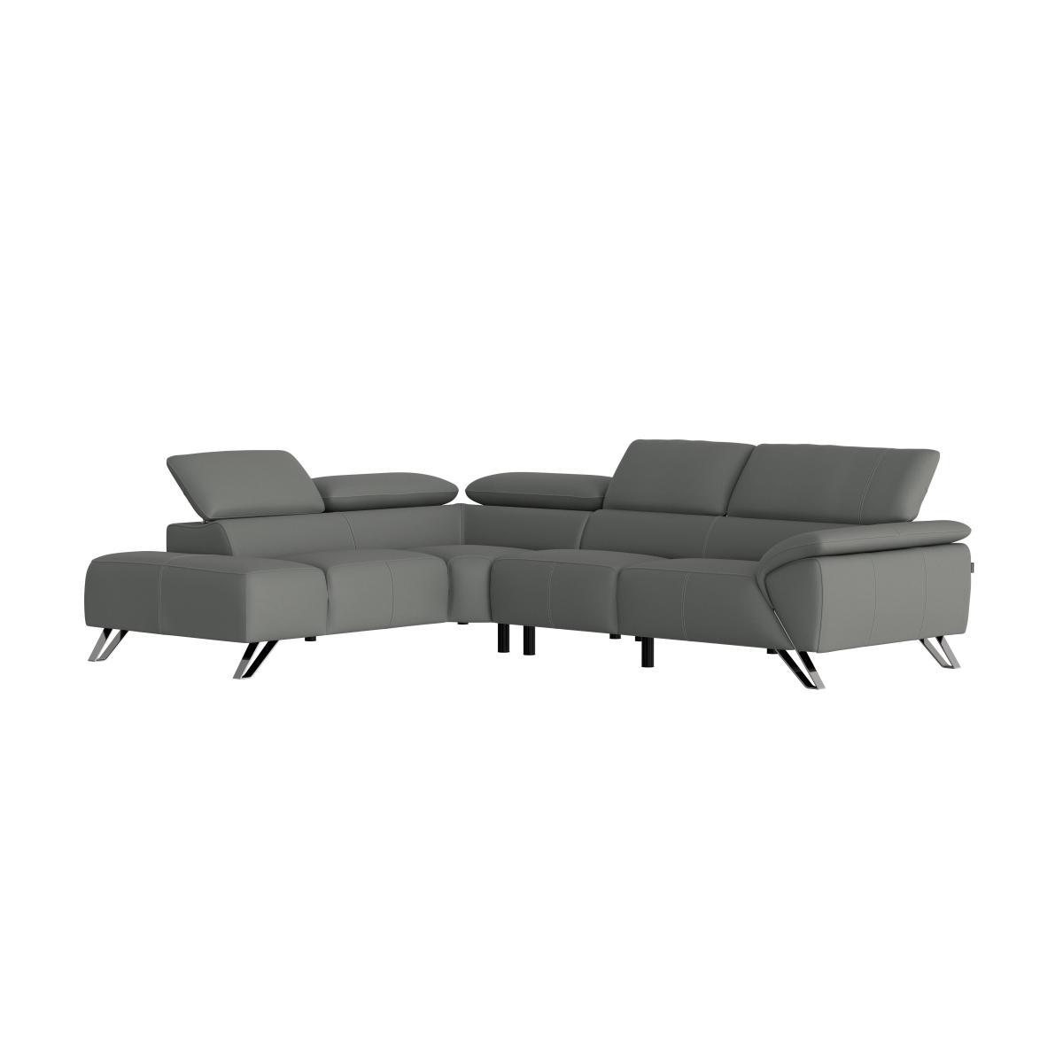 The Nicoletti Tesla range is everything a beautifully designed sofa should be: well-made, endlessly comfortable and easy on the eye. Boasting Nicoletti’s new and improved seat comfort, relaxing feels indulgent yet supportive – and that’s before you get to the adjustable headrests. They let you play with the height of your sofa while you find your perfect position and stretch out, courtesy of Nicoletti’s perfect positioning technology. As for style, it draws a decidedly modern silhouette with sleek, angled arms that finish in a striking metal leg. Available in a choice of plush fabric or 100% premium leather made from the finest South American hides. This range is handmade in Italy by master craftspeople exclusively for Furniture Village. The Nicoletti Tesla leather chaise sofa fuses ultra-modern design with some of the comfiest seats we’ve seen. They boast Nicoletti’s new and improved seat comfort and adjustable headrests for extra support. Why you'll love it. An ultra-modern leather chaise sofa for sophisticated urbanites who love indulgent comfort. Features Nicoletti’s new and improved seat comfort. 100% premium leather made from the finest South American hides. Stylish angled arms that finish in a striking metal leg. Nicoletti’s perfect position technology lets you create the best sit for you. Available in Nicoletti’s full catalogue of fabrics and colours. Handmade in Italy by master craftspeople. Exclusively available at Furniture Village. What you need to know. Medium comfort level. Seat suspension: Elastic webbing. Seat cushions: Foam with padding. Back cushions: Fibre. Leather has unique marks and characteristics with variance in colour and texture, and softens with use. Smoothing the cushioned top directly after use helps prevent ‘puddling’. Please read our upholstery care guide for more advice. Part of the Nicoletti Tesla collection.