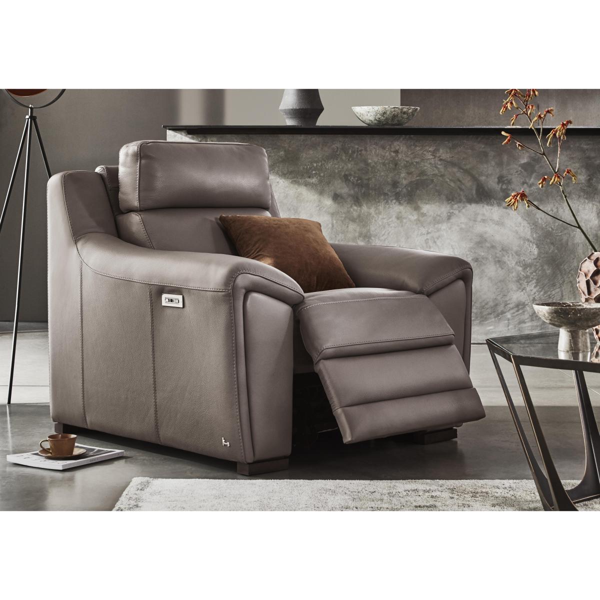 Do you ever wish you could find a sofa with seats made just for you? Meet the Nicoletti Tosca range. Using Nicoletti’s innovative perfect positioning power recliner system, finding your perfect sit takes just seconds. Ultra-sensitive and easy to use, it maximises your comfort unlike any other recliner by fine-tuning its seats to your unique body shape for personalised ergonomic support. This year, Nicoletti has also introduced new and improved seat comfort for an impressively soft yet supportive sit. And that’s before you get to the soft, buttery leather made from South American hides or plush fabric. Available as a static sofa, a power recliner or power recliner with power headrests for those who want to take their comfort to the next level. This range is handmade in Italy by a dedicated team of master craftspeople exclusively for Furniture Village. Exceptional comfort characterises the Nicoletti Tosca leather armchair. From its buttery soft leather to its indulgently comfortable seats, this is the lounging experience you’ve been waiting for. Why you'll love it. A premium leather armchair designed by the masters of the perfect sit, Nicoletti. Features Nicoletti’s new and improved seat comfort. 100% leather with a soft, buttery feel made from South American hides. Sleek L-shaped arm with ultra-soft padding for extra comfort. Available with highly sensitive power recliner motion. Nicoletti’s innovative perfect position technology creates a sit made just for you. (Power recliner only). Handmade in Italy by master craftsmen and women. Exclusively available at Furniture Village. What you need to know. Medium comfort level. Seat suspension: Elastic webbing. Seat cushions: Foam with padding. Back cushions: Fibre. Leather has unique marks and characteristics with variance in colour and texture, and softens with use. Smoothing the cushioned top directly after use helps prevent ‘puddling’. Please read our upholstery care guide for more advice. Part of the Nicoletti Tosca collection.