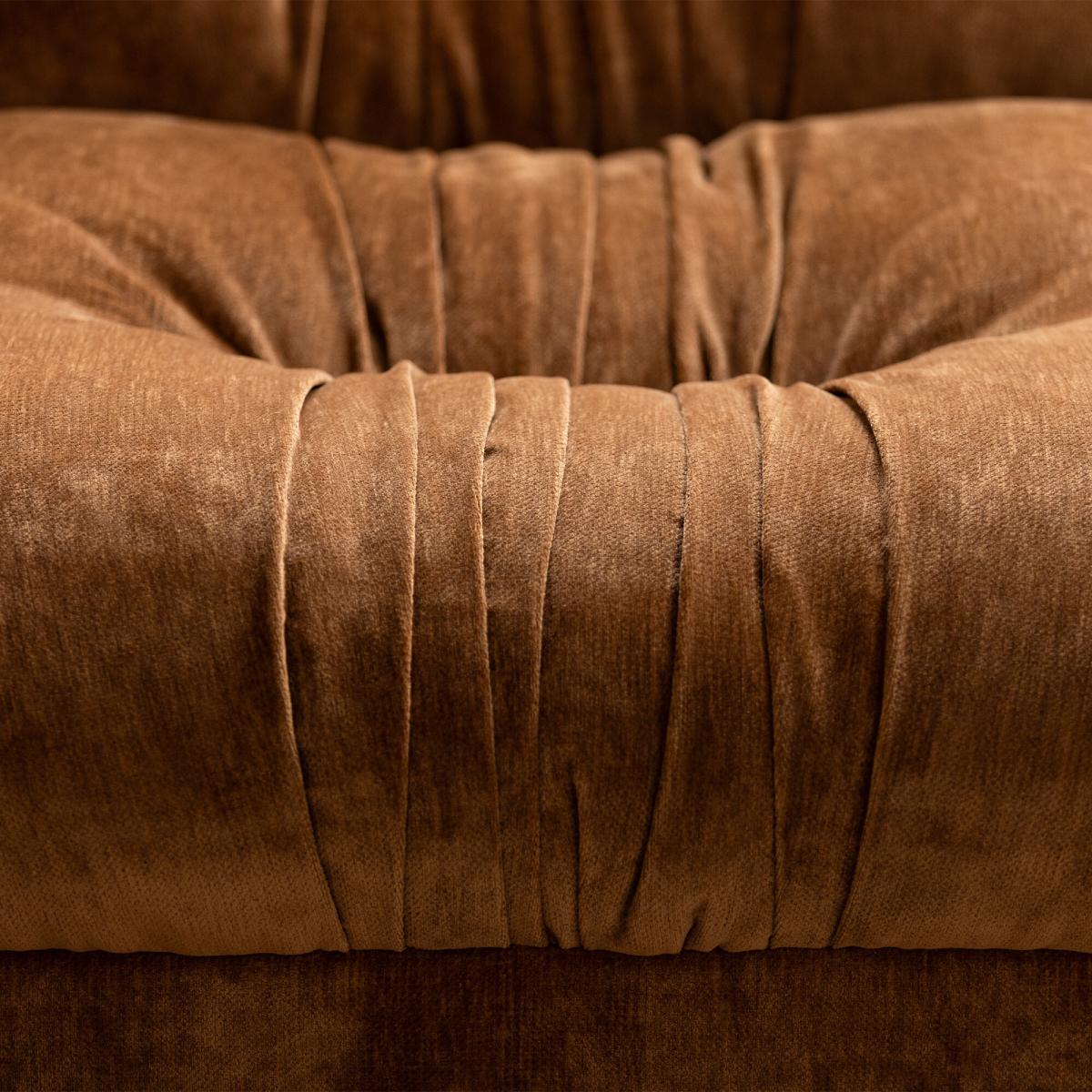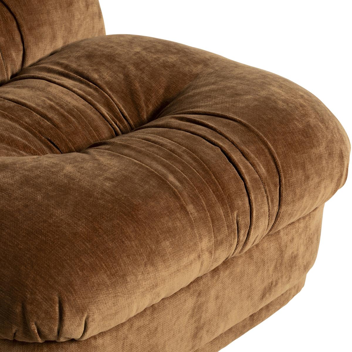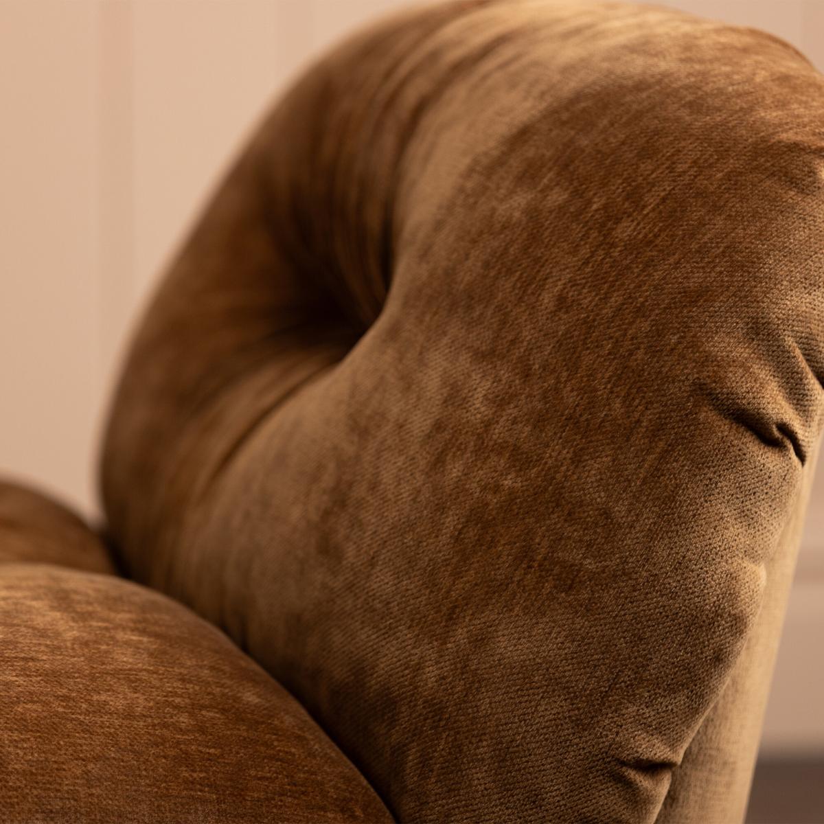 This Nicolo Brown Fabric Armchair offers a retro-inspired silhouette with modern-day comfort. Its low-slung profile, rounded edges, and tufted detailing create a relaxed and inviting seat. Upholstered in velvety fabric, it exudes warmth while adding a soft, tactile touch to your decor. The generously cushioned base and backrest provide cosy support, making it ideal for reading, lounging, or creating a laid-back corner. With its sculptural shape and versatile design, this chair works beautifully as a standalone piece or as part of a modular seating arrangement.